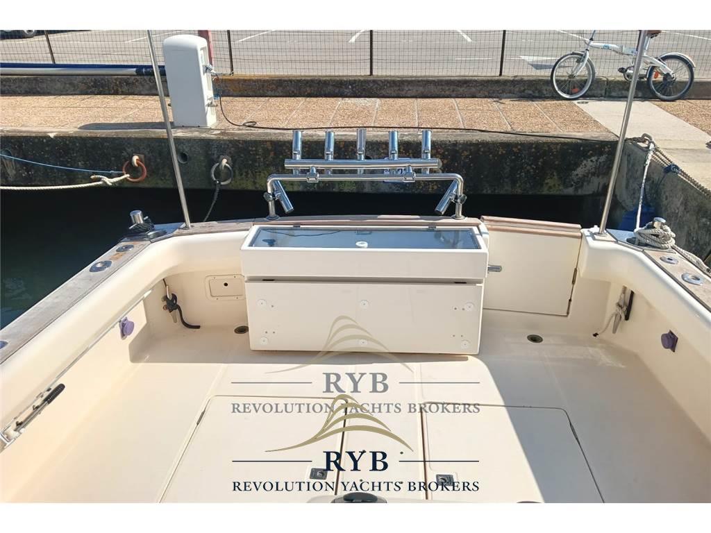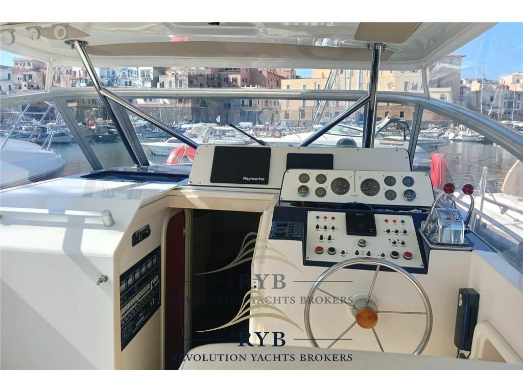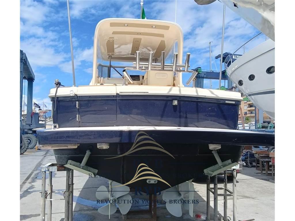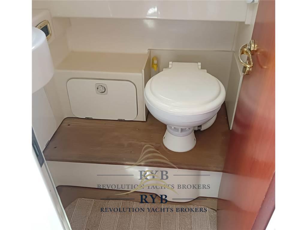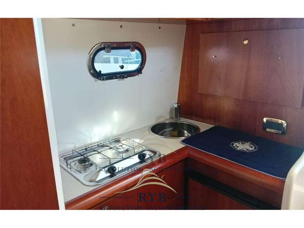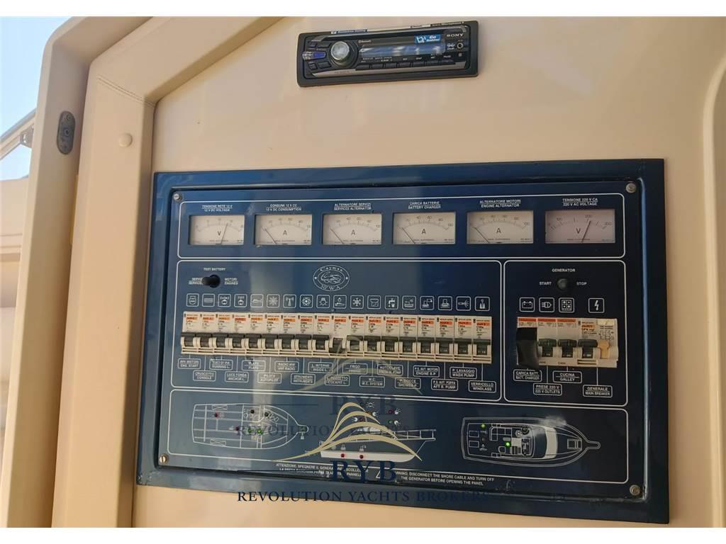 Notas internasNotas de la instrumentaciónBussola, Ecoscandaglio (RAYMARINE), GPS (RAYMARINE), Pilota automatico (RAYMARINE), Radio VHF.Notas de armamentoAllestimento tecnico e di coperta:Ancora, Flap idraulici, Piattaforma, Pompa di sentina manuale, Porta ingresso, Presa 220V banchina, Salpa Ancore Elettrico. Dotazioni domestiche di bordo: Pavimento interno in legno, Prese interne 12v, Prese interne 220v, WC marino elettrico. Cucina ed elettrodomestici: Cucina, Fornello, Frigorifero interno. Tappezzerie: Cuscineria Pozzetto. |