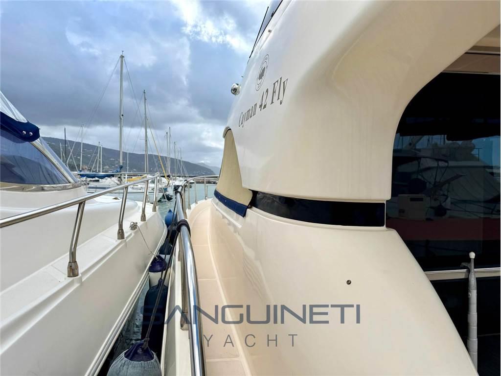 Notas de armamentol Cayman 42 Fly è dotato di un ampio armamento che ne arricchisce l’esperienza di navigazione. La barca è equipaggiata un salpaancora con 80 metri di catena e winch sia di poppa che di prua. Il flybridge è protetto da una chiusura totale e un bimini, entrambi sostituiti di recente, mentre il pozzetto dispone di una copertura totale. La cuscineria, sostituita nel 2022, include quelli di prua, fly, pozzetto e salone. La barca è anche provvista di una passerella idraulica, luci subacquee, una piattaforma rivestita in teak (2023), e un tavolo in pozzetto e salone. È dotata di pompe di sentina automatiche e manuali, nonché di un faro orientabile per una visibilità ottimale durante la navigazione notturna.