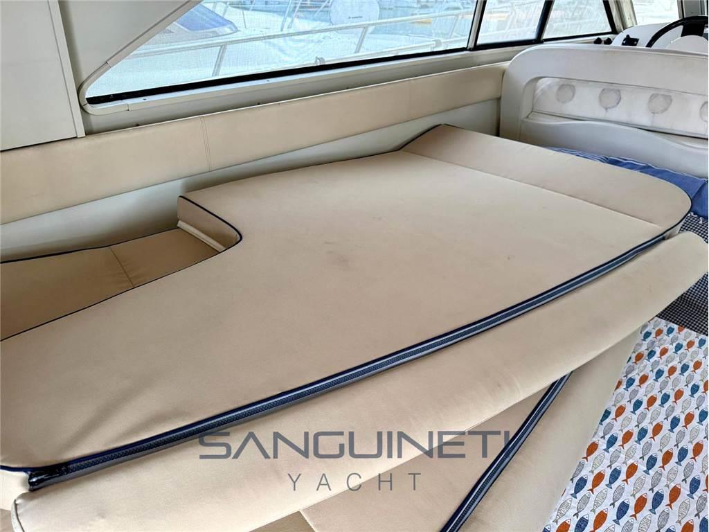 Notas internasGli interni del Cayman 42 Fly sono l’emblema del comfort e della funzionalità. La cabina armatoriale è dotata di un letto a penisola, bagno privato con box doccia. La cabina ospiti, con due letti in piano, offre un comodo bagno con box doccia. L’area conviviale è composta da una dinette con un divano a L e un tavolo, mentre la cucina è completamente attrezzata per ogni esigenza. La qualità dei materiali e la luminosità degli spazi rendono l’ambiente interno estremamente accogliente.
