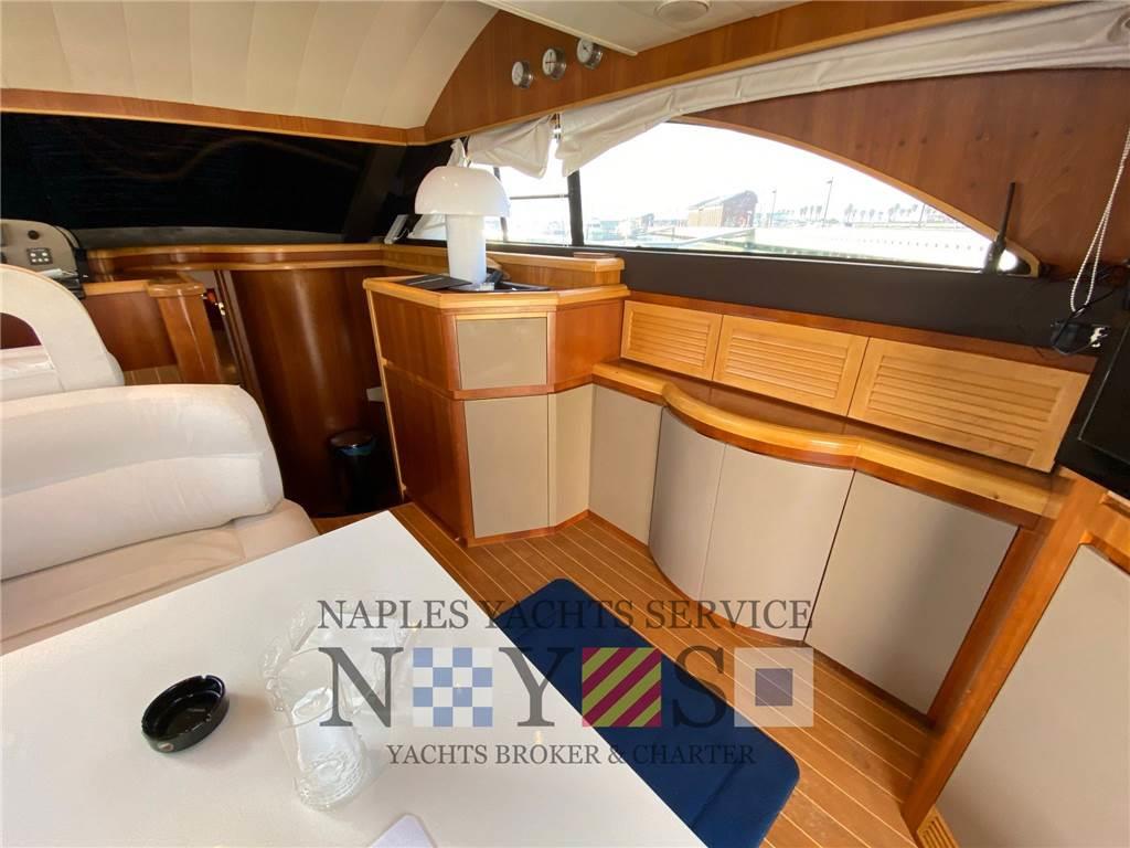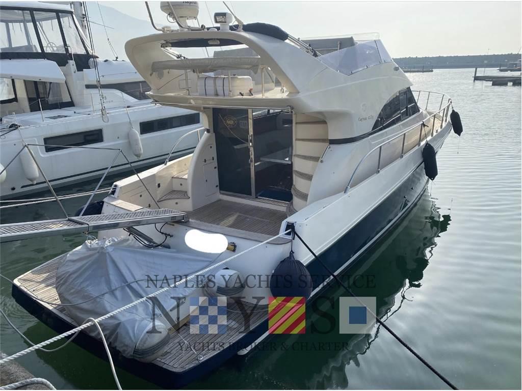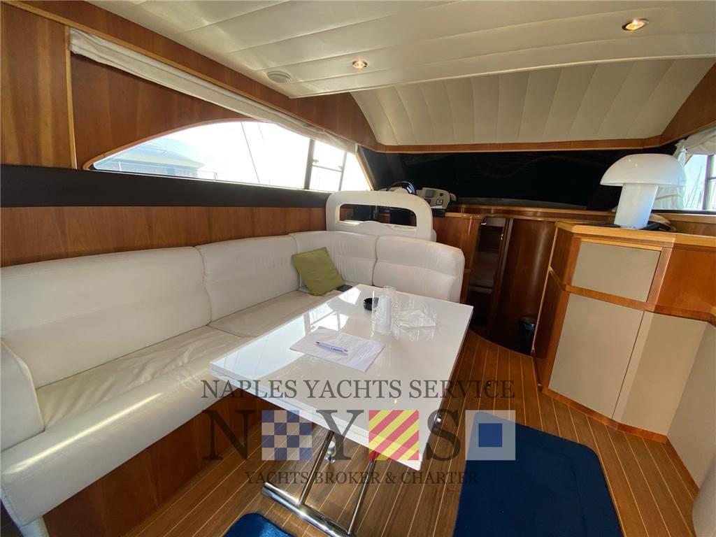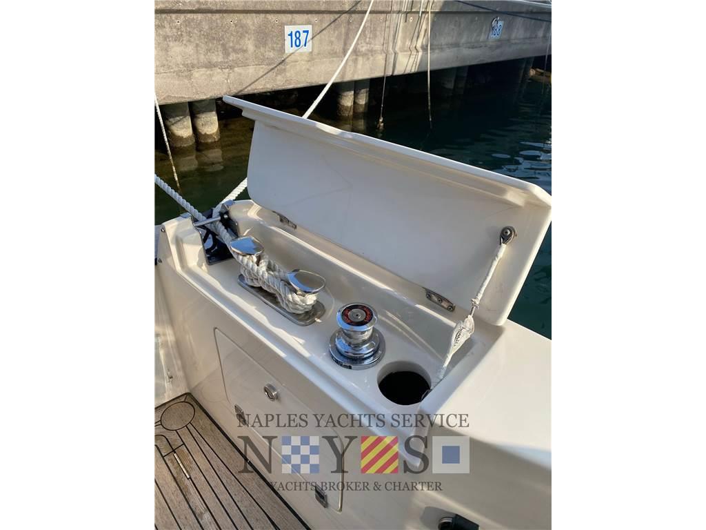Notas internasNotas de la instrumentaciónAngolo barra, Bussola, Display, Ecoscandaglio, GPS, Pilota automatico (Raymarine), Radar.Notas de armamentoAllestimento tecnico e di coperta:Allarme motore, Allarme sentina, Ancora, Doccia esterna, Elica di prua - bow thruster (Side Power), Flap idraulici, Luci di cortesia, Passerella (Opacmare), Pompa di sentina automatica, Pompa di sentina elettrica, Porta ingresso, Pozzetto Teak, Presa 220V banchina, Raddrizzatore, Salpa Ancore Elettrico, Salpa Ancore Manuale, Tavolo pozzetto. Dotazioni domestiche di bordo: Aria condizionata (Climma), Prese interne 12v, Prese interne 220v. Intrattenimento: Altoparlanti, Stereo. Cucina ed elettrodomestici: Cucina, Fornello, Forno, Frigorifero interno (Grande), Microonde. Tappezzerie: Cuscineria completa, Telo Copertura Fly, Tendalino (Su fly). |