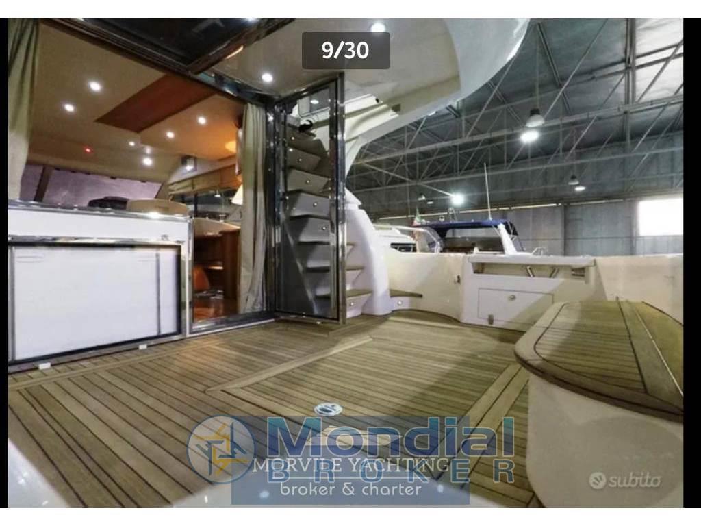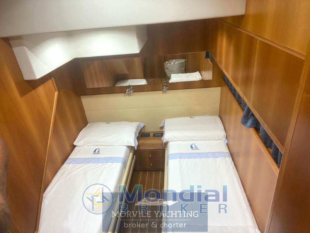 Notas internasCabine: 3 Toilette: 2 Notas de la instrumentaciónImpianto elettronico- Ecoscandaglio - Radar - Log-contamiglia - Computer di bordo - Ripetitore(i): STRUMENTI RIPETUTI SU FLY - Impianto TV - Centrale di navigazione - Plotter - Lettore DVD - Pilota automatico - Radio - Bussola - Lettore CD - GPS - Altoparlanti di pozzetto - VHF Notas de armamentoCoperture/Tendalini- Tendalino pozzetto: + BIMINI FLY Equipaggiamenti Elettrici - Presa corrente a terra - Generatore Equipaggiamenti interni - Elica di prua - Pompa di sentina elettrica - Forno - Pompa di sentina manuale - Microonde - WC marino - Aria condizionata - WC elettrico - Riscaldamento - Acqua calda - Frigorifero - Congelatore - Caricabatterie Dotazioni Esterne - Pozzetto in teak - Doccia pozzetto - Passerella idraulica - Cuscineria pozzetto - Scaletta bagno |