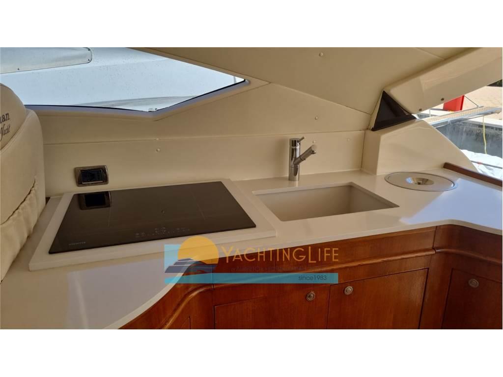 Notas internasNotas de la instrumentaciónAllarme sentina, Ancora, Angolo barra, 2 Autoclave, Autogonfiabile, Batterie, Bussola, Caricabatterie, Contamiglia, Doccia esterna, Ecoscandaglio (Koden color), Elica di prua - bow thruster, Flap idraulici, GPS (Koden color), Hard top, Impianto antincendio, Indicatori Flaps, Luci di cortesia, Luci subacquee, Passerella (Idraulica), Piattaforma, Pilota automatico, Plotter (Koden color), Pompa di sentina automatica, Pompa di sentina manuale, Pozzetto Teak, Presa 220V banchina, Raddrizzatore, Radio VHF, Salpa Ancore Elettrico, Scaletta da bagno, Selle per Tender, Tavolo pozzetto, Tender (e motore), Tromba, Winch tonneggio di poppaNotas de armamentoAltoparlanti, Antenna Satellitare TV, Aria condizionata (anche pozzetto), Boiler (N. 1), Cucina (solo esterna a gas), Cuscineria completa, Decoder satellite, Frigorifero esterno, Frigorifero interno, Giubbetti di salvataggio, Impianto acque nere, Impianto TV, Pavimento interno in legno, Prese interne 12v, Prese interne 220v, Riscaldamento, Stereo, Teli copri finestra, Tendalino, Trolling Valve, TV (lcd nel pozzetto a scomparsa), 2 WC marino elettrico |
