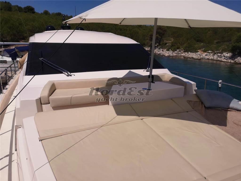 Passerella: Presente Tender: Presente Winch di tonneggio: Presente Manette elettroniche Angolo di barra Colore scafo: Bianco Telo copriscafo |