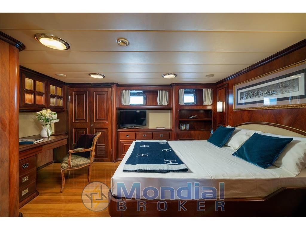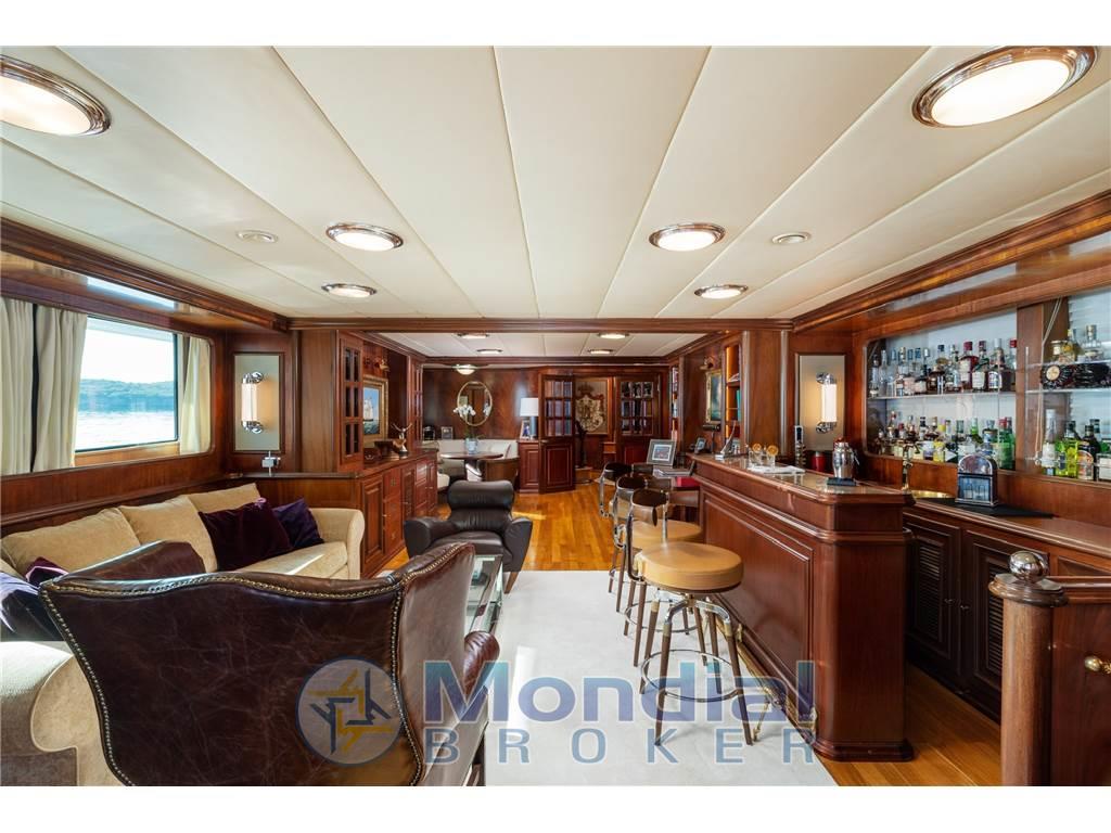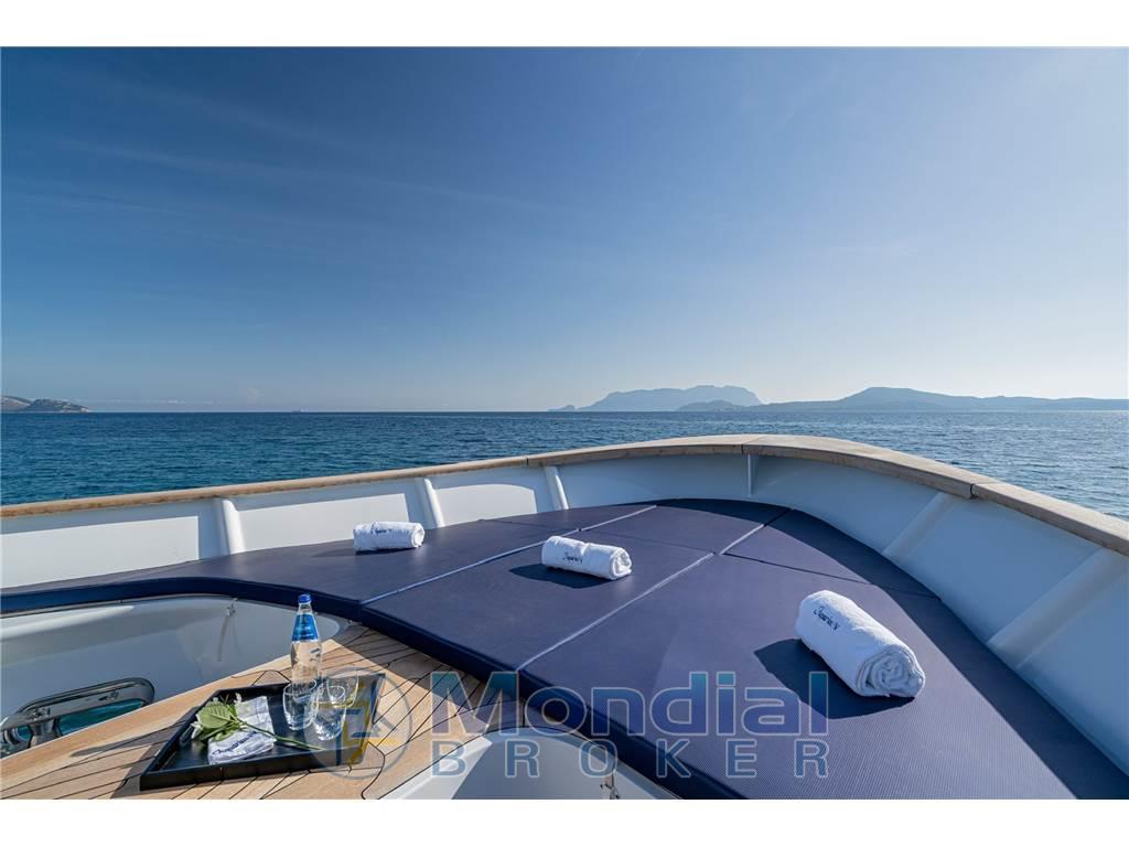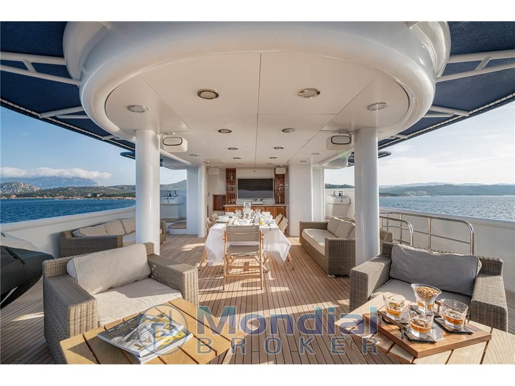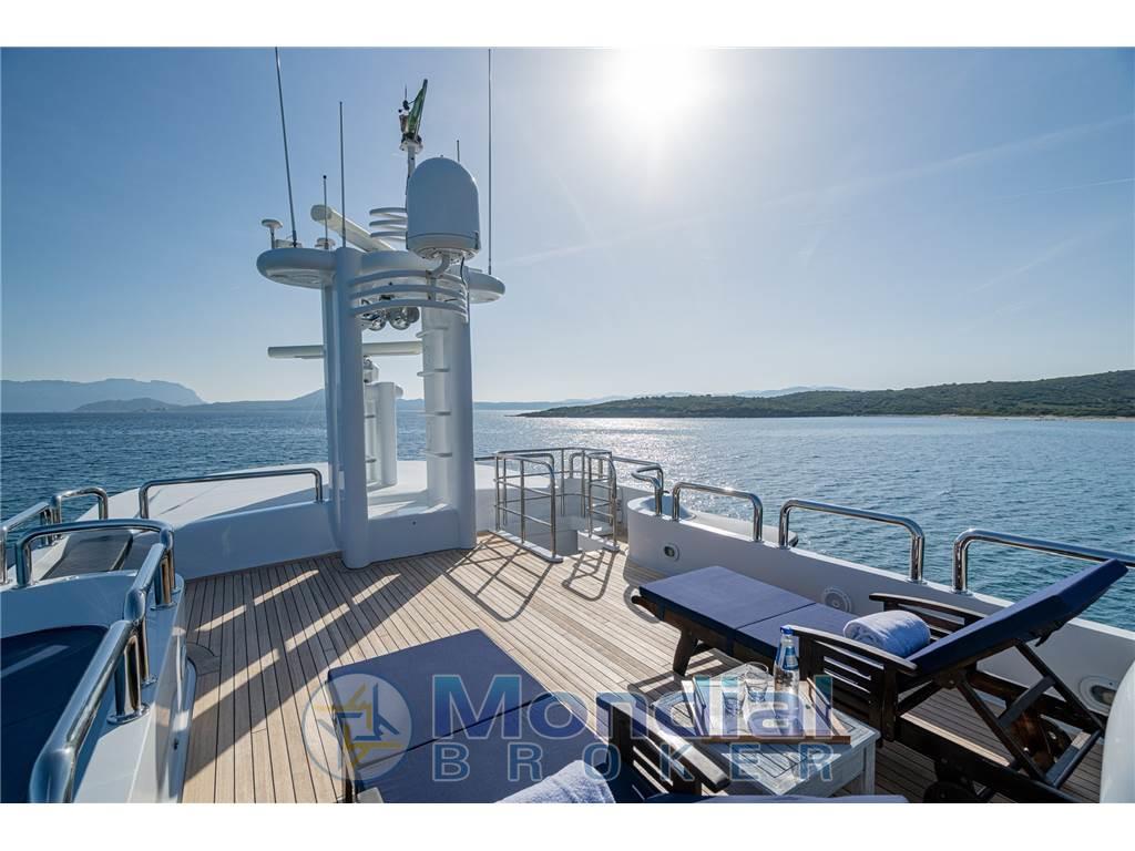 Notas de armamento27 Altoparlanti, Antenna Satellitare TV (Seatel Cobram), Aria condizionata (Marine Air System Dometic MCGV120 380/3ph - cap 240.000 Btu), Asciugatrice (Miele), BBQ/ Grill, 4 Boiler (Gianneschi 500lt), 3 Congelatore (1x Beko; 2x Vitifrigo), Cucina, Cuscineria completa, Cuscineria di poppa, Cuscineria di prua, Cuscineria fly, Cuscineria Pozzetto, Dissalatore (Fresh Water Maker Tecnicomar model SYS8/1000/MD 450lt / hour), 6 DVD (1x Yamaha DVD-DX, 3x Samsung bluray, 1x LG bluray disc, 1x Sony DVD bluray.), E.P.I.R.B. (Sailor Cobham), Forno (Dexion), 2 Frigorifero interno (1x Zanussi; 1x Klarstein), ICE Maker (Hoshizaki), Impianto acque nere (Hamman System (600Lt)), Impianto TV, 2 Lavastoviglie (Miele), Lavatrice (Miele), Macchina caffè, Microonde (Samsung), Pavimento interno in legno, 4 Piastra elettrica, Serbatoio Acque Nere (600 lt), 6 Stereo (JVC stereo), 4 Telecamera (Polysion system, Philips 20” Monitor), 9 TV (Main salon Samsung 48” HD TV; Master Cab. Samsung 26” HD TV; Guests Cab. Samsung 28” HD TV; VIP cab. Samsung 32” HD TV; Capt. Cab. Samsung 24” HD TV; Galley LG 28” HD TV; Fly Samsung 48"; Stern living 2x LG 40” HD TV;), 6 WC marino elettrico (1x Master,1x VIP, 2x Guests, 1x Capt., 1x Crew), Winecooler, 4 Zattera di salvataggio (EV Iso 9650), - Fresh Water Filters Idromar - Fresh Water Pressure System Well Mate.