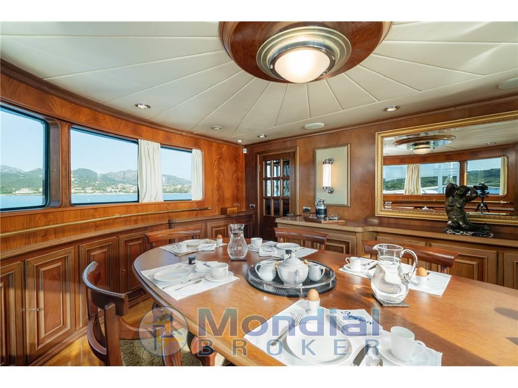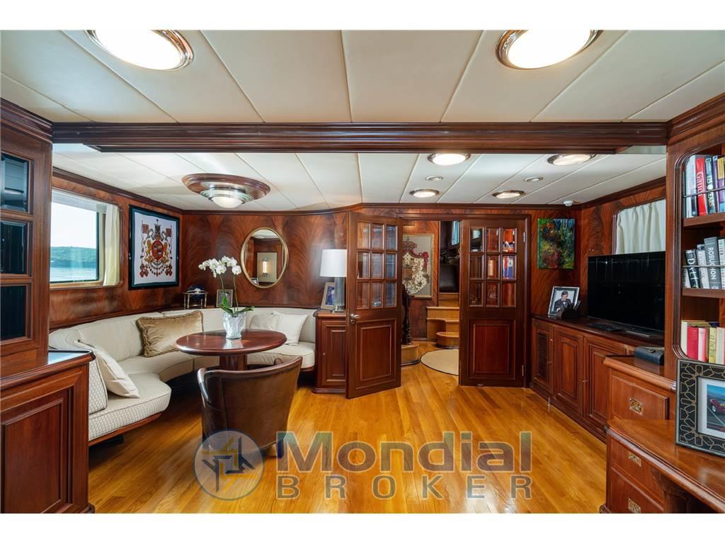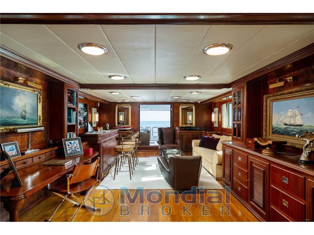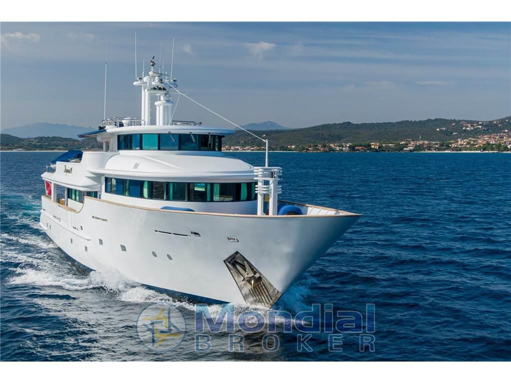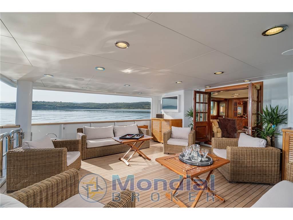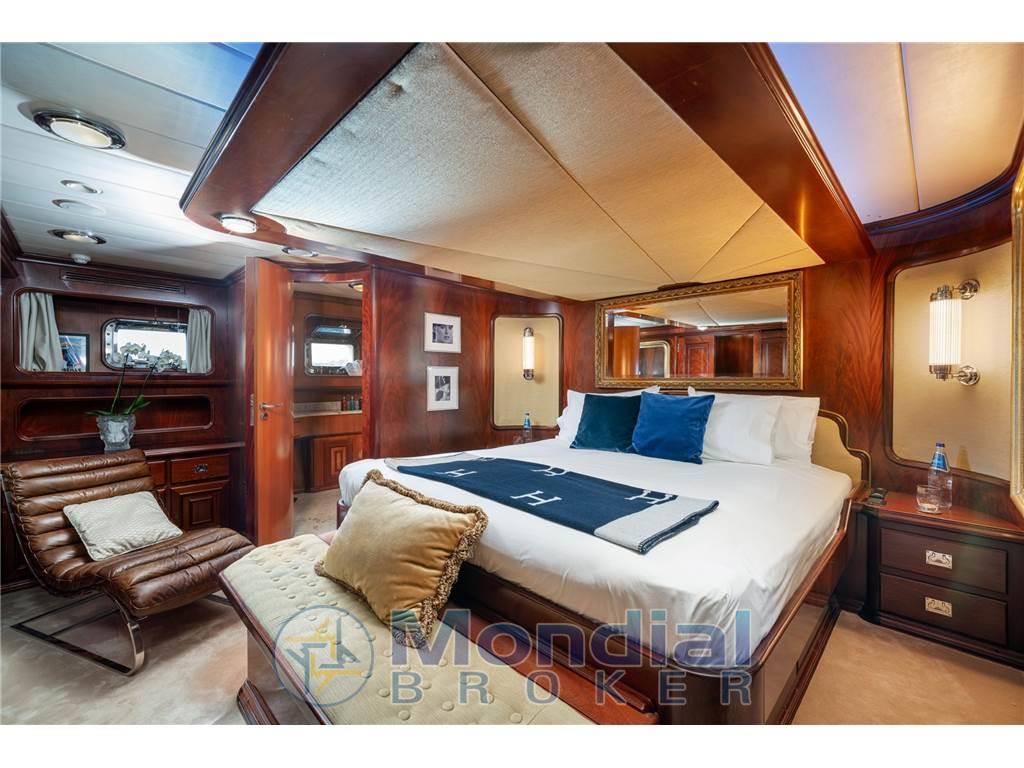 Notas de armamento27 Altoparlanti, Antenna Satellitare TV (Seatel Cobram), Aria condizionata (Marine Air System Dometic MCGV120 380/3ph - cap 240.000 Btu), Asciugatrice (Miele), BBQ/ Grill, 4 Boiler (Gianneschi 500lt), 3 Congelatore (1x Beko; 2x Vitifrigo), Cucina, Cuscineria completa, Cuscineria di poppa, Cuscineria di prua, Cuscineria fly, Cuscineria Pozzetto, Dissalatore (Fresh Water Maker Tecnicomar model SYS8/1000/MD 450lt / hour), 6 DVD (1x Yamaha DVD-DX, 3x Samsung bluray, 1x LG bluray disc, 1x Sony DVD bluray.), E.P.I.R.B. (Sailor Cobham), Forno (Dexion), 2 Frigorifero interno (1x Zanussi; 1x Klarstein), ICE Maker (Hoshizaki), Impianto acque nere (Hamman System (600Lt)), Impianto TV, 2 Lavastoviglie (Miele), Lavatrice (Miele), Macchina caffè, Microonde (Samsung), Pavimento interno in legno, 4 Piastra elettrica, Serbatoio Acque Nere (600 lt), 6 Stereo (JVC stereo), 4 Telecamera (Polysion system, Philips 20” Monitor), 9 TV (Main salon Samsung 48” HD TV; Master Cab. Samsung 26” HD TV; Guests Cab. Samsung 28” HD TV; VIP cab. Samsung 32” HD TV; Capt. Cab. Samsung 24” HD TV; Galley LG 28” HD TV; Fly Samsung 48"; Stern living 2x LG 40” HD TV;), 6 WC marino elettrico (1x Master,1x VIP, 2x Guests, 1x Capt., 1x Crew), Winecooler, 4 Zattera di salvataggio (EV Iso 9650), - Fresh Water Filters Idromar - Fresh Water Pressure System Well Mate.