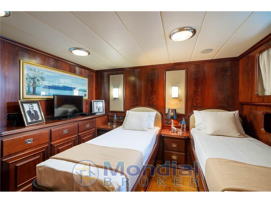 Notas internas2 Matrimoniale italiana, 2 Doppia in piano, 3 Cabina equipaggio, 4 Toilette con doccia, 2 Toilette Equipaggio La Navetta CBI Navi 35 del 1995 offre interni ampi e funzionali, studiati per garantire comfort e praticità sia per la famiglia che per l’equipaggio. La disposizione prevede due cabine doppie in piano e due matrimoniali italiane, ideali per ospitare comodamente fino a 12 persone. Sono inoltre presenti tre cabine equipaggio, separate e dedicate, per assicurare privacy e organizzazione durante la navigazione. Le quattro toilette, distribuite strategicamente, offrono comodità e autonomia agli ospiti. Gli spazi interni sono ben ottimizzati, con un’attenzione particolare ai materiali e alla funzionalità, per rendere ogni viaggio un’esperienza rilassante e piacevole. L’ambiente è accogliente e versatile, adatto a crociere di più giorni, con zone living luminose e ben arieggiate. La Navetta CBI Navi 35 unisce così robustezza, praticità e comfort, rispondendo alle esigenze di chi cerca un’imbarcazione spaziosa e versatile.
