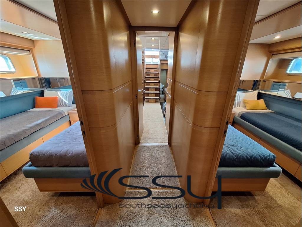 Notas internasUPPER DECK: - Ampio salone/zona pranzo con due divani contrapposti e 2 tavoli telescopici per 10pax, smart TV a scomparsa, frigobar in acciaio Frigoboat, plancia comandi; - Cabina equipaggio a prua con ingresso e servizi indipendenti. LOWER DECK: - Sulla sx salone a tutto baglio con ampio divano e angolo bar contrapposto con bancone, winecooler, freezer & frigo Liebherr, fabbricatore di ghiaccio Isotherm; - Ampia cabina armatoriale matrimoniale verso prua, due armadi, smart TV e bagno con doppio accesso e cabina doccia separata; - 2 cabine ospiti doppie a centro barca con letti in piano, smart TV ed ognuna con il proprio bagno con box doccia; - Cabina VIP matrimoniale verso poppa a sx con smart TV e bagno privato con box doccia; - Cabina comandante verso poppa a dritta con relativo bagno; - Cucina separata verso poppa con piano cottura Whirpool, forno da 90 Rex Electrolux, frigo/freezer a colonna in acciaio Frigoboat, lavatrice + asciugatrice Miele (W3493 + T8643C). 4 Cabins layout + 4 crew UPPER DECK: - living room convertible in lunch area, with two large opposite with 2 telescopic tables, foldaway smart TV, minibar Frigoboat and forward helm station; - bow crew cabin with its own entrance and facilities. LOWER DECK: - port full beam living room with large sofa with coffe table, opposite “bar corner” with counter, Liebherr winecooler, fridge & freezer and Isotherm icemaker; - master double forward cabin with 2 wardrobes, smart TV and double access to the bathroom with separate box shower; - 2 amidships twin guest cabins with smart TV and with their own private bathrooms with box shower; - Vip double cabin towards the stern port with smart tv and private bathroom with box shower; - Captain cabin towards the sterm starboard with facilities; - Fully equipped galley towards the stern with Whirpool ceramic stove, Rex Electrolux oven, stainless steel Frigoboat fridge & freezer, Miele washing + dryier machine (Softronic W3943 + T8643C). Notas de la instrumentación2xVhf Ray260 with DSC;SSB Furuno FS2571; 2xRaymarine Axiom+ 12 multifunction chart plotter; Raymarine radar arrow; 2xtridata (log/speed/depht); 2xautopilot Raymarine P70 display; 2xMTU engine display; Rudder & Flaps ind. level / ind. angolo di barra & flaps; digital chian counter / contacatena digitale; electronic speed throttles / manette elettroniche; Epirb GME 406MHz satellite; Vetus bow & stern thruster / elice di prua & poppa Vetus Notas de armamento- TVCC video sorveglianza sala macchine & pozzetto;- antenna satellitare KVH + router WIFI; - sistema audio con dolby surround; - 5 smart TV + decoder satellitari; - 2 generatori Kohler EFKOZD 230V50Hz (con sistema parallelo); - inverter Mastervolt SineWave; - 1 caricabatterie Mastervolt Chargemaster 12/25-3; - 1 caricabatterie Mastervolt Mass 24/50; - 2 caricabatterie Mastervolt Mass 24/75; - impianto A/C reversibile Climma CWS 1443s Rc (144.000btu); - dissalatore Idromar C901 180lt/h; - doppia pompa autoclave Gianneschi; - sistema trattamento acque Hamann AG 0801; - 2 winch di tonneggio Lofrans a poppa; - verricello salpancora Lofrans Project X4; - passerella idraulica telescopica a scomparsa Pin Craft; - gruette tender a scomparsa Pin Craft; - tender 4mt con consolle centrale + Honda 40hp 4T; - impianto luci a led (int/est) + luci subacquee; - icemaker Isotherm + winecooler Liebherr; - 3 frigobars (salone + plancia + pozzetto); - lavatrice + asciugatrice Miele (Softronic W3943 + T8643C); - set completo tendalini, cappe ed oscuranti. - TVCC system with engine room & cockpit cam; - KVH TV/Sat system + WIFI router; - HIFI system with dolby surround; - 5 Smart TV+ sat receivers; - 2x28Kw Kohler generators EFKOZD 230V/50Hz (with parallel system); - inverter Mastervolt SineWave; - 1xMastervolt Chargemaster 12/25-3; - 1xMastervolt Mass 24/50 battery charger; - 2xMastervolt Mass 24/75 battery chargers; - reverse A/C system Climma CWS 1443s Rc (144.000 btu); - watermaker Idromar C901 180lt/h; - 2xGianneschi fresh water pumps; - Hamann AG 0801 sewage treatment water system; - 2xaft Lorans winches + Lofrans Project X4 windlass; - Pin Craft hydraulic gangway & foldaway davit for tender; - 4.00mt tender center consolle + Honda 40Hp; - led lights system (inside outside) + underwater lights; - Liebherr winecooler + Isotherm icemaker; - 3xfrigobars (cockpit + helm + saloon); - Miele washing + dryer machine (Softronic W3943 + T8643C); - full set outside canvas & coverings. |