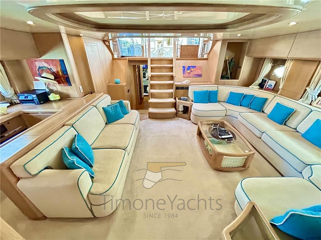 Notas de armamentoAltoparlanti, Antenna Satellitare TV, Aria condizionata, BBQ/ Grill, Boiler, Copripozzetto, Cuscineria completa, Cuscineria di poppa, Cuscineria di prua, Cuscineria fly, Cuscineria Pozzetto, Digitale Terrestre, Frigorifero esterno, Frigorifero interno, Home Theater, Inverter, Lavastoviglie, Lavatrice, Macchina caffè, Meccanismo saliscendi per TV, Pavimento interno in legno, Piastra in vetroceramica, Prese interne 12v, Prese interne 220v, Radio AM/FM, Riscaldamento, Serbatoio Acque Nere, Tenda Elettrica, Tendalino, TV, 5 WC marino elettrico (+ crew), Winecooler