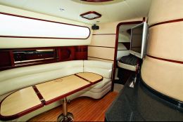 Notas internasCabina: a la derecha, con controles electrónicos y sillón ajustable; sistema de dirección hidráulica, volante de madera. Gráfico: área junto al puente de mando, con naipes de plexiglás protectora Ãrea de cocina: a la derecha de la Plaza, con el plan de trabajo amplio, electrocerámica dos quemador plancha, fregadero, nevera y congelador, espacios de almacenamiento. Notas de la instrumentacióninstrumentación de motor completo, tridata Raytheon, piloto automático de chartplotter, VHF, GPSNotas de armamentoWesterbeke generador, fibra de vidrio techo duro, bolardos, de amarre de acero inoxidable con Molinete ancla de acero inoxidable, caoba guarnecido lateral aire acondicionadoBOWTHRUSTER, sistema de vacÃo Flush WC, controles electrónicos de motor, hélices, piso de cerezo y Arce en la silla de salón, directivo de teca.Pasillo hidráulico.Tanca negras aguas. |