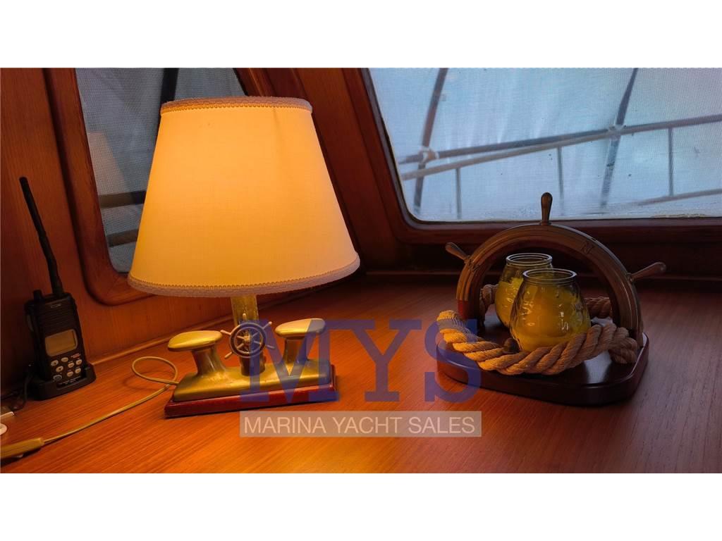 Notas internasCabina armatoriale a poppa con letto matrimoniale + letto singolo, bagno en-suite con vasca e doccia separata Cabina ospiti a prua con 2 letti singoli sovrapposti + letto singolo e bagno en-suite + doccia. Salone con divano e zona pranzo, cucina attrezzata con frigorifero, piano cottura, forno e lavello. Notas de la instrumentaciónAngolo barraBussola Contamiglia Display Ecoscandaglio Garmin Flaps idraulici GPS Garmin Pilota automatico Garmin Plotter Plotter con antenna GPS Radio VHF ICOM – 2 fissi + 1 portatile Elica di prua - bow thruster Batterie 6x200Ah Caricabatterie Luci di cortesia Presa 220V da banchina Presa acqua da banchina Salpa Ancore Elettrico Prese interne 12v Prese interne 220v Forno a gas Microonde Cucina a gas 2 fuochi Piastra elettrica 1 fuoco Altoparlanti Digitale Terrestre DvD + multi CD Impianto TV Radio AM/FM Stereo Pioneer Tv Samsung Frigorifero interno Aria condizionata Clima reversibile Riscaldamento solo prua con stufetta elettrica Autoclave Boiler per l'acqua calda Passerella Generatore Notas de armamentoAncora Delta + 85mt di catena in inoxBimini Cuscineria completa Cuscineria di poppa Cuscineria di prua Cuscineria fly Cuscineria Pozzetto Tavolo e sedie pieghevoli ponte esterno Teli copri finestra neri est. + veneziane interne Telo copriconsolle Telo coprisedile Tendalino Tuga in teak Pozzetto Teak Tavolo pozzetto Camminamenti laterali in teak Doccia esterna Piattaforma in Teak Scala reale rimovibile Scaletta da bagno Supporto motore fuoribordo LAVORI / REFITTING Anno 2019 - Revisione a zero ore di entrambi i motori (sbarcati e completamente revisionati) - Verniciatura completa della sala macchine e del locale tecnico di poppa - Nuove batterie al gel (2 motori, 4 servizi, 1 generatore) - Nuovo impianto antincendio a norma - Revisione impianto elettrico 12/220 volt - Nuovo bimini top fly - Nuova cuscineria del fly Anno 2020 - Nuovo boiler bivalente - Nuovi materassi cabina armatoriale - Costruzione e istallazione di una gruetta in acciaio inox per alaggio tender - Istallazione di nuovo wc Tecma - Lucidatura e trattamento antiossidazione di tutti gli ottoni - Manutenzione ordinaria cella frigorifera Anno 2021 - Nuove cornici teack oblo - Nuove cornici teack finestre cabina di poppa Anno 2022 - Nuovo teack ponte di poppa e portello scale gavone di poppa - Istallazione aria condizionata - Controllo e aggiornamento sistemi di navigazione Garmin Anno 2023 - Batterie nuove (4 servizi , 2 motori) - Lucidatura di tutti gli ottoni - Lucidatura completa scafo e opera morta Anno 2024 - Manitenzione ordinaria motori e generatore - Revisione per ispezione e rinnovo certificato RINA |