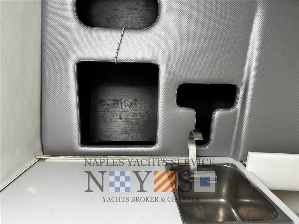 Notas internasNotas de la instrumentaciónAncora, Autoclave, Autogonfiabile, Batterie, Bussola, Contamiglia, Doccia esterna, Ecoscandaglio, Luci di cortesia, Piattaforma, Pompa di sentina automatica, Pompa di sentina elettrica, Presa 220V banchina, Raddrizzatore, Radio VHF, Salpa Ancore Elettrico, Scaletta da bagno, TrombaNotas de armamentoCuscineria completa, Cuscineria di poppa, Cuscineria di prua, Frigorifero interno, Prese interne 12v, Prese interne 220v, Stereo, Tendalino |