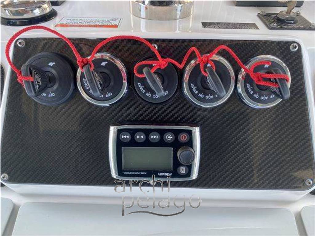Notas internasCUCINA: - Piano cottura induzione n° 2 fuochi - Lavello - Frigo WET BAR in pozzetto: - Frigo - Ghiacciaia Notas de la instrumentaciónELETTRONICA:- GPS - Log - Chart Plotter Garmin touch screen X3 - Ecoscandaglio - Bussola - Computer di bordo - Comando motori elettronico Notas de armamentoACCESSORI:- Ancora - Verricello elettrico - Elica di prua - Autoclave - Boiler - Caricabatterie - Batterie - Pompa di sentina automatica - Pompa di sentina elettrica - Pompa di sentina manuale - Impianto stereo - Impianto TV - Cuscineria prendisole completa - Scaletta bagno - Tavolo pozzetto - Porta laterale pozzetto - T-Top. Lavori 2023: - Verniciatura fianchi e Hard Top in colore grigio antracite - Rifacimento completo tappezzerie - Installazione teak sintetico |