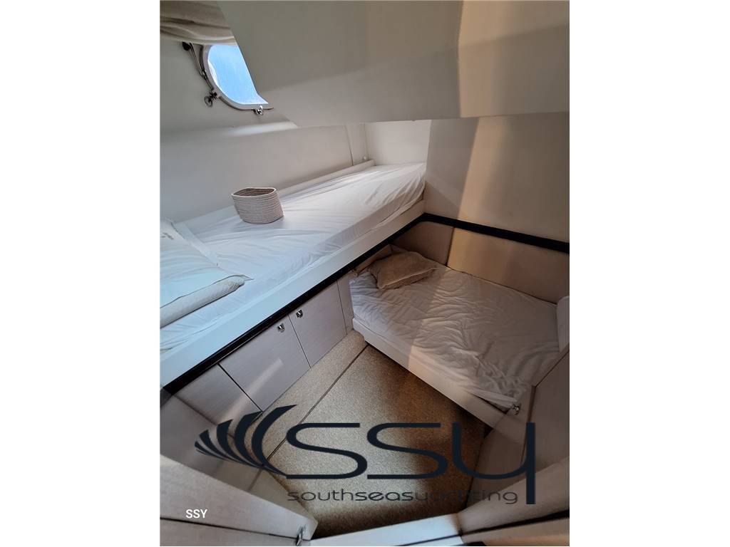 Notas internas- zona cucina contrapposta con piano cottura in vetroceramica Candy, forno bivalente De Longhi, frigorifero e congelatore da 270lt Isotherm; - cabina armatoriale matrimoniale prodiera con bagno privato e box doccia + cd/mp3 player + cassaforte; - due cabine ospiti doppie di cui una con letti in piano e l’altra con letti ad “L” + cd/mp3 player ed un bagno in comune con doccia; - cabina marinaio a poppa con ingresso e servizi indipendenti. - Spacious saloon with comfortable sofa, electric table and Samsung LED TV opposite + HD satellite decoder + Alpine hIFI/CD/MP3 player with Bluetooth; - Opposite kitchen area with Candy glass-ceramic cooktop, De Longhi dual-function oven, 270L Isotherm refrigerator and freezer; - Forward master cabin with double bed, private bathroom with shower box + CD/MP3 player + safe; - Two twin guest cabins: one with parallel beds and the other with L-shaped beds + CD/MP3 player and a shared bathroom with shower; - Crew cabin aft with independent entrance and private facilities. Notas de la instrumentación- VHF/DSC Furuno FM2721;- multifunction chart plotter Raymarine C120; - echo & log integrated Raymarine C120; - autopilot Navicontrol AP303 Gold; - LCD strumenti motori MMDS-CLC 6.3 engine instruments LCD; - ind. angolo di barra & flaps / rudder & flaps ind .level; - indicatori trim tabs ind. Level; - manette elettroniche / electronic speed throttles Notas de armamento- elica di prua Vetus;- gruppo elettrogeno Kohler 9 kw Efozd; - raddrizzatore 200V/40Amph; - caricabatterie Mastervolt 24/100-C automatico; - inverter Mastervolt 2500W; - impianto A/C reversibile Condaria DCXM2501 (anche in pozzetto); - boiler elettrico 50lt; - passerella idraulica telescopica a scomparsa Besenzoni; - TV Led Samsung + HD sat decoder; - HIFI Fusion MS-RA70N con bluetooth; - impianto TVSAT Raymarine; - mobile bar pozzetto con BBQ elettrico, 2 frigo a cassetto e lavello; - 1 winch di tonneggio Lofrans' a poppa; - tendalini, cappe & coperture completi; - ancora 30kg + 75 mt di catena da 10; - verricello salpancora Lofrans 1500w; - battagliola bassa e pulpito prua in acciaio inox; - tender Genius 325 + Suzuki 15HP; - nome in acciaio retroilluminato; - luci subacquee Lumishore. - Vetus Bow thruster; - 9kw Efozd Kohler generator; - Rectifier 220v/40Amph; - automatic Mastervolt 24/100-C batterycharger; - inverter Mastervolt 2500W; - Condaria DCXM2501 A/C system (cockpit included); - 50lt electric boiler; - Besenzoni hydraulic retractable gangway; - Samsung led tv + HD SAT decoder; - HIFI/CD/Mp3 Alpine with bluetoooth; - TVSAT system Raymarine; - cockpit alfresco bar with electric BBQ, 2 drawer fridges & sink; - 1xLofrans' aft winch; - full set outside awning & coverings; - 30kg Bruce anchor + 75 mt chain; - 1500w Lofrans’ Project windlass; - stainless steel low sea railing with bow pulpit; - 30kg Bruce anchor + 75 mt chain; - tender Genius 325 + Suzuki 15hp; - stainless steel backlit name; - Lumishore underwater lights. |