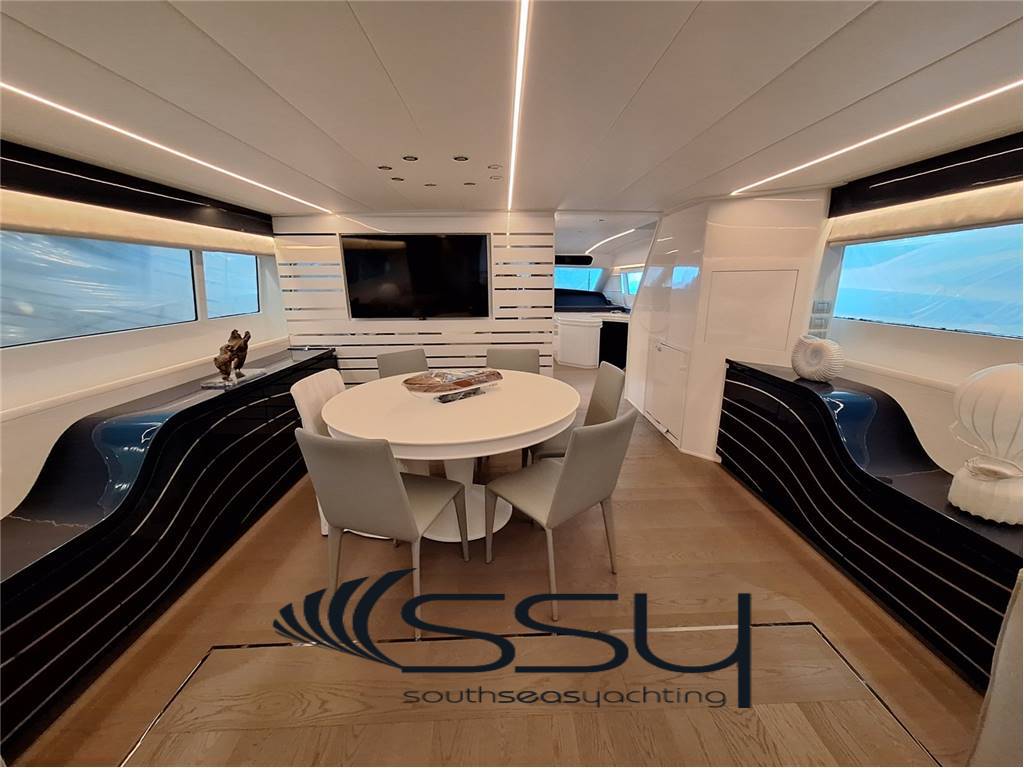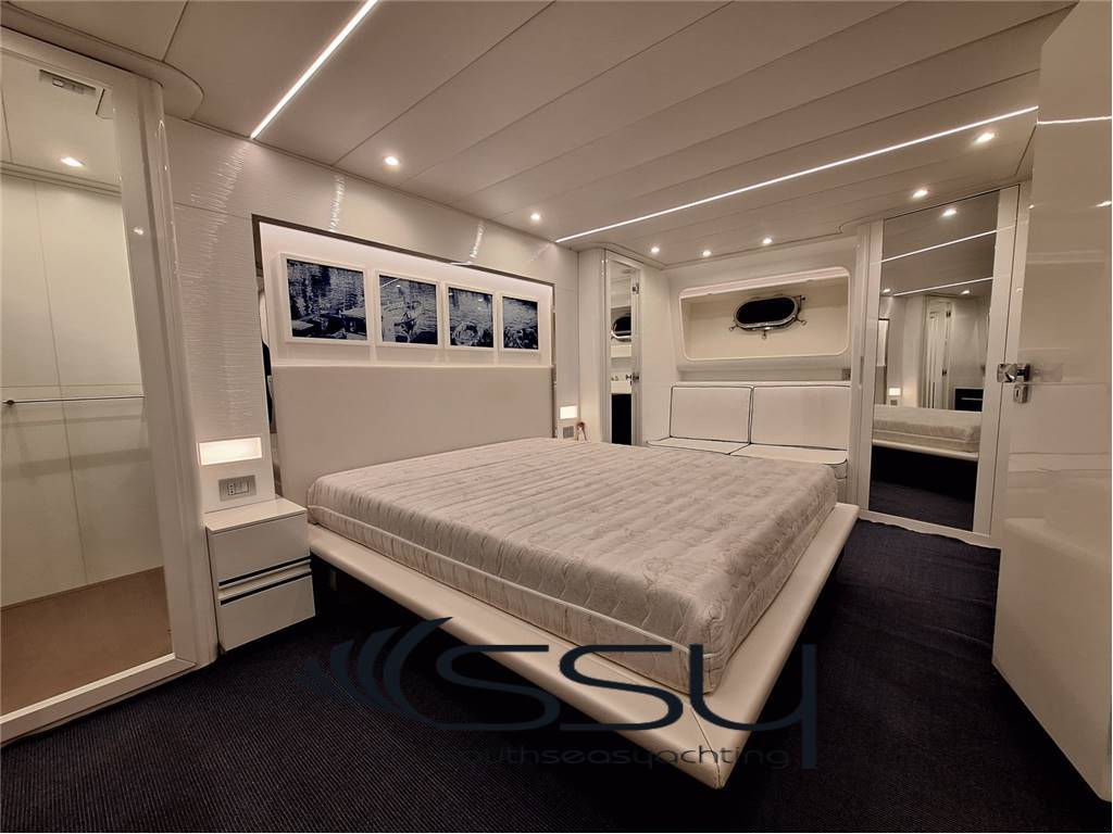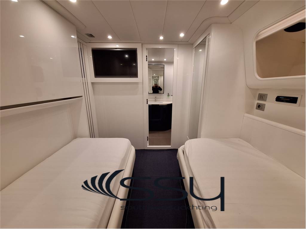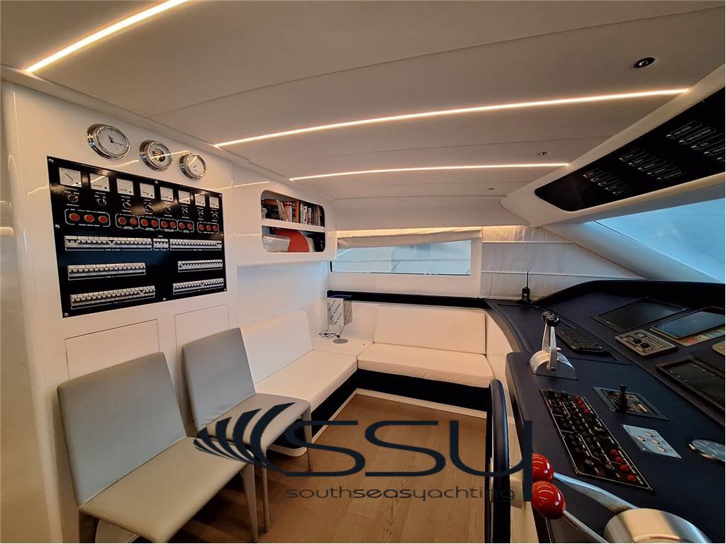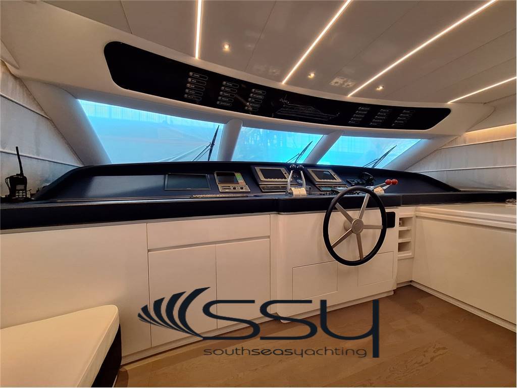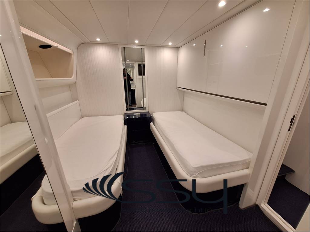 Notas internas- Spazioso e luminoso salone composto da due divani lineari contrapposti e due tavolini, poco più avanti la zona pranzo con tavolo tondo per 6 ampliabile, smart TV Samsung 50', Bang & Olufsen hifi con surround, sky decoder & Rex frigobar; - Cucina separata con doppio accesso (int/est), frigo & freezer a colonna Bosch, piano cottura ad induzione Neff, forno elettrico Bosch, lavastoviglie Miele, fabbricatore di ghiaccio Isotherm, monitor lcd con telecamere sorveglianza e porta di servizio laterale; - Plancia comandi verso prua con dinette composta da due divanetti ad angolo e tavolo, seconda porta laterale di servizio ed accesso diretto al flybridge; ZONA NOTTE: - ampia cabina armatoriale matrimoniale a centro barca a tutto baglio, completa di 2 bagni ensuite con box doccia, cabina armadio, angolo vanity, divanetto, smart tv Samsung, sat decoder, cd/dvd/mp3 player; - cabina VIP matrimoniale prodiera con bagno privato con box doccia, smart tv Samsung, sat decoder, cd/dvd/mp3 player; - cabina ospiti tripla con 2 letti in piano e 3° a pullman a scomparsa, bagno privato con box doccia, smart tv Samsung, sat decoder, cd/dvd/mp3 player; - locale equipaggio separato a poppa composto da cabina capitano + cabina doppia con bagno in comune ed accesso diretto alla sala macchine, frigorifero e congelatore Bosch, lavasciuga Whirpool 9kg. UPPER DECK: - Spacious living room with 2 opposite sofas with 2 coffe tables, forward dining area with round table, 50’’ Samsung smart tv, sat decoder and Bang & Olufsen audio system, frigobar Rex; - Separate kitchen with induction Neff stove, Boschelectric oven, Bosch fridge & freezer, Miele dishwasher, Isotherm icemaker, lcd monitor with security cam and side backdoor; - Forward dashboard/helm station with crew corner with sofa and table, side door and direct access to the flybridge; LOWER DECK: - Amidships full beam master double cabin with 2 ensuite bathrooms with box shower, wardrobe, vanity corner, sofa, Samsung smart tv, sat decoder, cd/dvd/mp3 player; - Forward VIP double cabin with private bathroom with box shower, Samsung smart tv, sat decoder, cd/dvd/mp3 player; - Triple guest cabin + 2 twin bed + 3° foldaway pullman bed, private bathroom, Samsung smart tv, sat decoder, cd/dvd/mp3 player; - Separate aft crew quarter with captain's cabin + twin cabin with one sharing bathroom and direct access to the engine room + Bosch fridge + Bosch Freezer and Whirpool 9kg washer/dryer machine. Notas de la instrumentación- VHF Sailor RT204S;- bidata Autohelm ST60; - 2xRaymarine E120 multifunction plotters; - radar Furuno Fec1020; - echosuonder / ecoscandaglio; - autopilot Navicontrol AP3003; - wind station / stazione vento; - electric searchlight Sunshin HR1012 faro di ricerca; - ind. Angolo di barra & flaps / rudder & flaps ind. Level; - lcd display with TVCC engine room & cockpit / TVCC sala macchine & pozzetto; - Samsung PTZ Coontroller SPC10 keyboard 3D joystick. Notas de armamentoGSM SAT COM + Panasonic 308 Easa Phone (sist. Intercomunicante modulare);- telecamere controllo sala macchine & pozzetto; - sistema intercom Tecnonautica; - elica di prua idraulica Hydro System; - 2 gruppi elettrogeni Onan da 22.5kw MDKBT-677A 50h/220v; - 2 caricabatterie Mastervolt (24/110-2 + 24/100-3); - 2 inverter Mastervolt (2xSine Wave 24/2500); - climatizzazione doppio ciclo Frigomar 76.000 btu; - dissalatore Selmar Pacific 200/CS 190 lt/h; - impianto TVSAT Sea Tel; - 4 decoder sat + 4 smart tv Samsung; - sistema HIFI Bang & Olufsen con dolby surrond; - lavastoviglie Miele + lavasciuga 9kg Whirpool; - fabbricatore di ghiaccio Isotherm; - 4 frigoriferi + 2 freezer (Bosch + Miele); - barbecue + 2 winecooler Klarstein + bimini top sul flybridge; - passerella idraulica Pin Craft a scomparsa; - scaletta da bagno Pin Craft idraulica a scomparsa; - plancetta di poppa idraulica a sbalzo; - gruette elettrica sul flybridge; - 2 tonneggi di poppa Lofrans’; - verricello salpancora Lofrans’ + 100mt di catena; - tender Novurania 420 + Yamaha 20hp; - 3 pome autoclave Gianneschi (1x24v + 2x220v); - dotazioni di sicurezza complete senza limiti; - tendalini e cappe completi; - impianto illuminazione int/est a led. - GSM SAT COM with Panasonic 308 Easa Phone (modular switching system); - TVCC system engine room & cockpit; - Tecnonautica intercom system; - Hydraulic bow thruster Hydro System; - 2x22.5kw Onan generators MDKBT-677A 50h/220v; - 2xMastervolt battery chargers (24/110-2 + 24/100-3); - 2xMastervolt inverter (2xSine Wave 24/2500); - Frigomar 76.000 btu A/C system reverse cycle; - Selmar Pacific 200/CS 190 lt/h water maker; - Sea Tel TVSAT system; - 4xsat decoders + 4 Samsung smart tv; - Bang & Olufsen audio system with surround; - dishwasher Miele + washer/dryer machine Whirpool 9kg; - icemaker Isotherm + 4 fridges & 2 freezer; - flybridge barbecue + 2xKlarstein wine cooler & bimini top; - Pin Craft foldaway hydraulic gangway; - Pin Craft foldaway hydraulic swimming ladder; - hydraulic pull-down swimming platform; - flybridge electric davit for tender; - 2xLofrans’ aft winches + 1 Lofrans’ windalass & 100mt of chain; - tender Novurania 420 + 20hp Yamaha; - 3xGianneschi fresh water pumps (1x24v + 2x220v); - full emergency equipment; - full outside canvas & coverings; - inside/outside led lights system. |