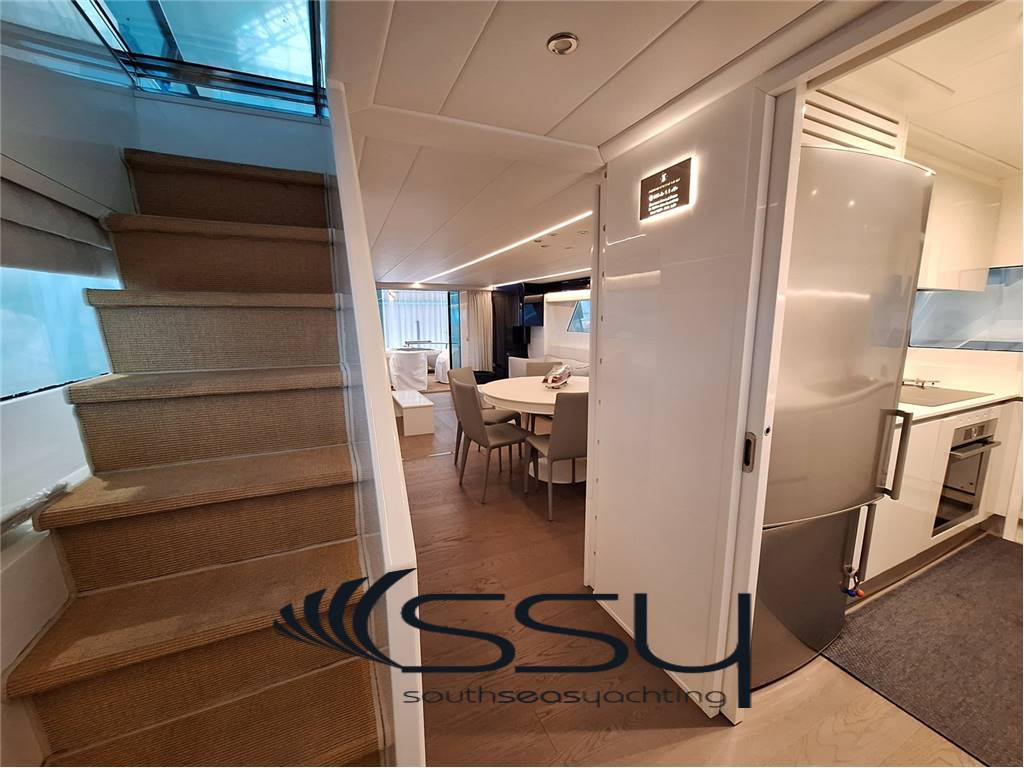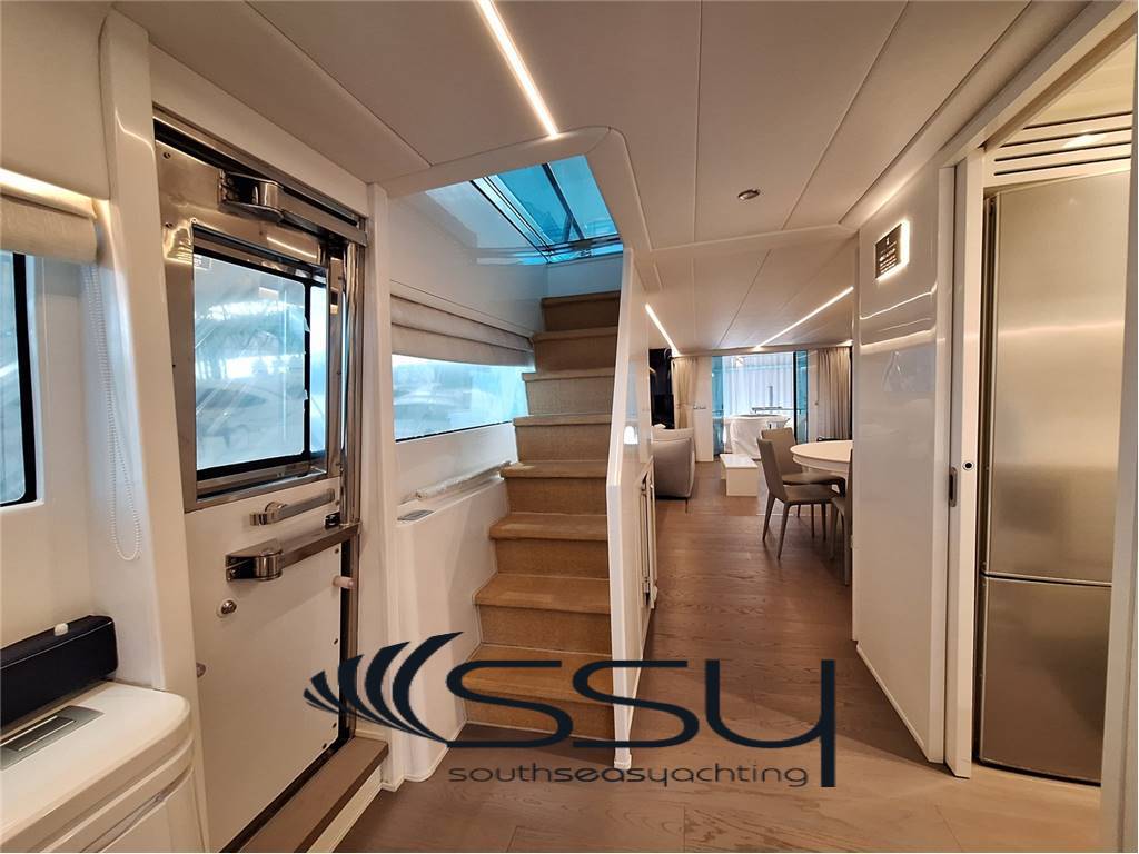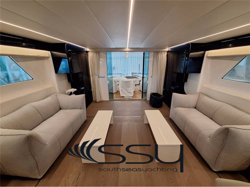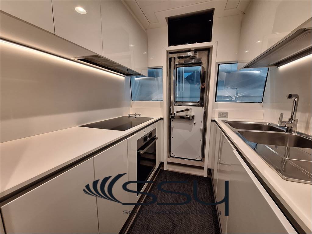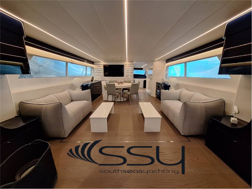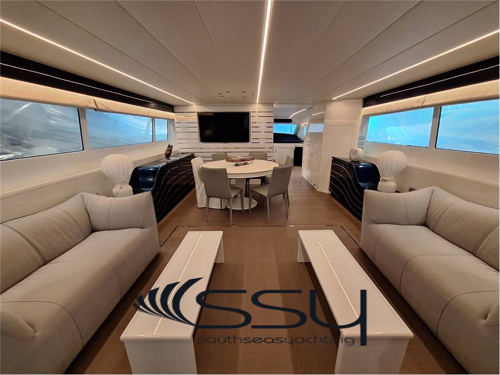 Notas internas- Spazioso e luminoso salone composto da due divani lineari contrapposti e due tavolini, poco più avanti la zona pranzo con tavolo tondo per 6 ampliabile, smart TV Samsung 50', Bang & Olufsen hifi con surround, sky decoder & Rex frigobar; - Cucina separata con doppio accesso (int/est), frigo & freezer a colonna Bosch, piano cottura ad induzione Neff, forno elettrico Bosch, lavastoviglie Miele, fabbricatore di ghiaccio Isotherm, monitor lcd con telecamere sorveglianza e porta di servizio laterale; - Plancia comandi verso prua con dinette composta da due divanetti ad angolo e tavolo, seconda porta laterale di servizio ed accesso diretto al flybridge; ZONA NOTTE: - ampia cabina armatoriale matrimoniale a centro barca a tutto baglio, completa di 2 bagni ensuite con box doccia, cabina armadio, angolo vanity, divanetto, smart tv Samsung, sat decoder, cd/dvd/mp3 player; - cabina VIP matrimoniale prodiera con bagno privato con box doccia, smart tv Samsung, sat decoder, cd/dvd/mp3 player; - cabina ospiti tripla con 2 letti in piano e 3° a pullman a scomparsa, bagno privato con box doccia, smart tv Samsung, sat decoder, cd/dvd/mp3 player; - locale equipaggio separato a poppa composto da cabina capitano + cabina doppia con bagno in comune ed accesso diretto alla sala macchine, frigorifero e congelatore Bosch, lavasciuga Whirpool 9kg. UPPER DECK: - Spacious living room with 2 opposite sofas with 2 coffe tables, forward dining area with round table, 50’’ Samsung smart tv, sat decoder and Bang & Olufsen audio system, frigobar Rex; - Separate kitchen with induction Neff stove, Boschelectric oven, Bosch fridge & freezer, Miele dishwasher, Isotherm icemaker, lcd monitor with security cam and side backdoor; - Forward dashboard/helm station with crew corner with sofa and table, side door and direct access to the flybridge; LOWER DECK: - Amidships full beam master double cabin with 2 ensuite bathrooms with box shower, wardrobe, vanity corner, sofa, Samsung smart tv, sat decoder, cd/dvd/mp3 player; - Forward VIP double cabin with private bathroom with box shower, Samsung smart tv, sat decoder, cd/dvd/mp3 player; - Triple guest cabin + 2 twin bed + 3° foldaway pullman bed, private bathroom, Samsung smart tv, sat decoder, cd/dvd/mp3 player; - Separate aft crew quarter with captain's cabin + twin cabin with one sharing bathroom and direct access to the engine room + Bosch fridge + Bosch Freezer and Whirpool 9kg washer/dryer machine. Notas de la instrumentación- VHF Sailor RT204S;- bidata Autohelm ST60; - 2xRaymarine E120 multifunction plotters; - radar Furuno Fec1020; - echosuonder / ecoscandaglio; - autopilot Navicontrol AP3003; - wind station / stazione vento; - electric searchlight Sunshin HR1012 faro di ricerca; - ind. Angolo di barra & flaps / rudder & flaps ind. Level; - lcd display with TVCC engine room & cockpit / TVCC sala macchine & pozzetto; - Samsung PTZ Coontroller SPC10 keyboard 3D joystick. Notas de armamentoGSM SAT COM + Panasonic 308 Easa Phone (sist. Intercomunicante modulare);- telecamere controllo sala macchine & pozzetto; - sistema intercom Tecnonautica; - elica di prua idraulica Hydro System; - 2 gruppi elettrogeni Onan da 22.5kw MDKBT-677A 50h/220v; - 2 caricabatterie Mastervolt (24/110-2 + 24/100-3); - 2 inverter Mastervolt (2xSine Wave 24/2500); - climatizzazione doppio ciclo Frigomar 76.000 btu; - dissalatore Selmar Pacific 200/CS 190 lt/h; - impianto TVSAT Sea Tel; - 4 decoder sat + 4 smart tv Samsung; - sistema HIFI Bang & Olufsen con dolby surrond; - lavastoviglie Miele + lavasciuga 9kg Whirpool; - fabbricatore di ghiaccio Isotherm; - 4 frigoriferi + 2 freezer (Bosch + Miele); - barbecue + 2 winecooler Klarstein + bimini top sul flybridge; - passerella idraulica Pin Craft a scomparsa; - scaletta da bagno Pin Craft idraulica a scomparsa; - plancetta di poppa idraulica a sbalzo; - gruette elettrica sul flybridge; - 2 tonneggi di poppa Lofrans’; - verricello salpancora Lofrans’ + 100mt di catena; - tender Novurania 420 + Yamaha 20hp; - 3 pome autoclave Gianneschi (1x24v + 2x220v); - dotazioni di sicurezza complete senza limiti; - tendalini e cappe completi; - impianto illuminazione int/est a led. - GSM SAT COM with Panasonic 308 Easa Phone (modular switching system); - TVCC system engine room & cockpit; - Tecnonautica intercom system; - Hydraulic bow thruster Hydro System; - 2x22.5kw Onan generators MDKBT-677A 50h/220v; - 2xMastervolt battery chargers (24/110-2 + 24/100-3); - 2xMastervolt inverter (2xSine Wave 24/2500); - Frigomar 76.000 btu A/C system reverse cycle; - Selmar Pacific 200/CS 190 lt/h water maker; - Sea Tel TVSAT system; - 4xsat decoders + 4 Samsung smart tv; - Bang & Olufsen audio system with surround; - dishwasher Miele + washer/dryer machine Whirpool 9kg; - icemaker Isotherm + 4 fridges & 2 freezer; - flybridge barbecue + 2xKlarstein wine cooler & bimini top; - Pin Craft foldaway hydraulic gangway; - Pin Craft foldaway hydraulic swimming ladder; - hydraulic pull-down swimming platform; - flybridge electric davit for tender; - 2xLofrans’ aft winches + 1 Lofrans’ windalass & 100mt of chain; - tender Novurania 420 + 20hp Yamaha; - 3xGianneschi fresh water pumps (1x24v + 2x220v); - full emergency equipment; - full outside canvas & coverings; - inside/outside led lights system. |