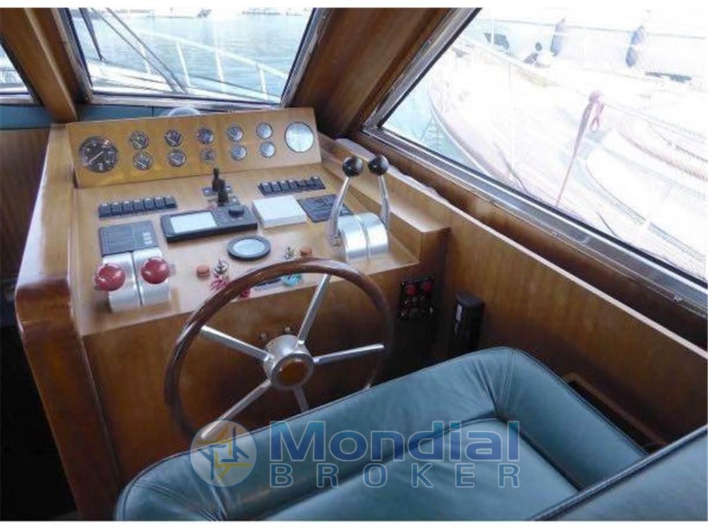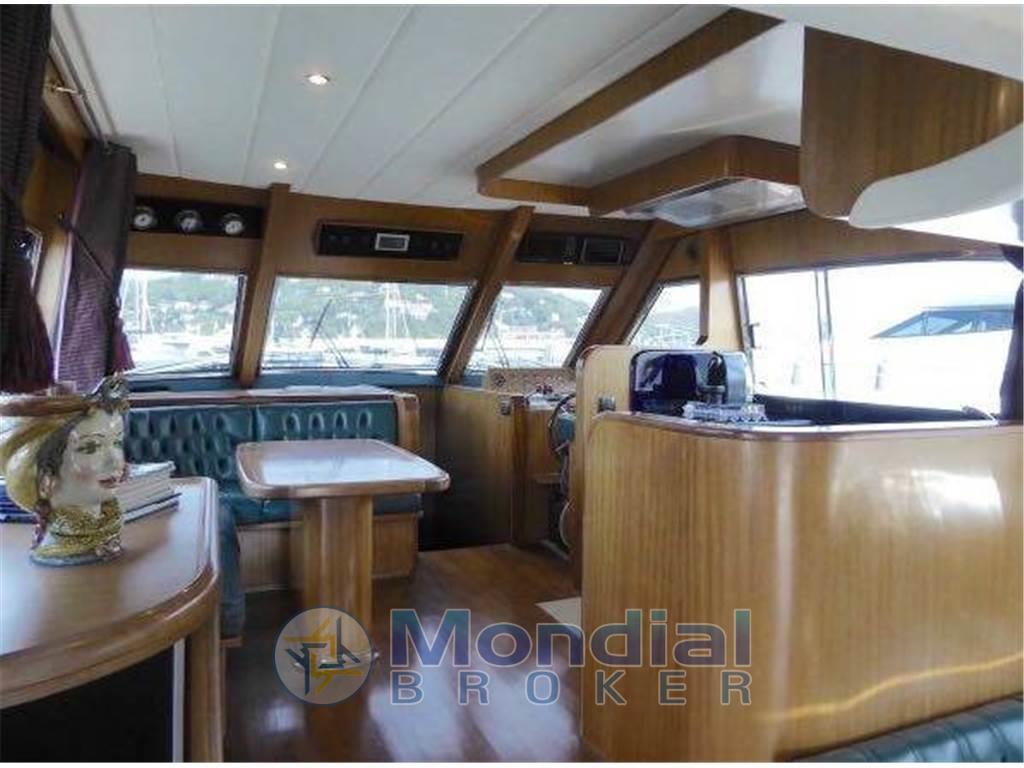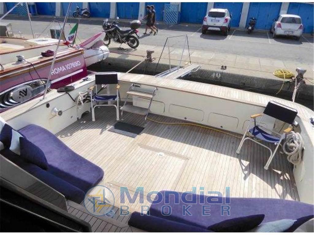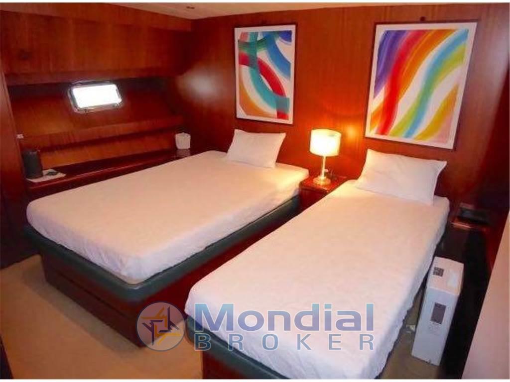 Notas internasCabina armatoriale con letto matrimoniale e bagno - cabina ospiti con due letti e bagno - cabina doppia per equipaggio con bagno. Ampia zona salone con divani in pelle - zona pranzo con cucina - timoneria interna e sul fly - ampio pozzetto.