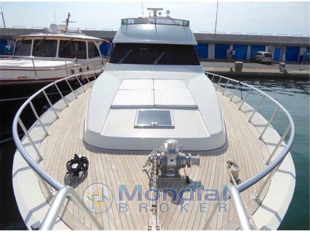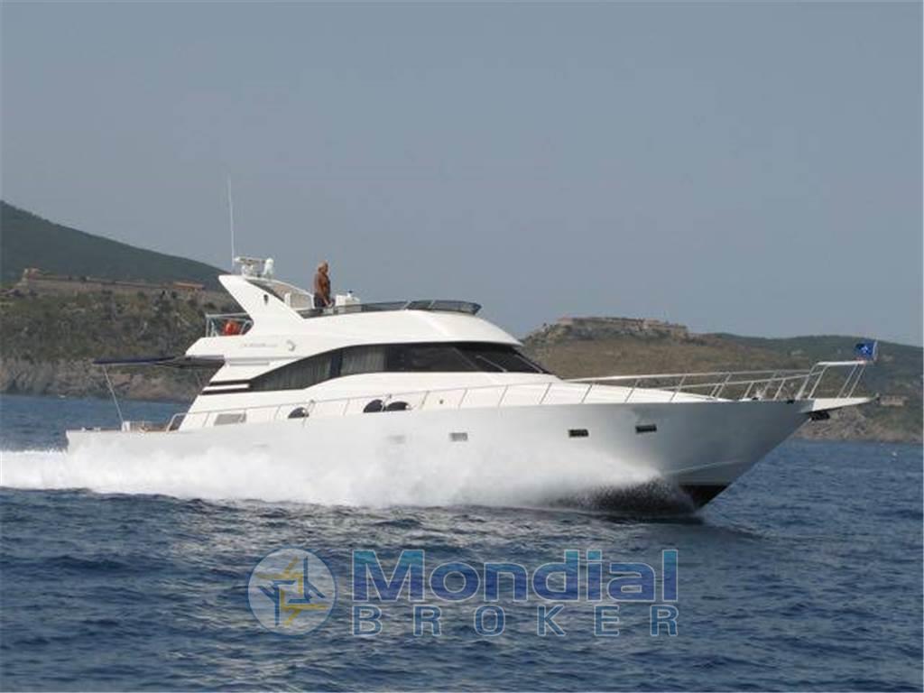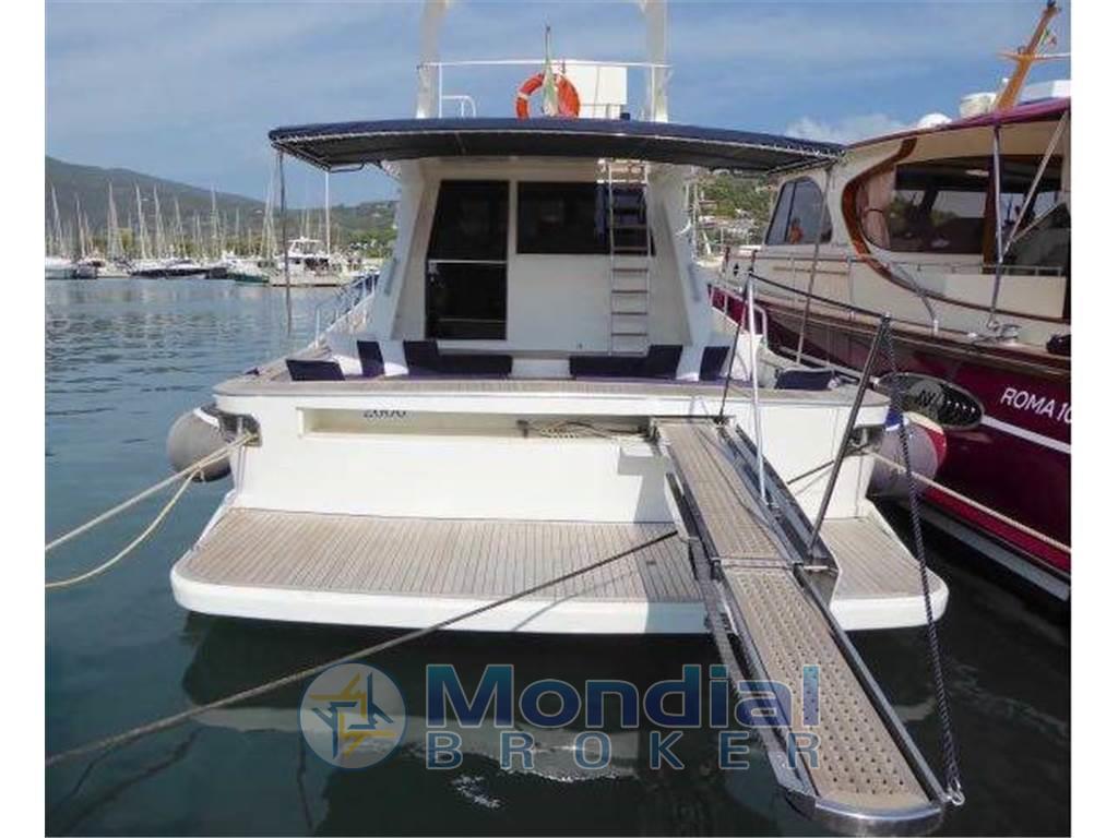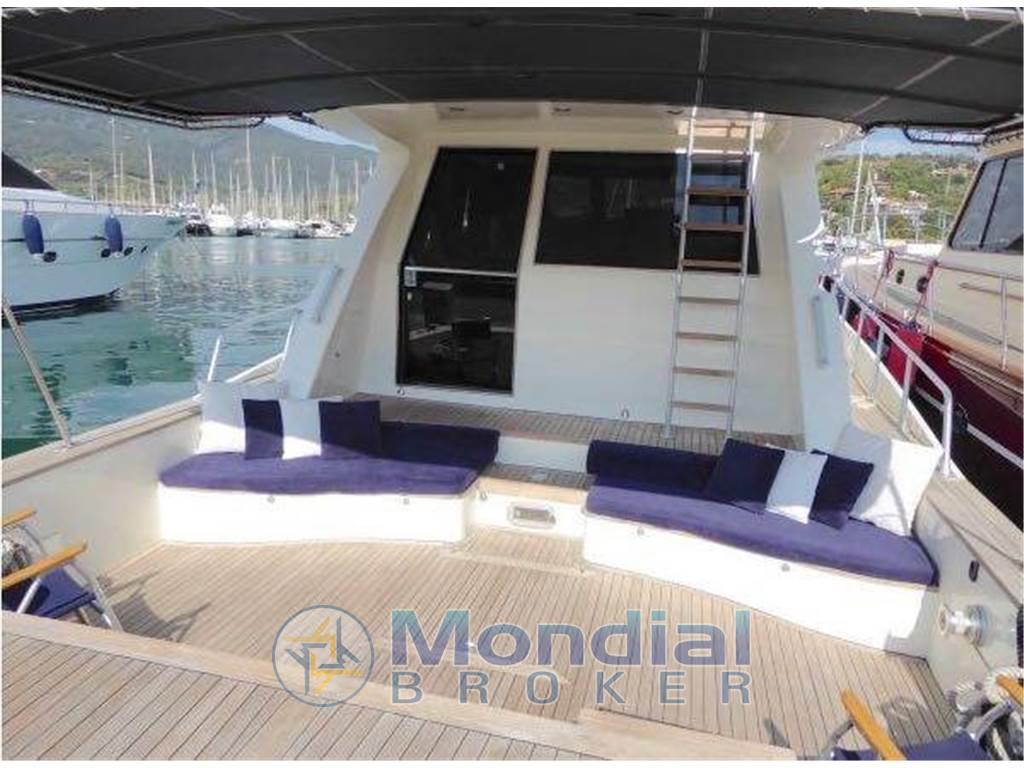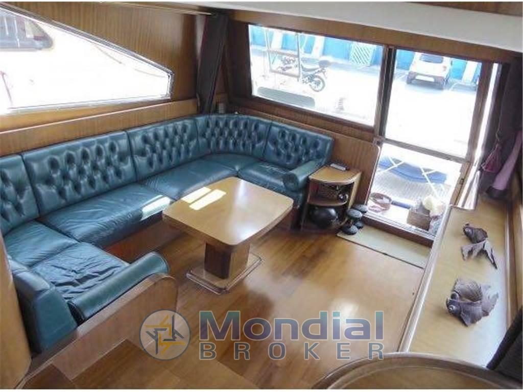 Notas internasCabina armatoriale con letto matrimoniale e bagno - cabina ospiti con due letti e bagno - cabina doppia per equipaggio con bagno. Ampia zona salone con divani in pelle - zona pranzo con cucina - timoneria interna e sul fly - ampio pozzetto.