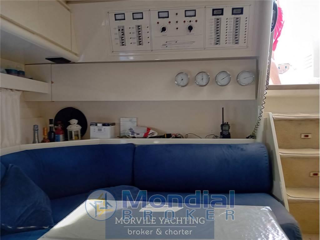 Notas internasCUCINA : SI DINETTE : SI Impianto stereo Bagni: 2 Cabine: 2 Cucina Notas de la instrumentaciónVhf Notas de armamentoWC E - M EBUSSOLA X LAVASTOVIGLIE TAVOLO POZZETTO X CONTAMIGLIA X PASSERELLA IDRAUL. X ECOSONDA X FORNO X VERRICELLO ELETTR. X PLANCETTA POPPA X NAVIGATORE GPS X FRIGORIFERI N° 2 SCALETTA BAGNO X PLOTTER X CUSCINI PRENDISOLE X PARABORDI X CAPPOTTINA X PRESA TERRA 220V X TELO COPRICONSOLE X CARICABATTERIE X RADIO V.H.F. X TENDA PARASOLE X POMPA SENTINA X AUTOCLAVE X FLAPS IDRAULICI X BOILER ACQUA CALDA X ALLARMI MOTORE X DOCCIA ESTERNA X GENERATORE X IMPIANTO STEREO CD X |