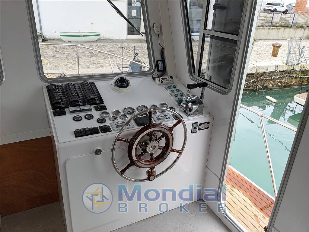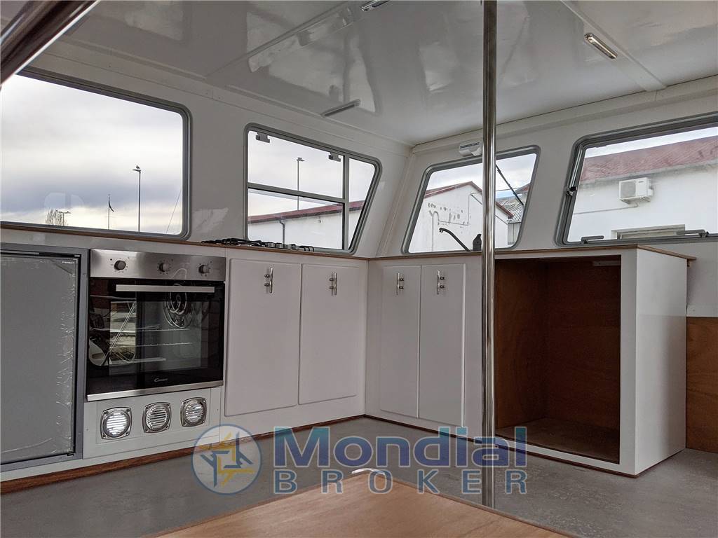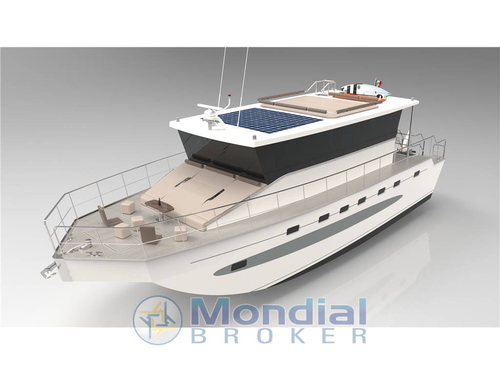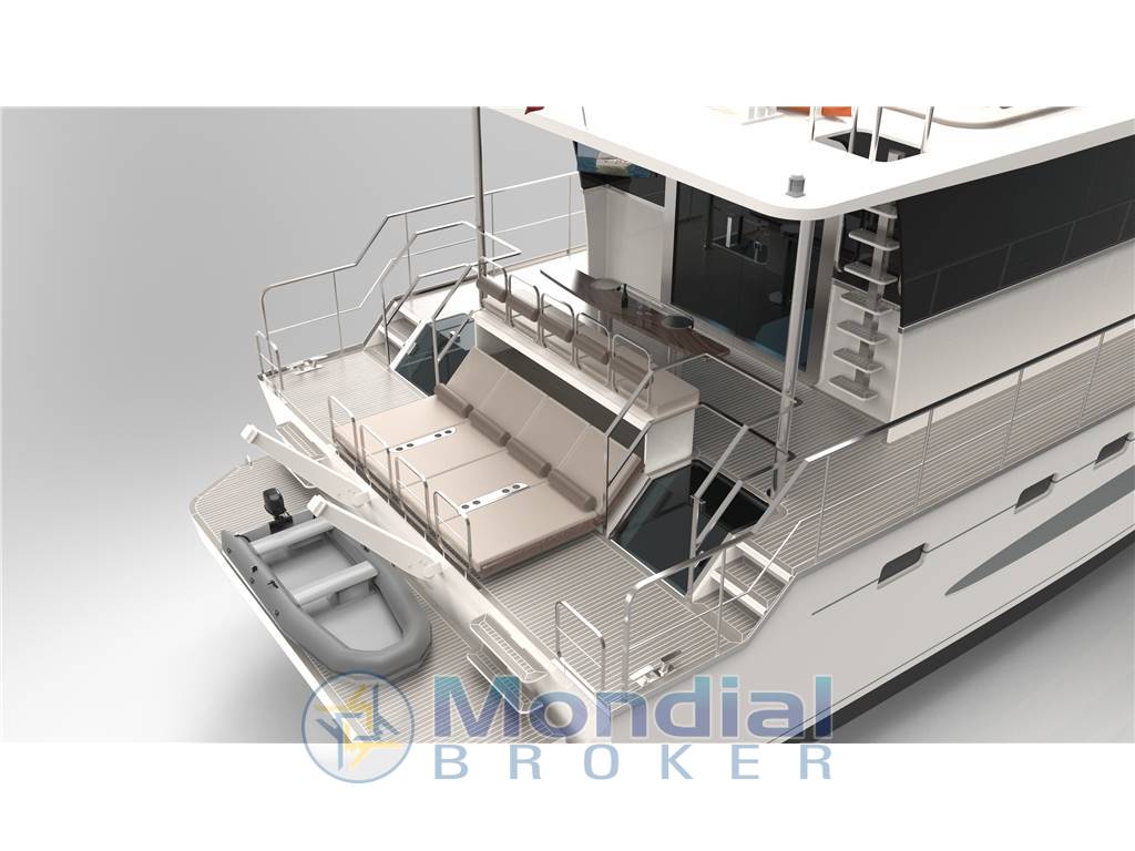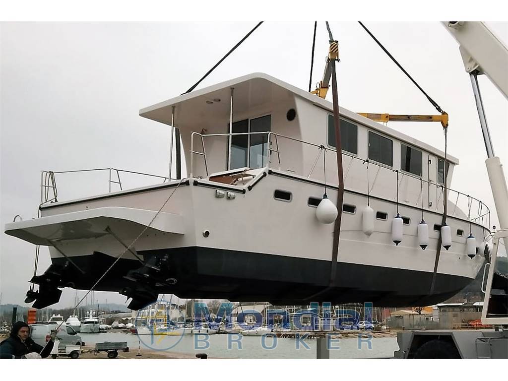 Notas internasInnova 50 è il nuovo catamarano a motore prodotto dal cantiere CNNT e gia' provato in mare. Personalizzabile ma con interni gia' allestiti in cinque comode cabine doppie ognuna con bagno. Nella cabina rialzata notevoli gli spazi abitativi: cucina con elettrodomestici casalinghi, 2 salottini, seduta di guida con postazione di comando e in zona ingresso cabina bagno con doccia. Tettuccio con possibilita' di realizzare rastrelliere porta-attrezzatura e gommone, installazione di pannelli solari, ecc. Negli ampi spazi esterni vi è possibilita' di installare prendisole e un comodo tavolino con sedie a poppa o a prua. Moderna ed efficiente la carena realizzata in vetro/kevlar sottovuoto in cui lo scafo centrale sollevato fornisce spazio alle cabine, solidità traversale e riserva di galleggiamento limitando il beccheggio in caso di mare mosso. Ampie le superfici di calpestio esterne in teak, sovrastrutture ed interni molto solidi realizzati in vetroresina poliestere e compensato marino, ampi spazi di accoglienza e notevoli volumi di stivaggio per crociere a lungo raggio in completa autonomia. Importanti le possibilita' di stivaggio nei 3 gavoni di poppa e nei 6 gavoni di prua, nei due piu' grandi sono realizzabili cuccette per marinaio. Ideale in prospettiva di utilizzo per charter a breve/lungo raggio o per uscite giornaliere grazie alle possibilita' di trasporto di circa 20 ospiti.