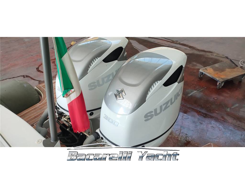 Notas internas-ampio prendisole di poppa -console centrale con t-top -bagno e spogliatoio sotto console Notas de la instrumentación-bussola magnetica-manette elettroniche -radio vhf garmin -gps garmin - accensione keyless -impianto stereo boss Notas de armamento-teak coperta-tendaggi completi -cuscineria completa -t-top in acciaio -tubolari limited edition -motori ancora in garanzia , versione dual prop |