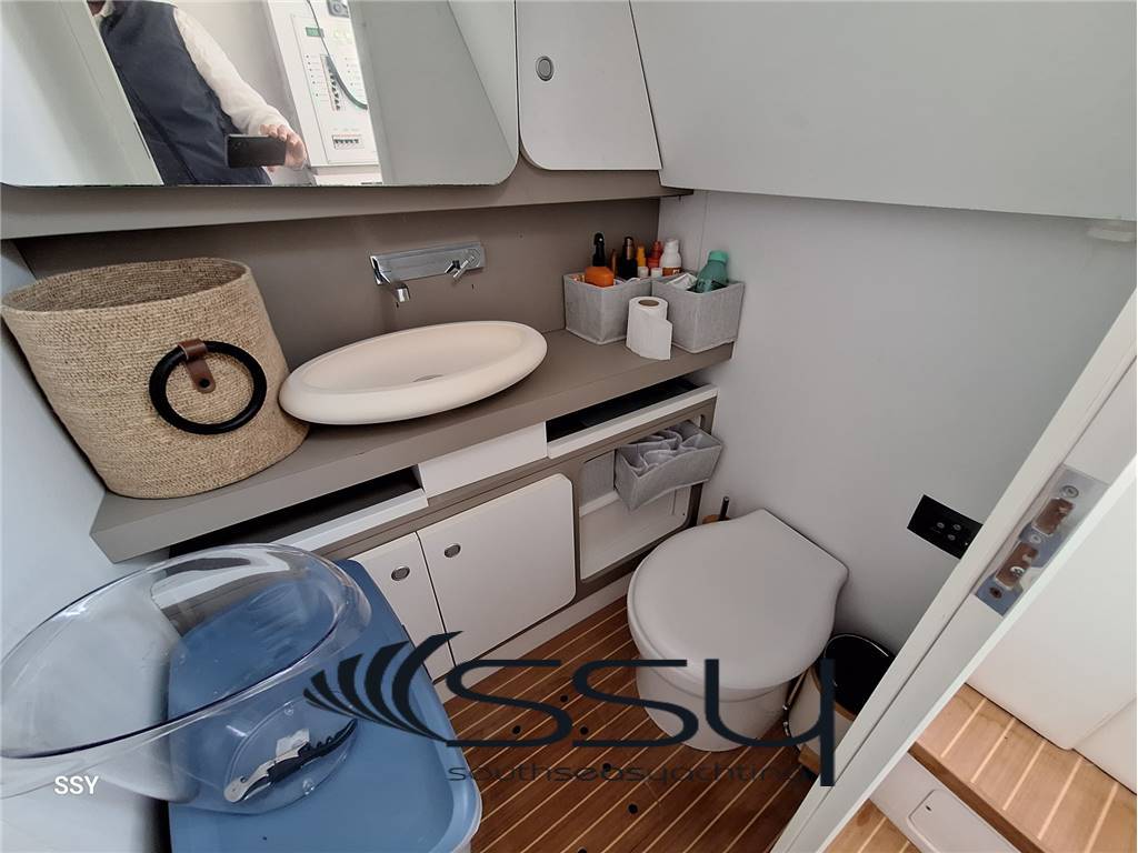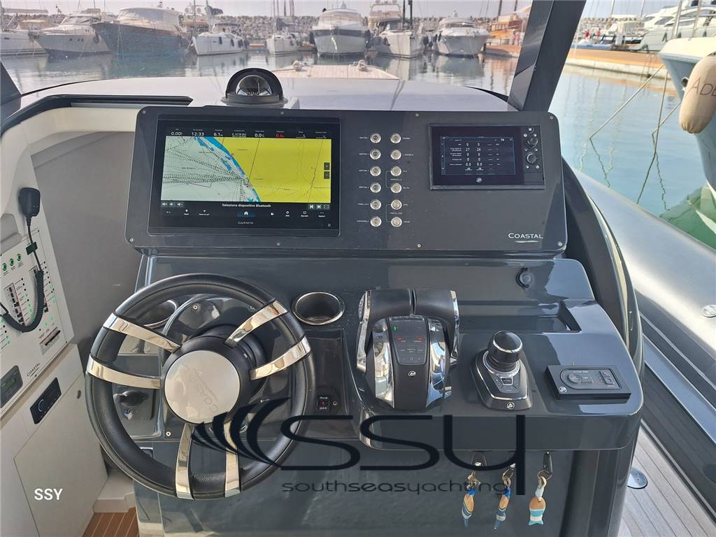 Notas internascon doccia. Spacious lower deck cabin with sofa, double bed, Fusion MS-RA210 hi fi system, parquet flooring and separate bathroom with shower. Notas de la instrumentaciónVHF Garmin 115iGarmin GPSMap8416 multifunction display 16'' with all systems integrated; Active Trim Mercury trim tab instrument; Skyhook Mercury Joystick piloting; Mercury VesselView 703 Multi Engine Kit; ekica di prua Quick TCD2042 bow thruster; Mercury electronic speed throttles. Notas de armamento- elica di prua Quick TCD2042;- inverter Quick RDS 1562 Remote Display; - caricabatterie SBC 700 NRG+ 12V/60A; - separatore di carica Quick ECS223; - coperta in teak con comenti neri; - prendisole prua/poppa + divano prua con tavolo telescopico trasformabile in prendisole; - tavolo a poppa per 6 persone con base in acciaio; - impianto HIFI Fusion MS-RA210 + casse e subwoofer Fusion; - verricello salpancora Quick + telecomando; - ancora Bruce in acciaio inox; - gonfiatore elettrico; - ludi di cortesia + impianto a led. - Quick TCD2042 bow thruster; - inverter Quick RDS 1562 Remote Display; - SBC 700 NRG+ 12V/60A battery charger; - Quick ECS223 charger separator; - teak decks with black seams; - 3 helm seats; - sunpad aft and forward + bow sofa with telescopic table convertible in additional sunbed; - aft dining table with stainless steel base for 6; - wet-bar with 2 drawer fridges and sink; - HIFI Fusion MS-RA210 + Fusion speakers with subwoofer; - Quick anchor windlass + remote control; - stainless steel Bruce anchor; - electrical inflator; - led ambient floor lighting and spreder lights. |