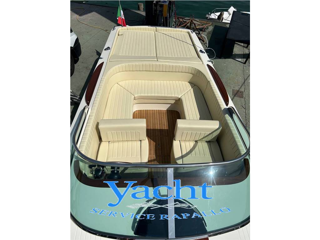 Il cantiere Giacomo Colombo ha realizzato una speciale versione a propulsione elettrica dell’elegantissimo 25 Super Indios, proposto nella versione vintage di colore bianco arricchita dalle rifiniture in teak. Questo progetto è stato realizzato in collaborazione con Flexi System by MASE GENERATORS allo scopo di proporre un’imbarcazione green nel totale rispetto dell’ambiente, grazie al fatto di non consumare carburante e navigare ad “emissioni zero”. Il progetto risponde alla crescente domanda di imbarcazioni elettriche idonee alla navigazione in acque interne come laghi, canali e fiumi la cui navigazione è interdetta o limitata. Si ricarica con la tradizionale energia elettrica e se la fonte energetica proviene da fonti rinnovabili non vi è alcun impatto ambientale ed insieme ad una navigazione silenziosa si rispettano l’aria e l’acqua. Il 25 Super Indios presenta un prendisole di poppa protetto tutt’attorno che consente di rimanere sdraiati durante la navigazione. Il pozzetto anch’esso ben riparato presenta il comodo e funzionale divano a “C” a tutto baglio e si completa con le sedute del pilota e del co-pilota posizionate a ridosso del parabrezza. Il rifugio sotto il ponte è arredato con un morbido materassino che permette all’occasione di rilassarsi all’ombra. Il sistema di propulsione elettrica Flexi System by Mase Generators è composto da due motori elettrici della Huracan Marine da 35 kW cad. con pacco batterie da 72 kW/h e consente di toccare la velocità massima di 20 nodi. L’autonomia di navigazione varia dalle 20 alle 90 miglia in funzione della velocità di esercizio. Questi motori offrono una spinta pronta che può essere modulata con fluidità grazie alle manette elettroniche ed il pieno di energia si ottiene con la classica presa di banchina con la quale si ricaricano le batterie. Ricco di fascino e di eleganza, realizzato con cura artigianale, il modello possiede una classe che non trova eguali nella stessa categoria e più si osservano i dettagli, più si resta meravigliati dalla loro armonia che unita alla nuova esperienza di navigazione sempre più attenta alla natura danno vita a nuove emozioni. |