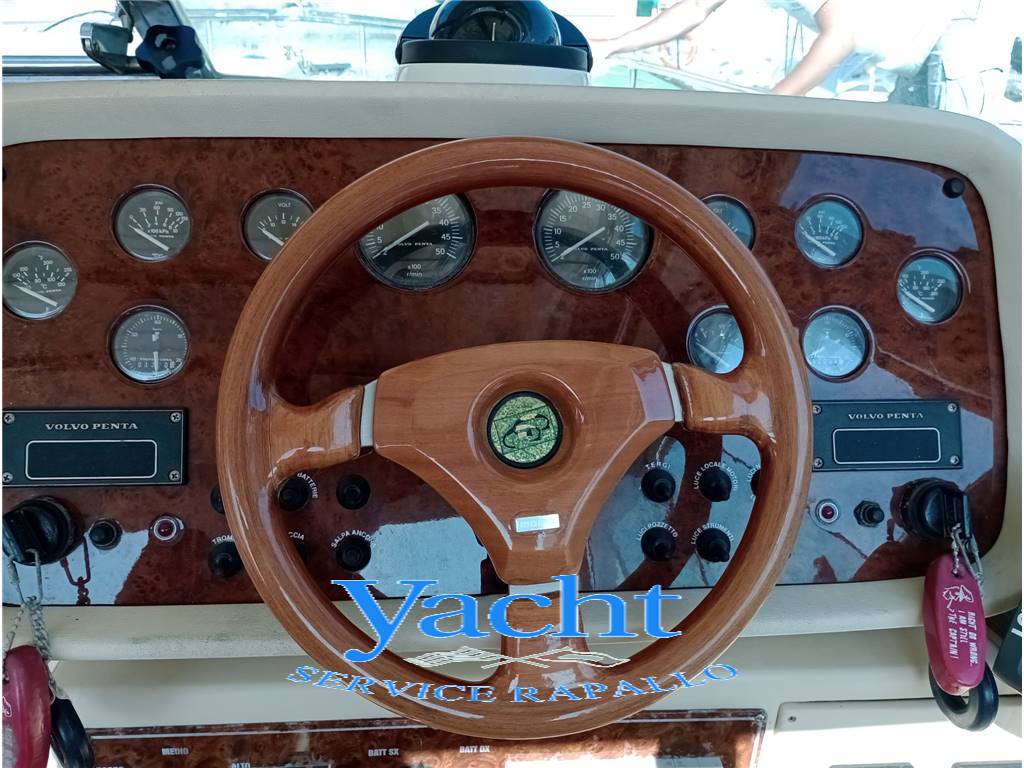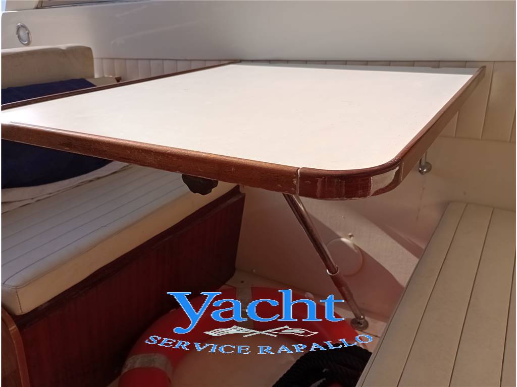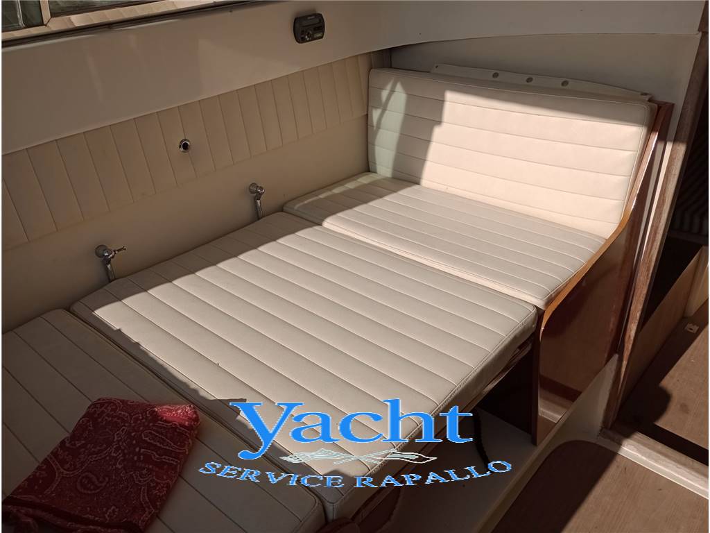 Notas de armamenton. 2 porta canne in acciaio inox – battagliola in acciaio inox - verricello salpancora a prua – autoclave – sistema pompe di sentina – n. 2 prese USB in plancia – radio stereo CD Kenwood – n. 4 autoparlanti - doccetta di poppa - apertura centro parabrezza per ricircolo aria – volante Momo e cruscotto in radica – luci pozzetto – bitte a metà barca – bottazzo inox – musone prua inox – difesa prua inox.