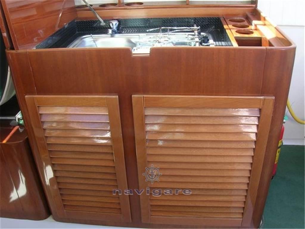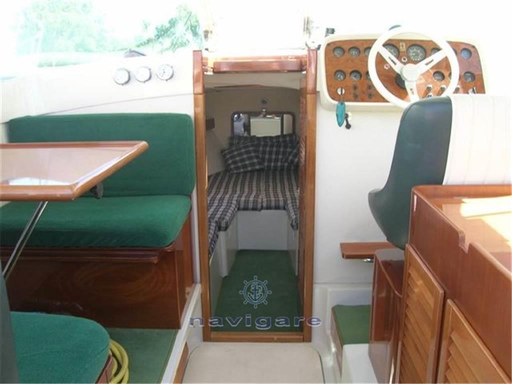 Notas internasOgni barca Colombo viene infatti realizzata secondo le più collaudate metodologie costruttive e solo con l'utilizzo di materiali rigorosamente selezionati. Dal 1956 la nostra azienda si distingue per la meticolosa cura riservata anche al più piccolo dettaglio; un’attenzione resa possibile dalla competenza e dalla consolidata esperienza del nostro personale, altamente qualificato e impegnato a realizzare ogni modello con una paziente e puntigliosa lavorazione artigianale Notas de la instrumentaciónBussola (NUOVA), Ecoscandaglio, Radio VHF.Notas de armamentoAllestimento tecnico e di coperta:Elica di rispetto (N. 2 NUOVE IN ACCIAIO INOX + N. 2 ORIGINALI REVISIONATE (E' COME SE NE AVESSE 4 NUOVE)), Flap idraulici (PORTATI A NUOVO). Cucina ed elettrodomestici: Frigorifero interno (NUOVO). Tappezzerie: Cuscineria completa (A PRUA). |