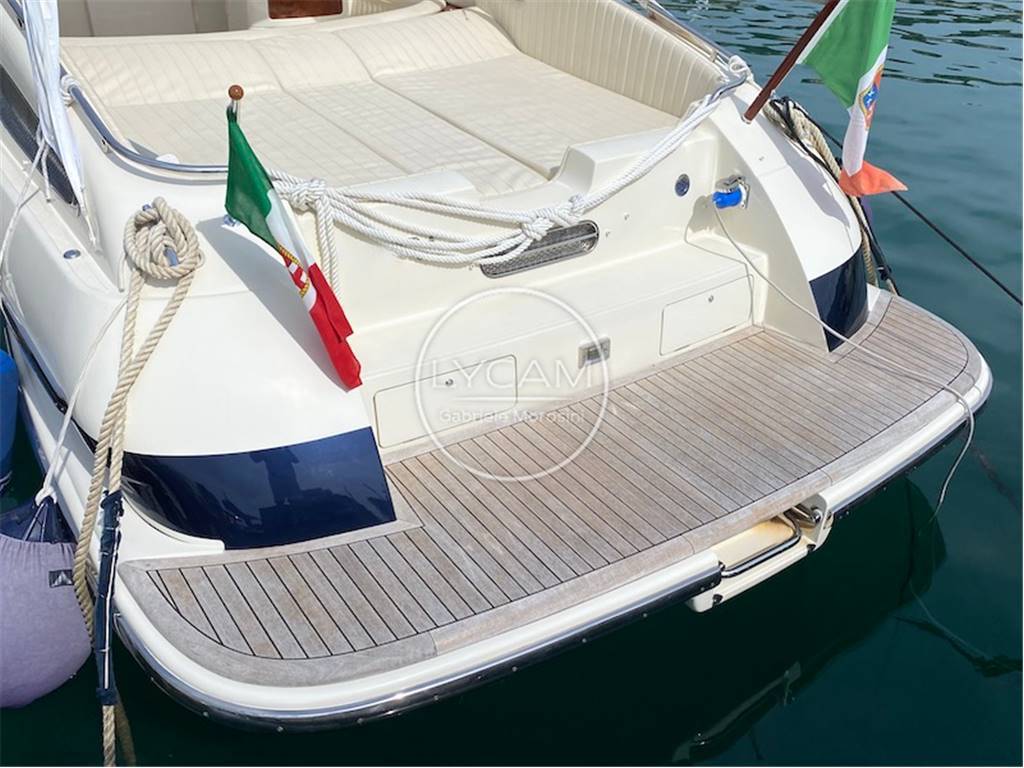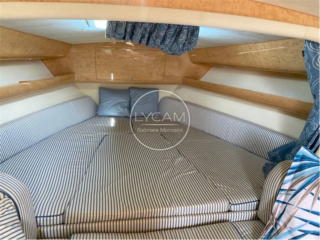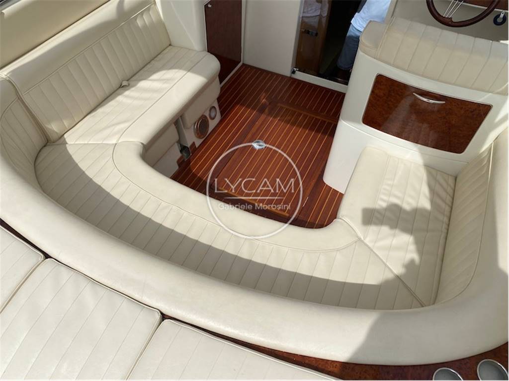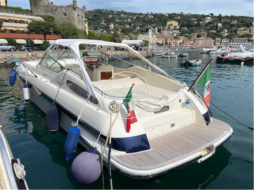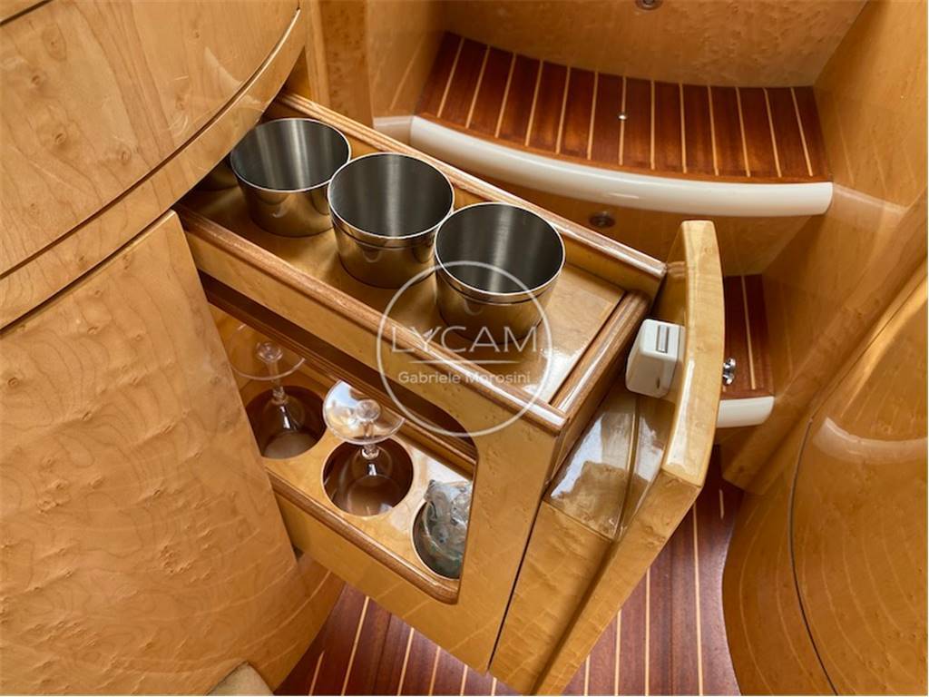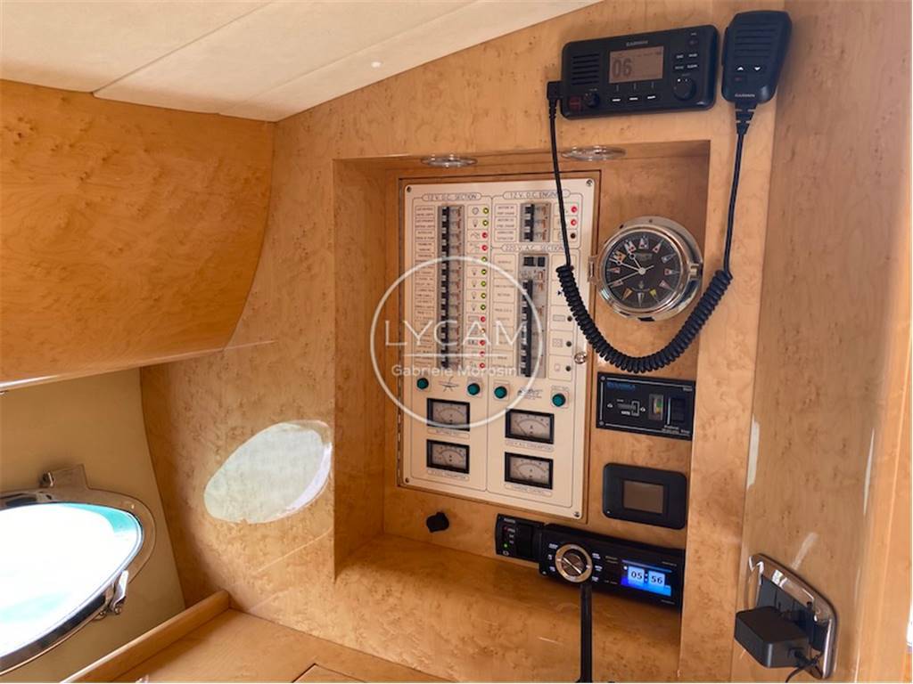 Notas de armamentoLa barca è equipaggiata di: Luci di via; Luce di fonda; Luce pozzetto; Tromba; Flaps; Batterie; Parallelo batterie; Stacca batterie; Presa a terra 220V; Caricabatterie; Generatore mod. Mini 40 3.5 Kw; Parabordi; Pozzetto in teak; Mezzomarinaio; Asta bandiera in legno; Plancetta in teak; Doccetta pozzetto; Cappa copertura barca; Scaletta bagno; Aria condizionata; Capote cabriolet; Cuscinerie prendisole prodiero e poppiero; Verricello elettrico; Battagliola di prua; Ancora inox; Pompa sentina automatica; Tavolo pozzetto in teak.