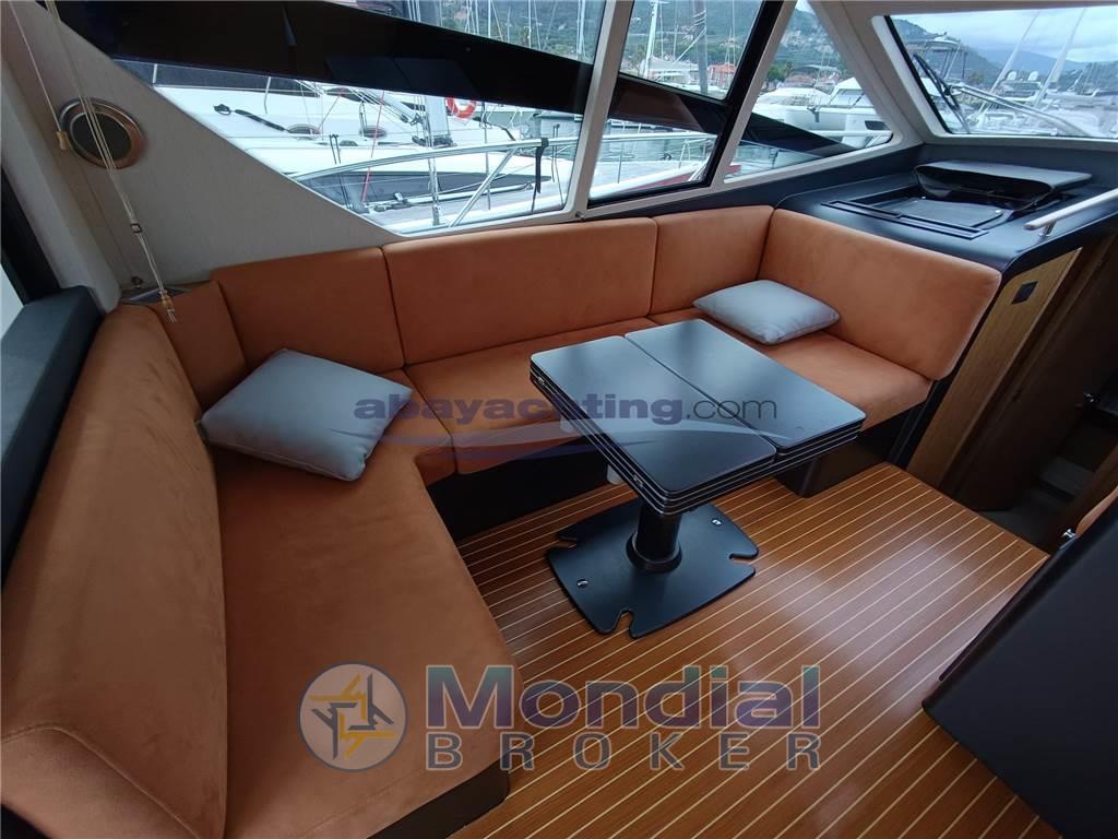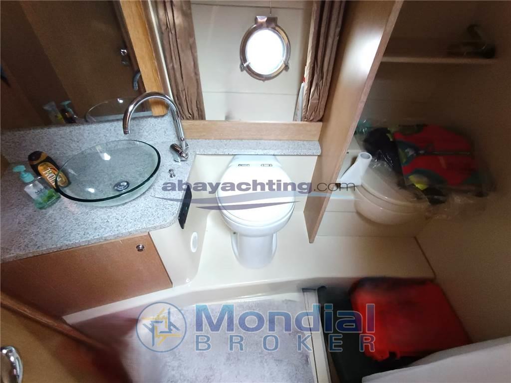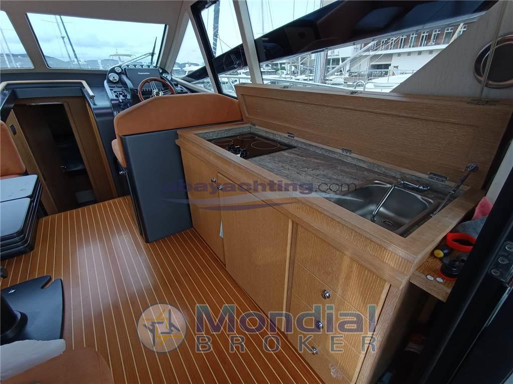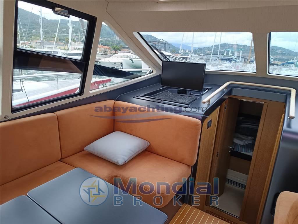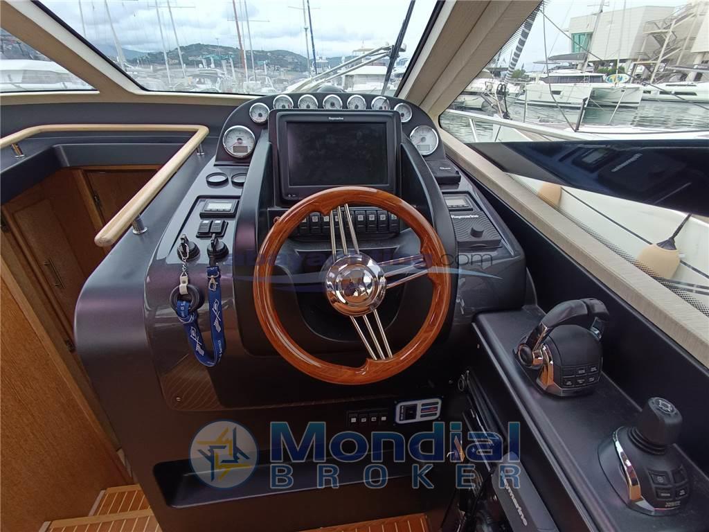 Notas internasNotas de la instrumentaciónAngolo barra, Bussola, Contametri catena, Joystick, Pilota automatico, Plotter con antenna GPS (Touch screen 12"), Radio VHF (Raymarine 50).Notas de armamentoAllestimento tecnico e di coperta:Allarme motore, Allarme sentina, Ancora (Bruce da 12 + catena 50 metri), Camminamenti laterali in teak, Colorazione speciale (Grigio), Flap elettrici, Hard top, Impianto antincendio, Luci di cortesia, Passerella (A scomparsa), Pompa di sentina automatica, Pompa di sentina manuale, Porta ingresso, Pozzetto Teak, Presa 220V banchina, Salpa Ancore Elettrico, Scaletta da bagno, Tavolo pozzetto, Tromba. Dotazioni domestiche di bordo: Aria condizionata (Hot/Cold), Impianto acque nere, Prese interne 12v, Prese interne 220v, Telecamera (Sala macchine + retro), WC marino elettrico. Intrattenimento: Altoparlanti, Antenna Satellitare TV, Stereo (Sony), TV. Cucina ed elettrodomestici: Cucina, Frigorifero interno, Piastra in vetroceramica (3 fuochi). Tappezzerie: Cuscineria di prua, Cuscineria Pozzetto, Teli chiusura T-Top, Teli copri finestra, Telo copriconsolle. |