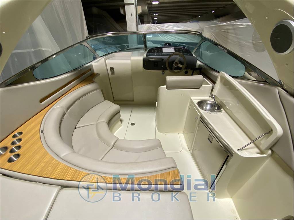 Notas internas- Letto a prua - Mobile bar con lavello - Frigorifero - Aria condizionata - Bagno separato con WC elettrico Notas de la instrumentación- Elica di prua- Flap - Bussola - GPS - Chartplotter Simrad - Ecoscandaglio - Tromba - Indicatore di velocità - Radio - Lettore CD - Lettore MP3 - Collegamento Ipod - Bluetooth - Altoparlanti in pozzetto - Luci di navigazione - Batterie - Caricabatteria - Cavo di banchina - Inverter Pompa di sentina Notas de armamento- Plancetta di poppa in teak- Rollbar - Frigorifero pozzetto - Lavello - Prendisole di poppa - Divano pozzetto - Portabicchieri - Mobile Bar - Gavoni nel pozzetto - Scaletta bagno - Bimini top - Parabordi - Doccia - Ancora - Verricello elettrico - Tientibene in acciaio inox - Cuscinerie esterne color Grigio chiaro - Cuscino prendisole di prua - Cuscinerie interne color Crema - Telo copripozzetto - Impianto antincendio nel vano motore - Estintore - Impianto di allarme - Generatore - Boiler - Sistema di lavaggio della coperta |
