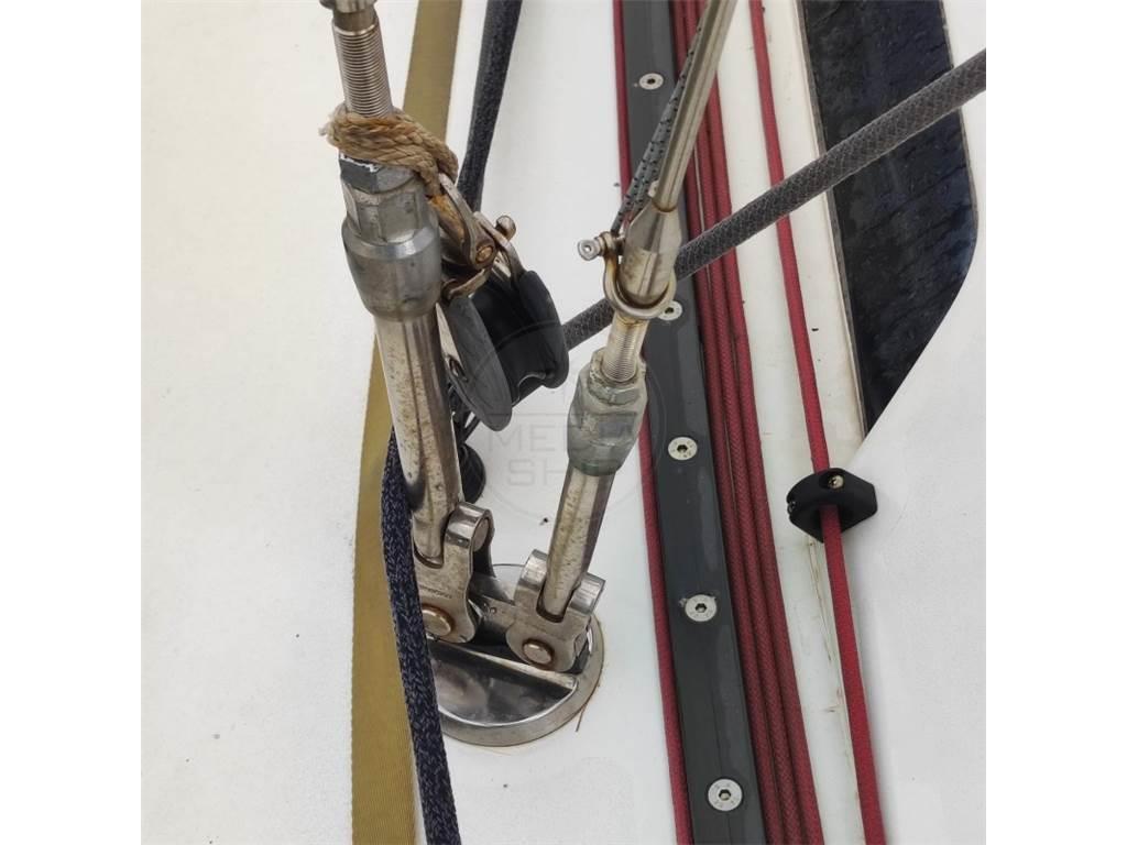 Notas internasNotas de la instrumentaciónBussola, Ecoscandaglio, GPS, Log, Pilota automatico, Radio VHF, Stazione vento.Notas de armamentoAllestimento tecnico e di coperta:Ancora, Passerella, Pompa di sentina elettrica, Scaletta da bagno, Winch. Cucina ed elettrodomestici: Fornello (Gas), Forno, Frigorifero interno (Electric). Tappezzerie: Bimini. Vele: Randa, Spinnaker, Genoa. |
