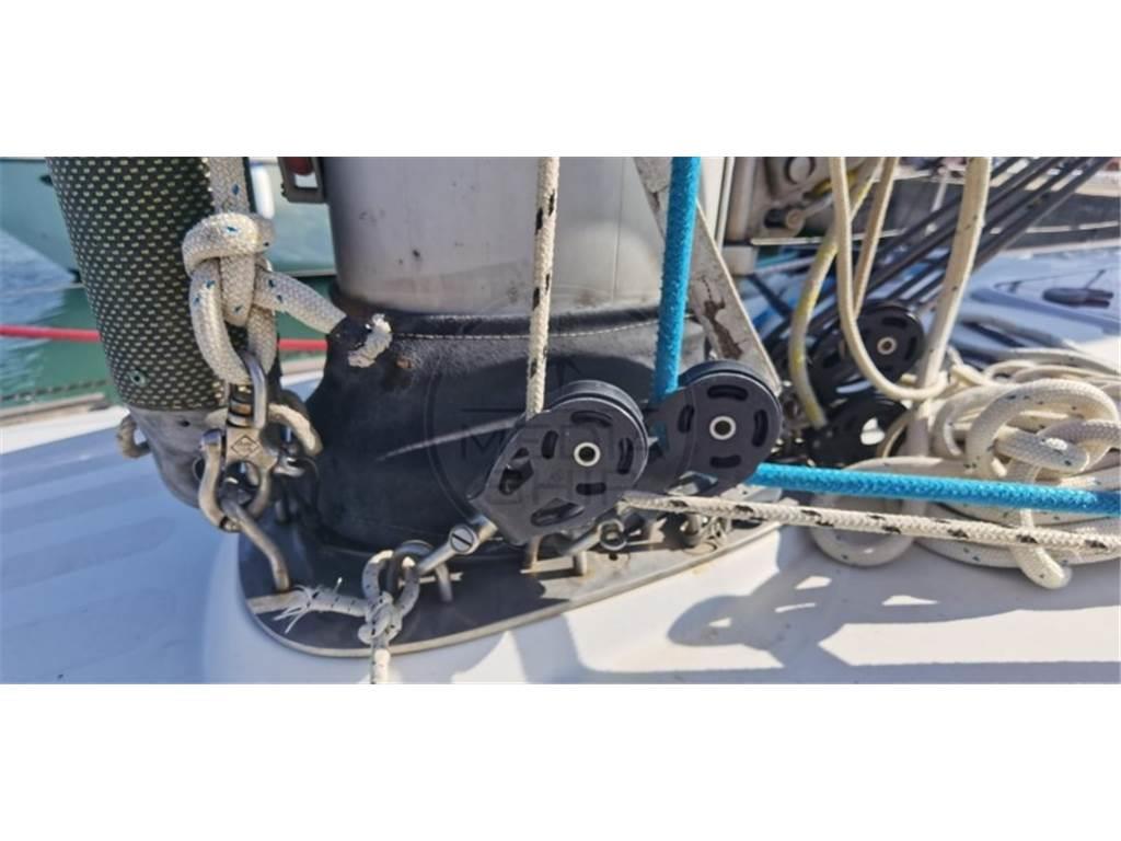 Notas internasNotas de la instrumentaciónBussola, Ecoscandaglio, GPS, Log, Pilota automatico, Radio VHF, Stazione vento.Notas de armamentoAllestimento tecnico e di coperta:Ancora, Pompa di sentina elettrica, Scaletta da bagno, Winch. Intrattenimento: DVD. Cucina ed elettrodomestici: Fornello (Gas), Forno, Frigorifero interno (Electric). Vele: Randa, Spinnaker, Tormentina, Fiocco, Genoa, Avvolgi Fiocco. |