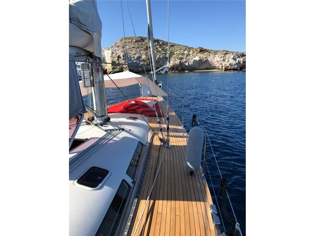 Notas internasNotas de la instrumentaciónBussola, Ecoscandaglio, GPS, Log, Pilota automatico, Radar, Radio VHF, Stazione vento.Notas de armamentoAllestimento tecnico e di coperta:Ancora, Elica di prua - bow thruster, Gruette per tender, Passerella, Pompa di sentina elettrica, Scaletta da bagno, Tavolo pozzetto, Winch Elettrico (Electric). Dotazioni domestiche di bordo: Riscaldamento. Dotazioni di sicurezza: E.P.I.R.B.. Intrattenimento: TV. Cucina ed elettrodomestici: Congelatore, Fornello (Gas), Forno, Frigorifero interno (Electric). Tappezzerie: Cappottina. Vele: Randa, Spinnaker, Genoa. |