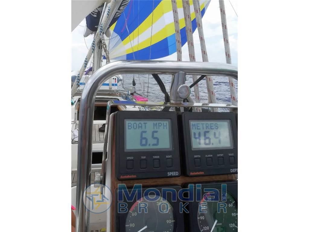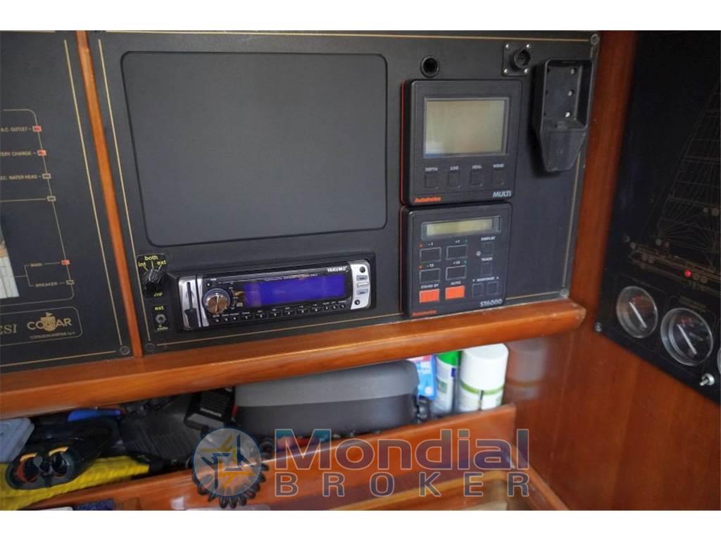 Notas internasStereo: Yakumo Docce: 3: (n. 3) Wc: 2: (n. 2 (1 elettrico prua)) Cabine doppie: 0: (Sfalsata sovrapposta a poppa dx) Cabine: 3: (n. 3 (materassi nuovi 2021)) Cabine matrimoniali: 2: (n.2 ) Cucina: n. 3 Fuochi gas Forno a microonde Forno: a gas Frigorifero: 2: (n. 2 Frigoboat raffreddati acqua) Notas de la instrumentaciónPilota automatico: Autohelm St 6000 interfacciato Bussola: si Ecoscandaglio: Autohelm St 50 GPS: Raymarine Log: Autohelm St 50 Plotter: Raymarine A 65 (carteggio+Tim.) Strumenti meteo: barometro Strumenti vento: Autohelm St 50 + VMG Vhf: Shipmate Rs 8100 doppio attacco Notas de armamentoElica: 0: (Asse) Estintori: 0 Giubbotti di salvataggio: 4: (si (4 automatici+5 normali)) Riscaldamento: elettrico con comando remoto Sapla ancora: Simpson Lawrence 1000 W Winch: 6: (n. 6 Winches manuali S.T.) Avvolgitore genoa: Nemo Fiocco: 90% Avvolgibile Lazy jack: + bag Mps: Gennaker con calza Randa: Steccata 60 metri quadri Vang rigido: Bamar |