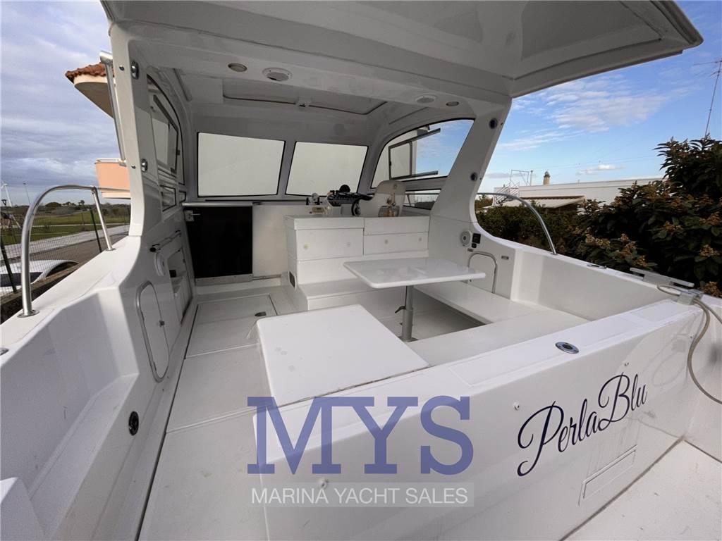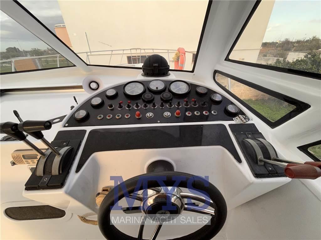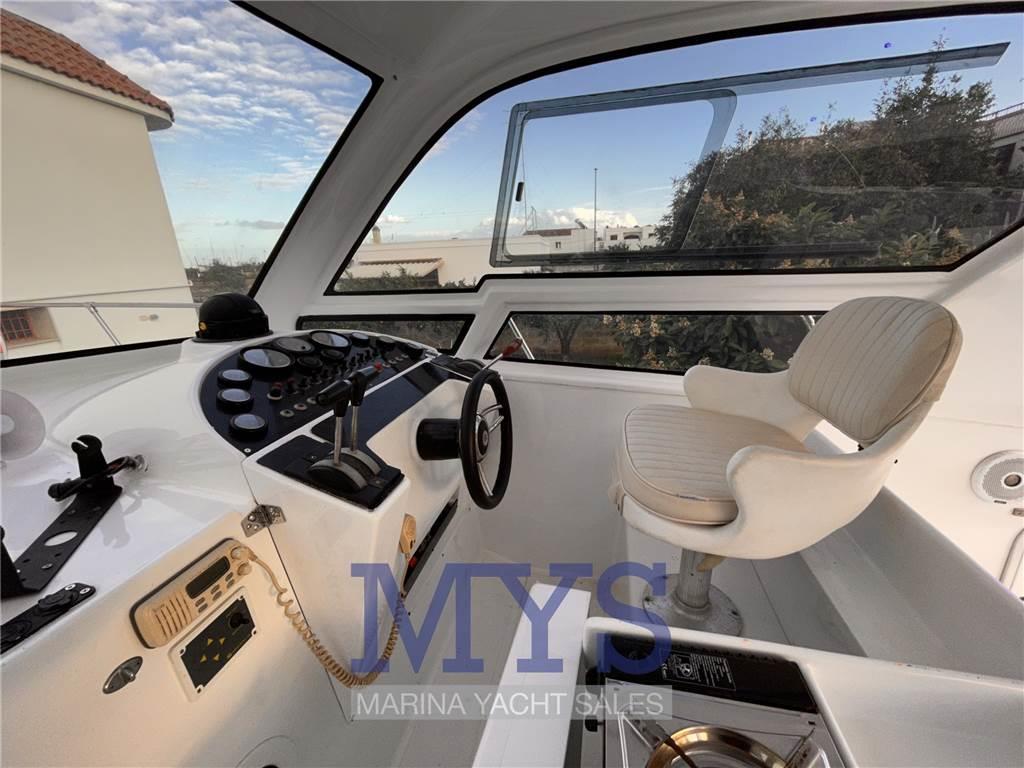 Notas internasCabina con letto matrimoniale a prua Dinette con tavolo abbattibile e cucina completa Bagno dotato di wc elettrico, lavello e doccia Cabina di poppa con 2 letti singoli unibili Notas de la instrumentaciónBussolaGPS Ecoscandaglio Flaps idraulici VHF Salpancora Elettrico Presa 220V da banchina Inverter Caricabatterie 4 Batterie Altoparlanti Stereo Faro orientabile Luci subacquee Frigorifero esterno Frigorifero interno Autoclave Boiler per l'acqua calda Notas de armamentoCopripozzettoCuscineria completa NUOVA 2023 Cuscineria di prua Cuscineria Pozzetto Doccia esterna Hard top Scaletta da bagno Tavolo pozzetto |