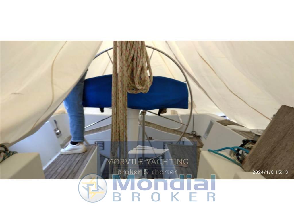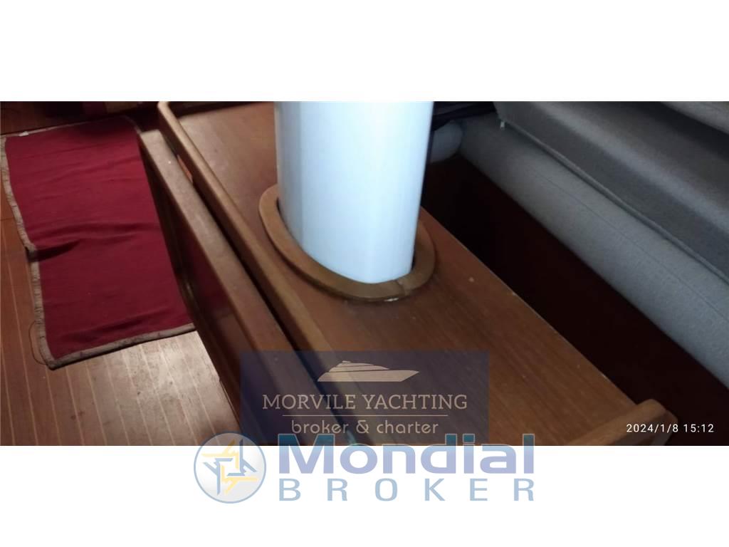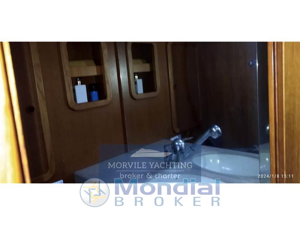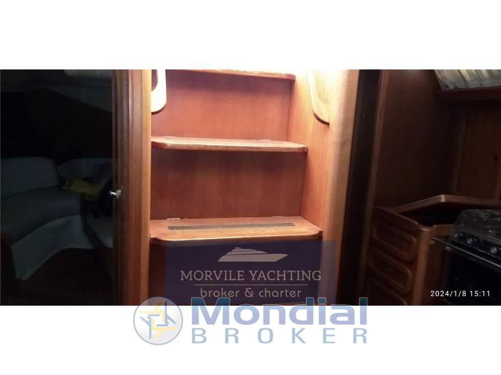Notas internasCabine: 2 Toilette: 2 Notas de la instrumentaciónImpianto elettronico- Ecoscandaglio - Log-contamiglia - Stazione vento - Plotter - Pilota automatico - Radio - Bussola - Lettore CD - GPS - VHF Notas de armamentoEquipaggiamenti interni- Pompa di sentina elettrica - Forno - Pompa di sentina manuale - WC marino - Acqua calda - Frigorifero - Caricabatterie 3 Dotazioni Esterne - Pozzetto in teak - Doccia pozzetto - Tender: + MOTORE FB - Scaletta bagno Attrezzatura/Dotazioni - Timone Vele - Randa avvolgibile - Genoa avvolgibile Coperture/Tendalini - Spray Hood - Tendalino pozzetto: BIMINI + TELO COPERTURA POZZETTO Equipaggiamenti Elettrici - Presa corrente a terra |