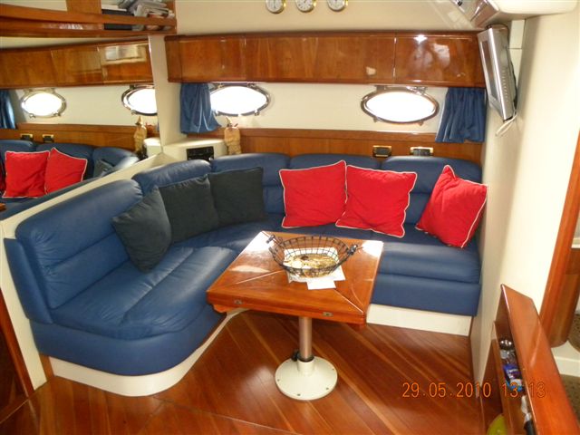 Notas internas2 BAÑOS 1 CABINA DE MARINERO Las condiciones son excelente, este barco Interior cereza y sofás de cuero. Amplia doble cabina de proa con baño y ducha separada, dos dobles cabinas invitado popa servidas por un segundo baño, gran comedor con sofá y mesa. Ãrea de cocina en el centro de la embarcación con cocina, nevera, horno, fregadero. Cabina de marinero en la proa con entrada y servicios independientes. Notas de la instrumentaciónGPSPILOTO AUTOMÃTICO RADAR VHF CARGADOR Notas de armamentoLIGERA + FUERABORDAAIRE ACONDICIONADO GENERADOR |