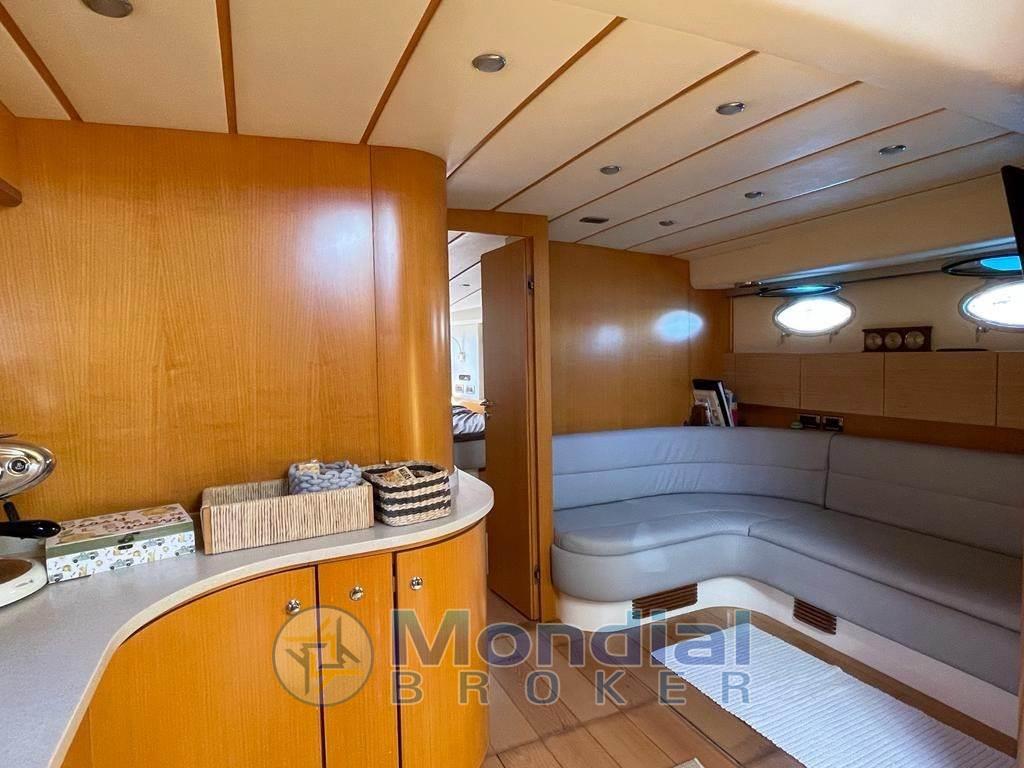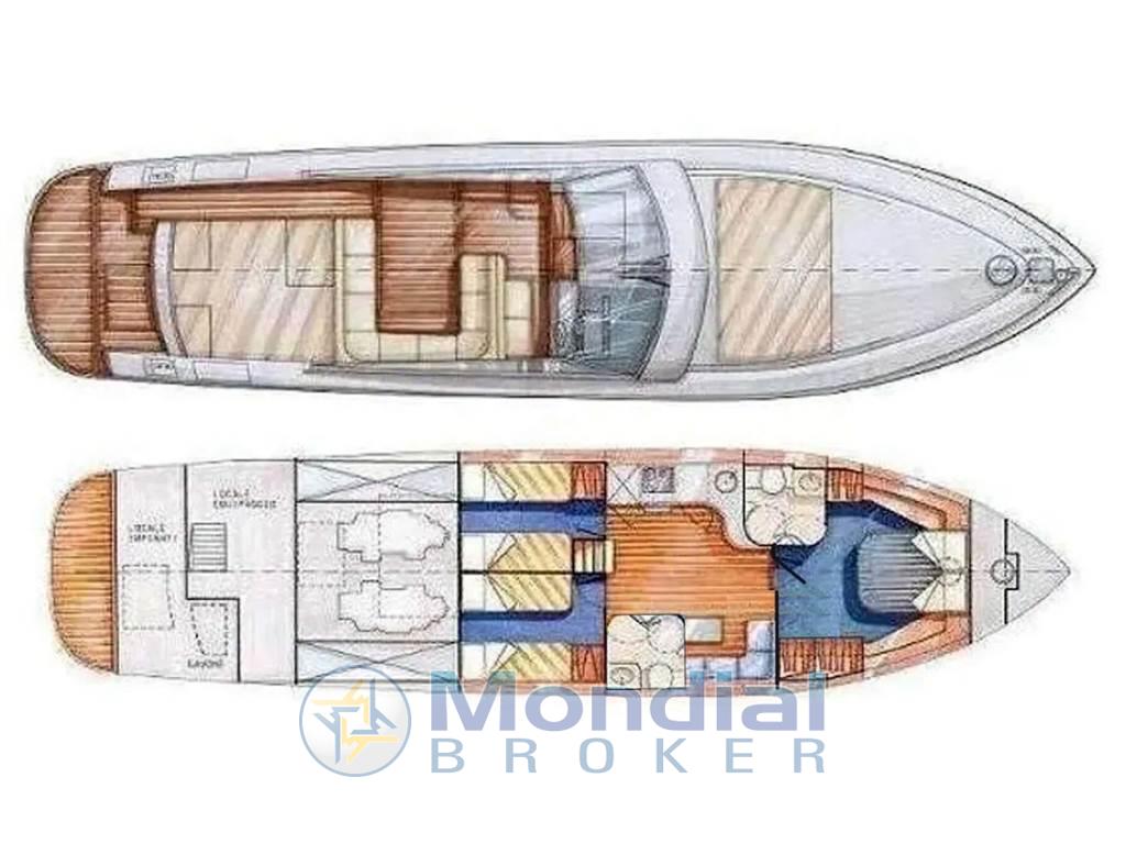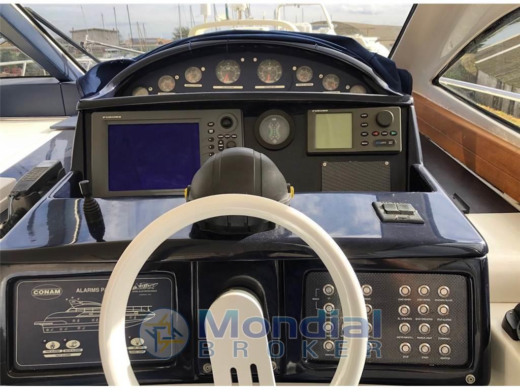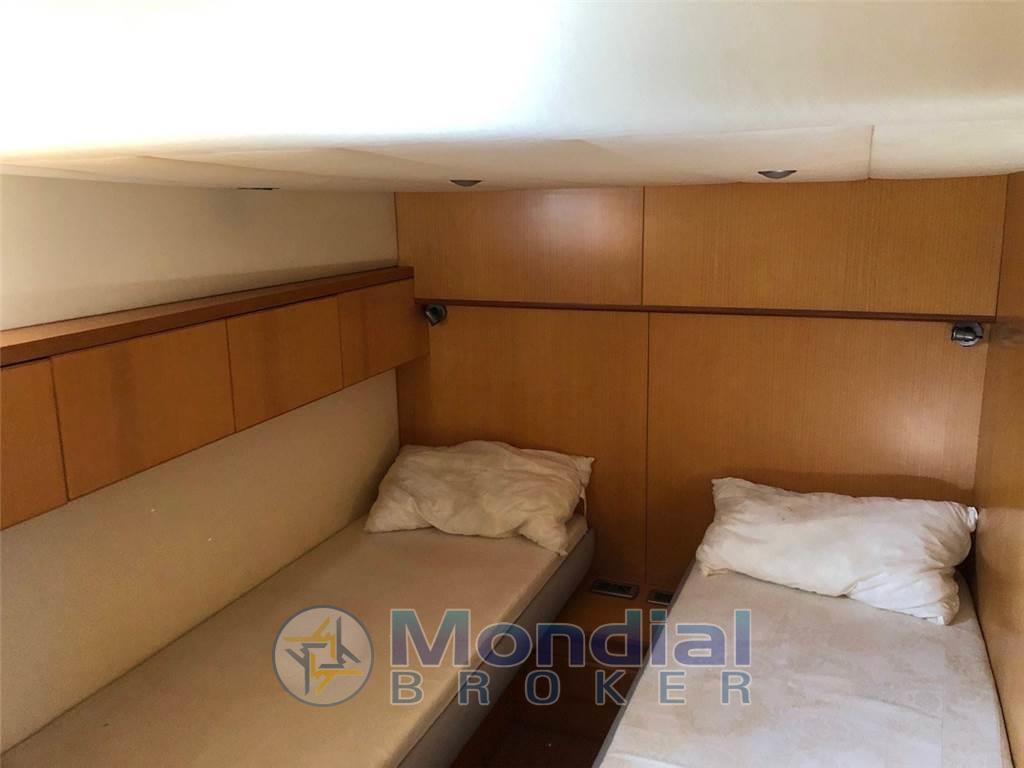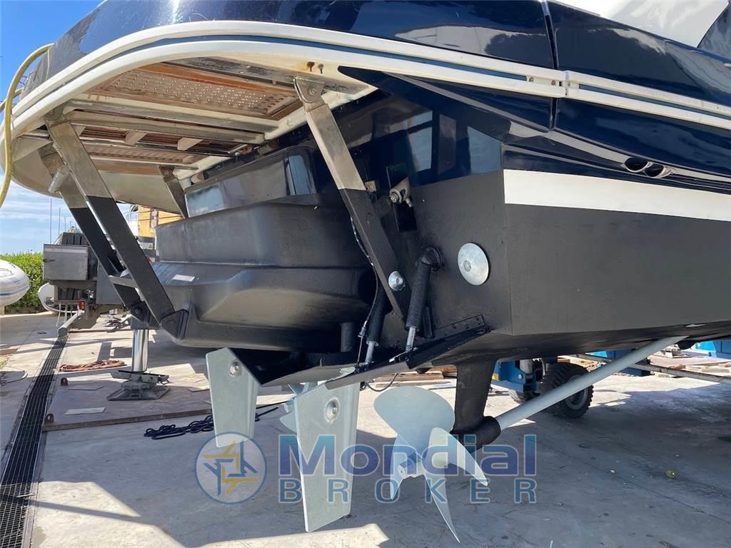 Notas internasAlloggio equipaggio singolo con bagno. Notas de la instrumentaciónGPS/Plotter Furuno - ecoscandaglio Furuno - radar Furuno - pilota automatico Furuno - VHF Furuno.Notas de armamentoAria condizionata Climma caldo/freddo - gruppo elettrogeno Kohler 9 kW - pedana di poppa tender lift - tender con fuoribordo - hard top apribile - elica di prua elettrica - antenna TV - TV LCD - passerella elettro idraulica a scomparsa - frigo freezer - piano cottura elettrico. |
