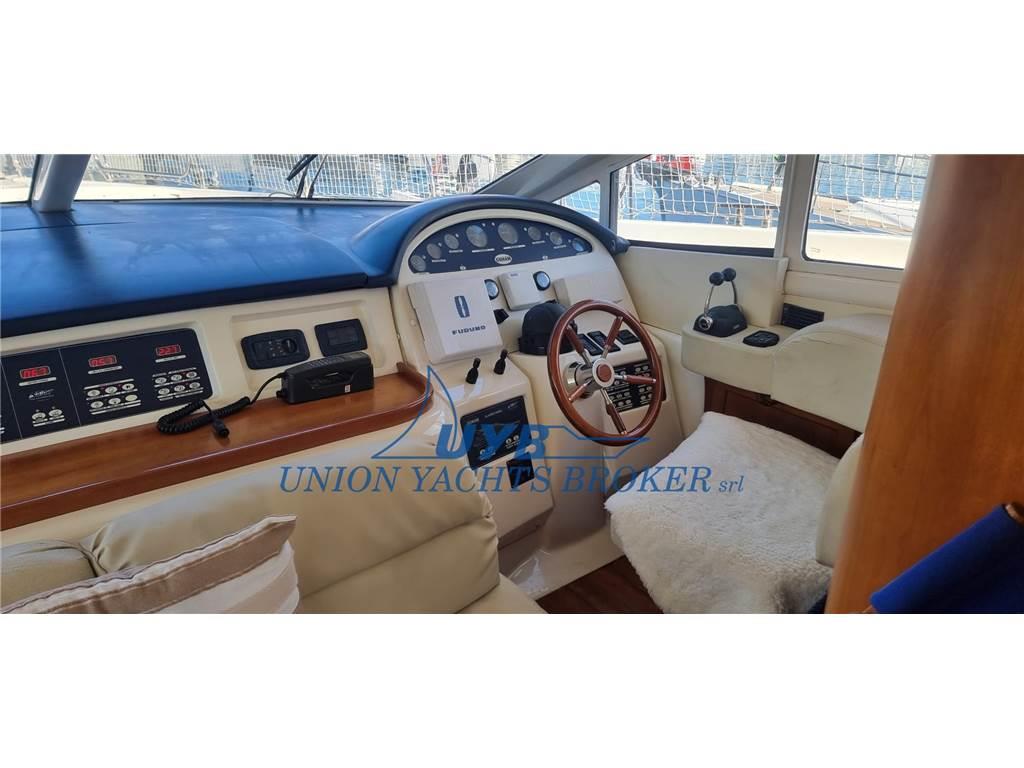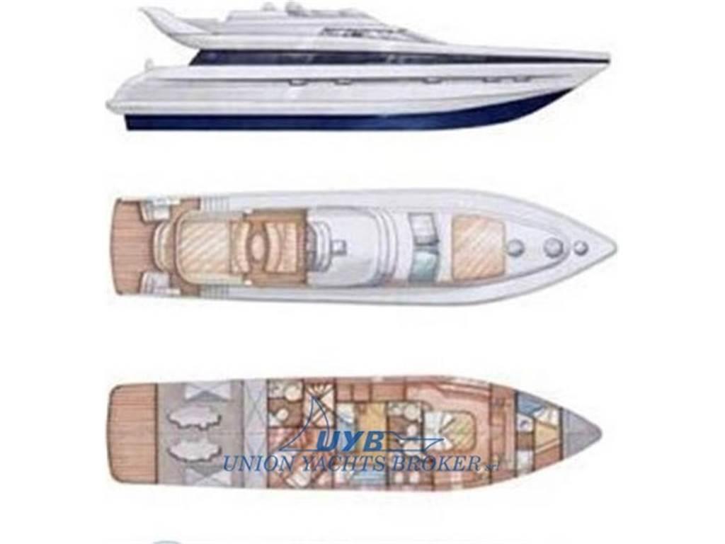 Notas internas- 1 Doppia in piano - 1 Doppia letti incrociati - 1 Cabina equipaggio - 3 Toilette - 1 Cucina - 1 Salone - 1 Toilette Equipaggio Notas de la instrumentación- Allarme motore- Allarme sentina - Ancora - Angolo barra - Antenna radar - Apertura Vano Motore Elettrica - Autoclave - Batterie - Bussola - Caricabatterie - Comando motori elettronico - Contamiglia - Display - Doccia esterna - Doppia timoneria - Ecoscandaglio - Elica di poppa - stern thruster - Elica di prua - bow thruster - Faro orientabile - Flap idraulici - Indicatori Flaps - Invaso (per tender) - Lavaggio catena - Log - Luci di cortesia - Passerella (idraulica) - Piattaforma (strutturale in teak) - Pilota automatico (Furuno) - Plotter con antenna GPS (Furuno) - Pompa di sentina automatica - Pompa di sentina elettrica - Porta ingresso - Pozzetto Teak - Presa 220V banchina - Presa acqua banchina - Radar (Furuno) - Radio VHF (Furuno) - Salpa Ancore Elettrico - Scaletta da bagno - Tavolo pozzetto - Tromba - Winch tonneggio di poppa Notas de armamento- Altoparlanti- Bimini - Boiler - Cassaforte - Clima reversibile - Congelatore - Cucina - Cuscineria completa - Cuscineria di prua - Cuscineria fly - Cuscineria Pozzetto - Forno - Frigorifero esterno - Frigorifero interno - Impianto acque nere - Impianto TV - Inverter (Mastervolt) - Lavatrice - Pavimento interno in legno - Piastra in vetroceramica - Prese interne 12v - Prese interne 220v - Radio AM/FM - Serbatoio Acque Nere - Teli copri finestra - Telo Copertura Fly - TV - WC marino elettrico - Zanzariere |