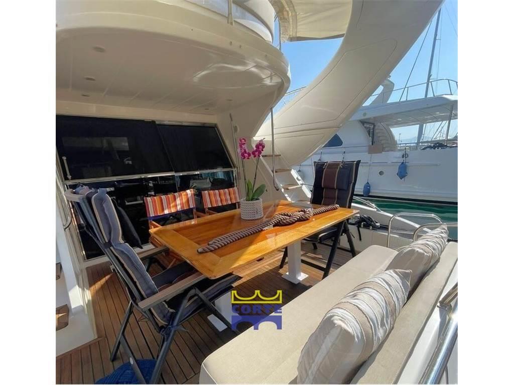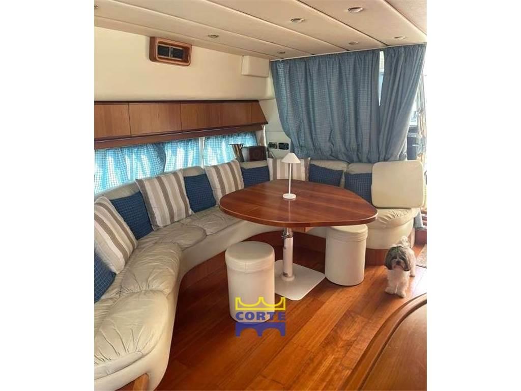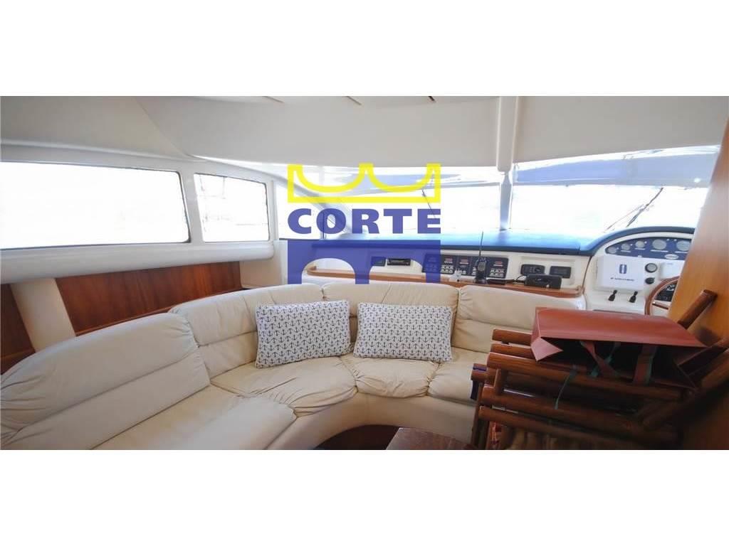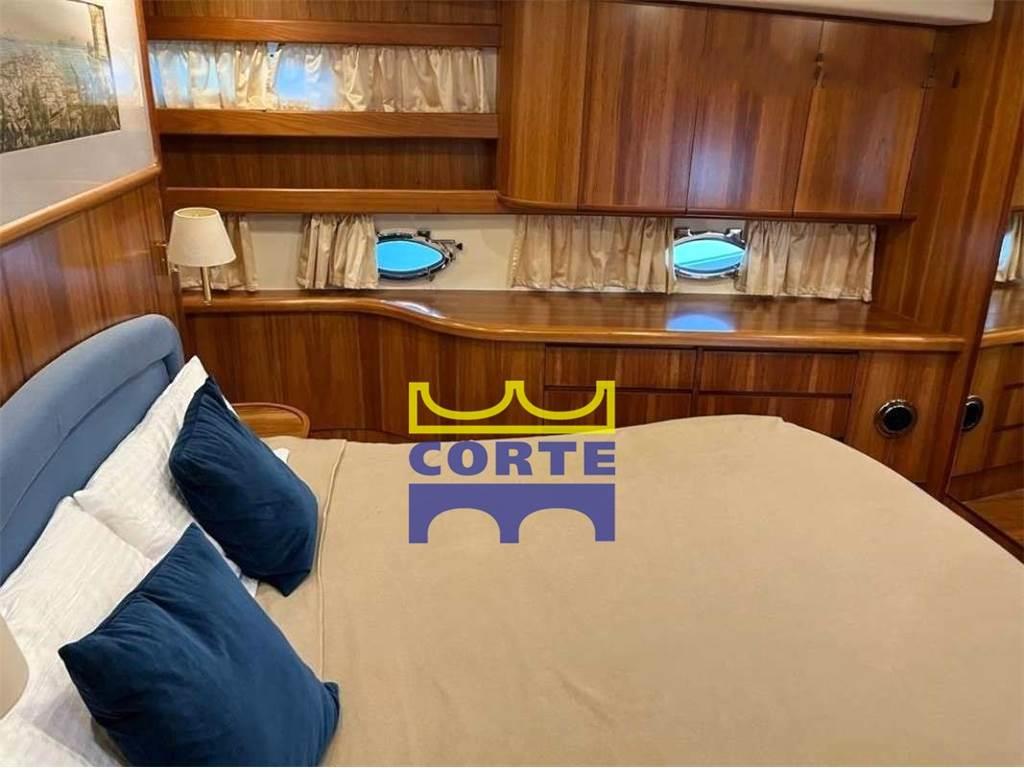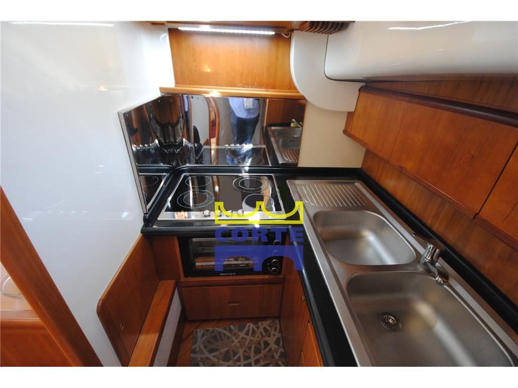 Notas de armamentoAltoparlanti, BBQ/ Grill (fly), Bimini (fly), Boiler (elettrico scambiatore), Cappottina, Clima reversibile, Congelatore, Cucina, Cuscineria completa, Digitale Terrestre, Forno, Frigorifero esterno (fly), Frigorifero interno, Impianto TV, Inverter (recente), Lavatrice, Pavimento interno in legno, Piastra in vetroceramica, Prese interne 12v, Prese interne 220v, Stereo, Telo copriconsolle, Telo coprisedile, TV, WC marino elettrico, prese a mare e tenute assi recenti