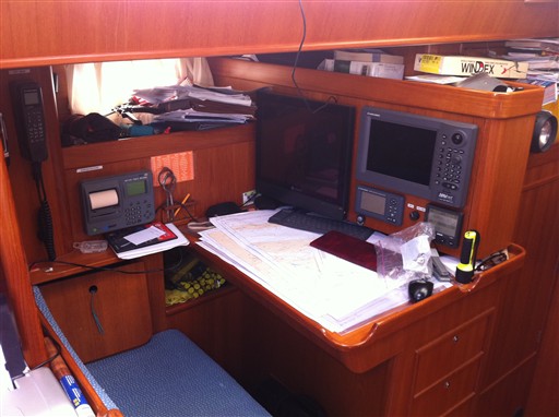 Notas de la instrumentación2 Winch (eléctrica) (AFT), el radar antena, Autoclave, brújula, sidedecks, cargadores (2009), color especial (casco azul), ordenador de a bordo (fijo de PC de 2007), ducha exterior, profundidad sounder, Proa hélice-bowtruster (12 V/10 HP), GPS, pasarela, piloto automático, trazador (2007), bomba de sentina automático, bomba de achique eléctrica, cabina de teca, Radar, VHF Radio, MolineteOferta de estación (B & G) del viento escalera de baño, (2008 + FB 8 HP motor)
