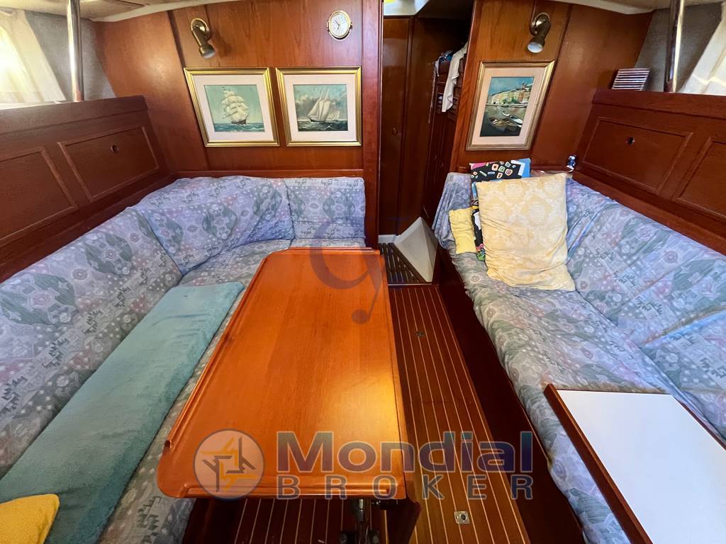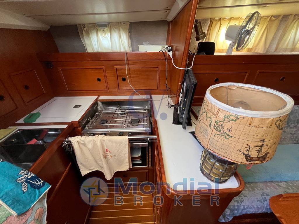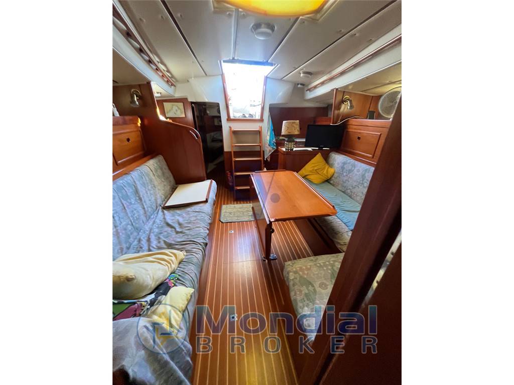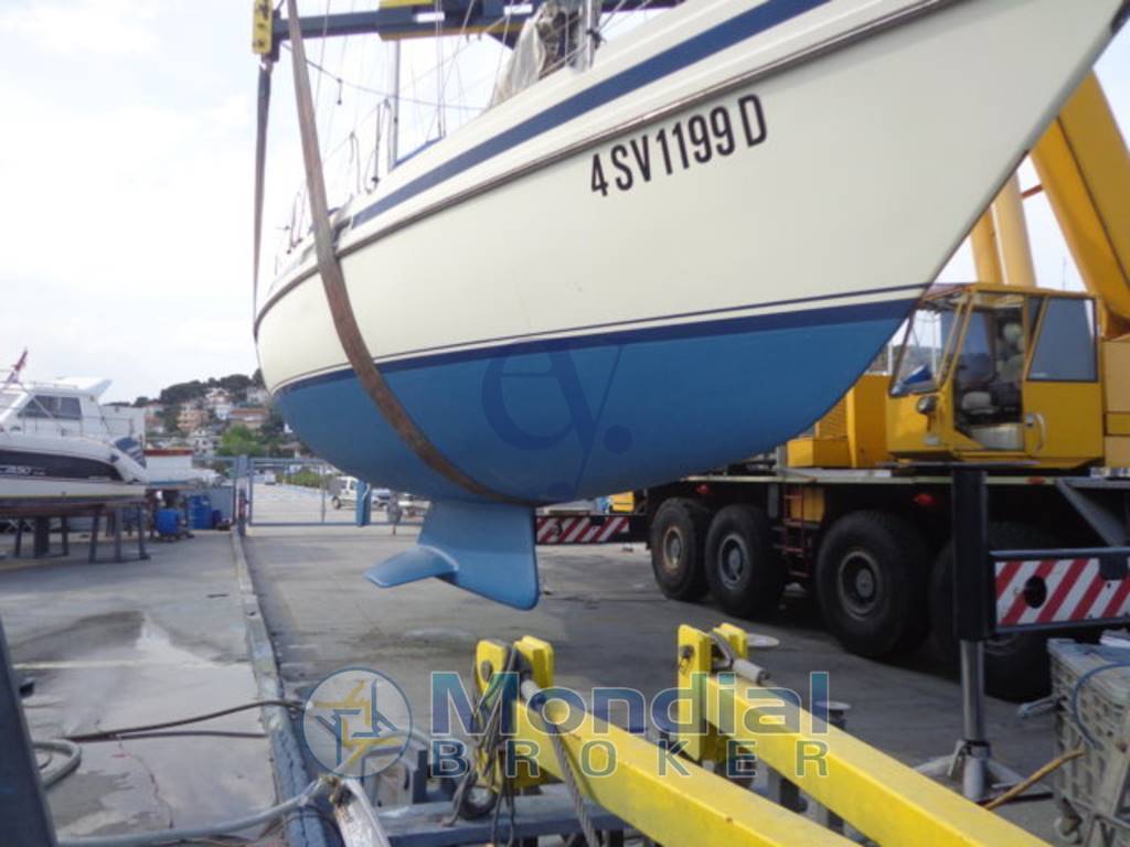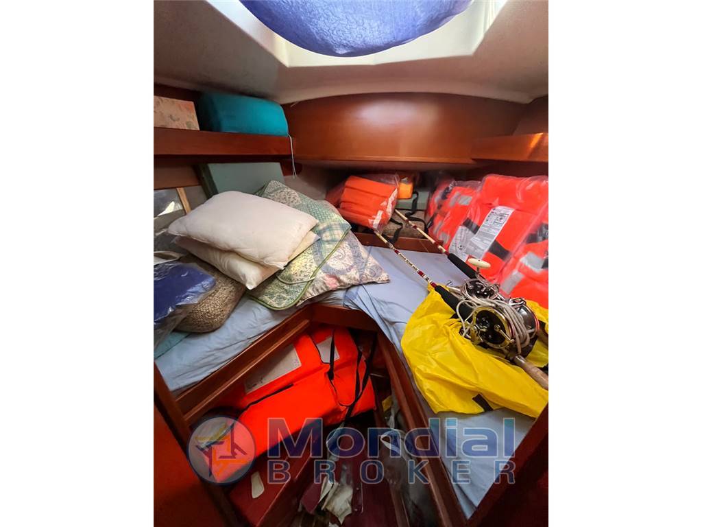 Notas internasInterni in mogano Cabina armatore a poppa con letto matrimoniale a parete. Cabina ospiti a prua con letto a V ( trasformabile in matrimoniale ), bagno con wc e box doccia separato. Dinette con divano a L e divano lineare contrapposto, trasformabili in due posti letto ed ampio tavolo da sala. Corridoio di accesso cabina armatore con tavolo da carteggio ed ingresso sala macchine. Piano cottura a tre fuochi e forno a gas ( basculante ) - frigorifero a pozzetto - lavello a due vasche. Notas de la instrumentaciónLog, lot, windspeed – Autopilota -GPS - radio con CD player e stereo - Timone a ruota - Bussola - Winch ancora elettrico.Notas de armamentoPresa banchina –- carica batterie - Batterie - Boiler - Autoclave - sprayhood – scaletta da bagno - Cuscineria interna originale -Vele: Randa - Fiocco - N°2 winch |