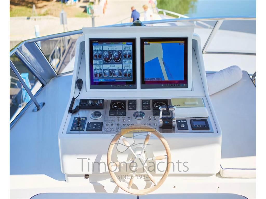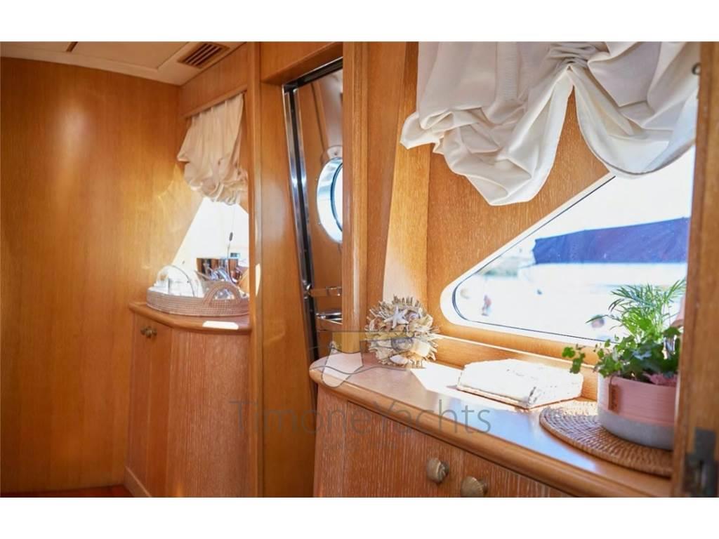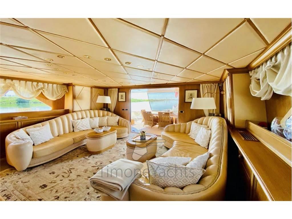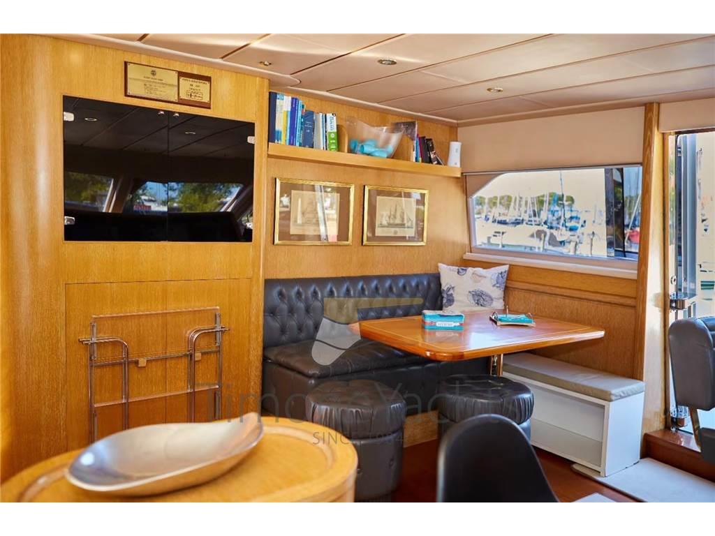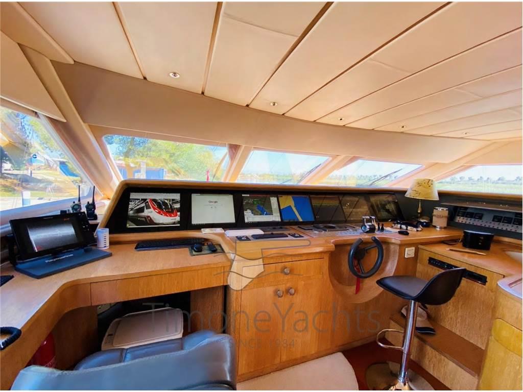 Notas internasNotas de la instrumentaciónAIS, 3 Comando motori elettronico, Contametri catena, DSC vhf, Ecoscandaglio, GPS, Pilota automatico, Plotter, Radar.Notas de armamentoAllestimento tecnico e di coperta:Camminamenti laterali in teak, Doccia esterna, Elica di poppa - stern thruster, Elica di prua - bow thruster, Faro orientabile, Flap idraulici, Impianto antincendio, Indicatori Flaps, Lavaggio catena, Luci di cortesia, Passerella, 2 Porta laterale, Pozzetto Teak, Presa 220V banchina, Presa acqua banchina, Selle per Tender, Sistema Depurazione acque nere, Tavolo pozzetto, Tender (Novurania 5mt + 40hp Mercury outboard), Tromba, 2 Winch tonneggio di poppa, Winch tonneggio di prua. Dotazioni domestiche di bordo: Aria condizionata, BBQ/ Grill, Clima reversibile, Controllo Domotica, Dimmer per Luci, Impianto acque nere, Prese interne 12v, Prese interne 220v, Serbatoio Acque Nere, 4 WC marino elettrico (+ crew). Intrattenimento: Altoparlanti, Antenna Satellitare TV, Decoder satellite, Digitale Terrestre, DVD, Home Theater, Impianto TV, Radio AM/FM, TV. Cucina ed elettrodomestici: Congelatore, Forno, Frigorifero esterno, Frigorifero interno, Ghiacciaia, ICE Maker, Lavasciuga, Lavastoviglie. Tappezzerie: Bimini, Cappottina, Cuscineria completa, Cuscineria di poppa, Cuscineria di prua, Cuscineria fly, Cuscineria Pozzetto, Oscuranti, Tendalino. |