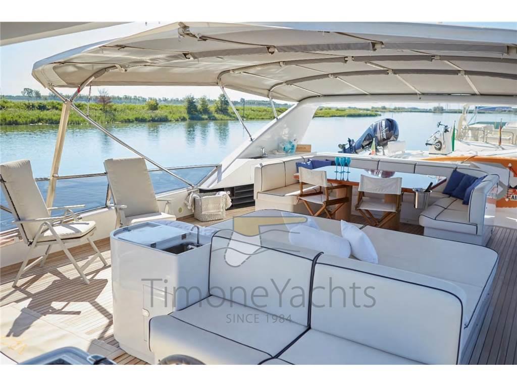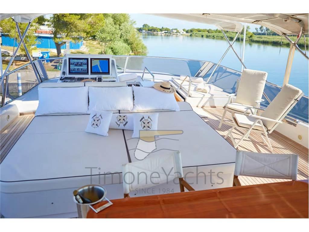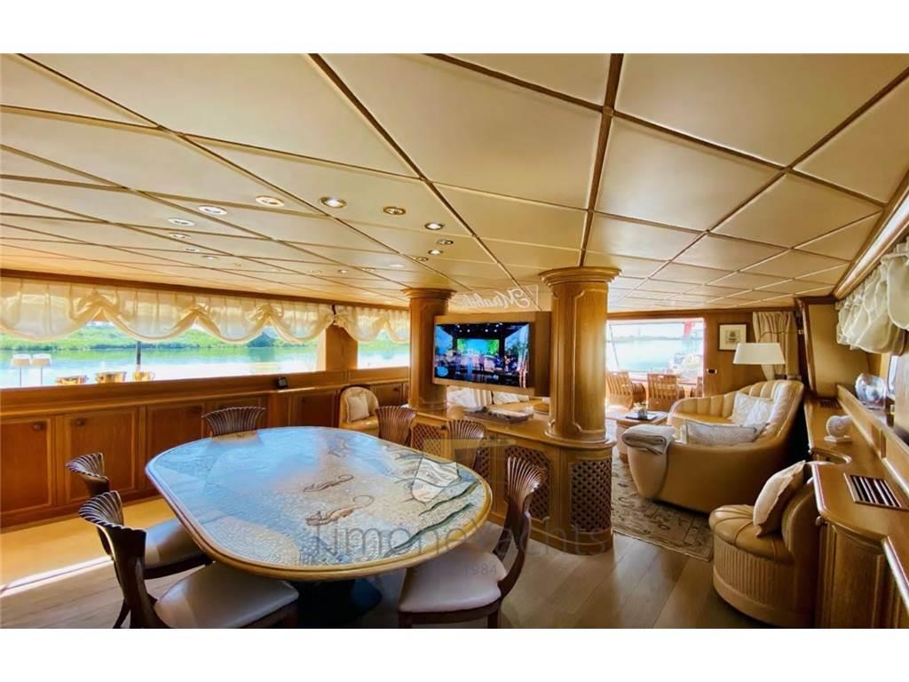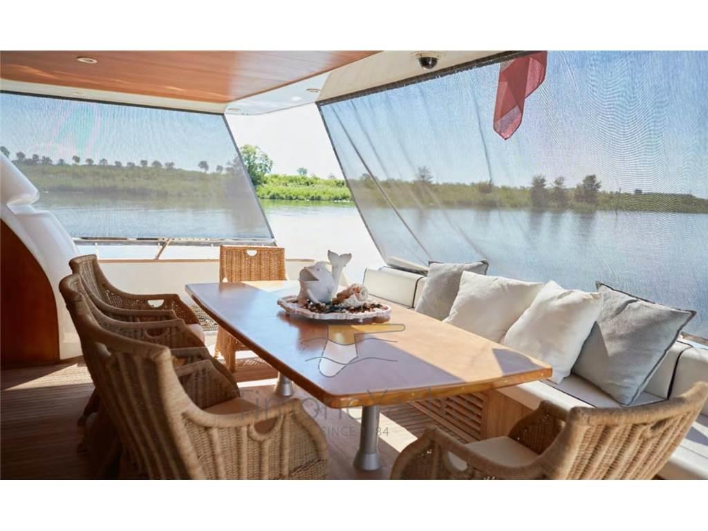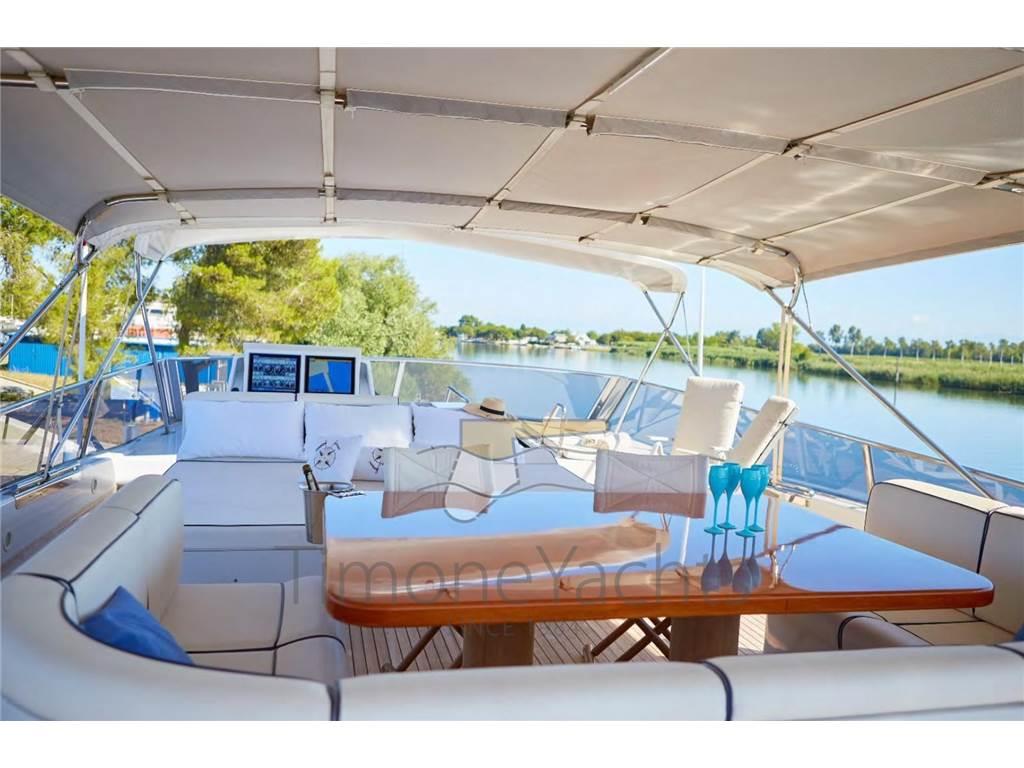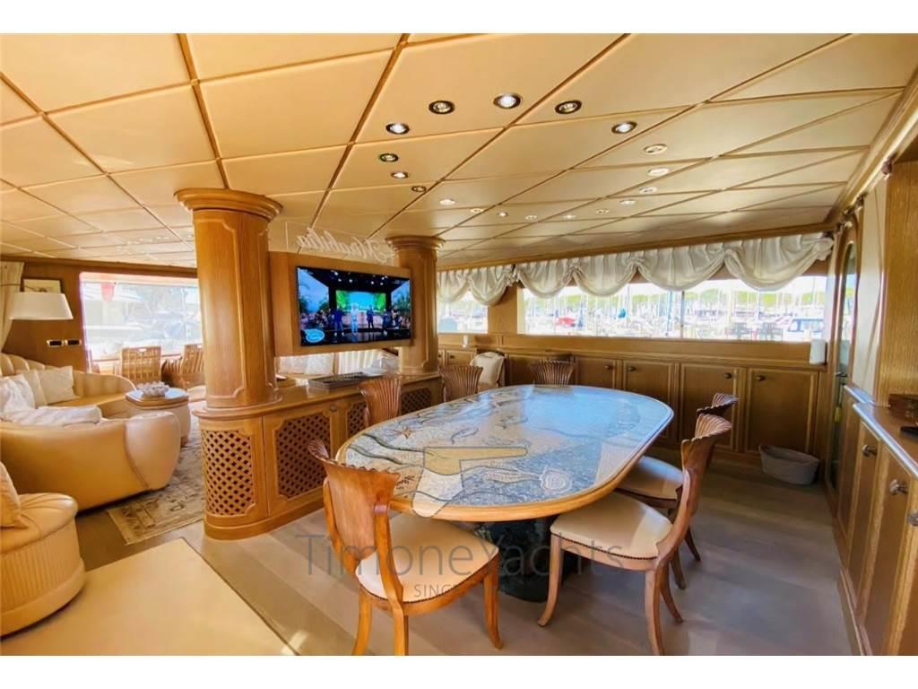 Notas internasNotas de la instrumentaciónAIS, 3 Comando motori elettronico, Contametri catena, DSC vhf, Ecoscandaglio, GPS, Pilota automatico, Plotter, Radar.Notas de armamentoAllestimento tecnico e di coperta:Camminamenti laterali in teak, Doccia esterna, Elica di poppa - stern thruster, Elica di prua - bow thruster, Faro orientabile, Flap idraulici, Impianto antincendio, Indicatori Flaps, Lavaggio catena, Luci di cortesia, Passerella, 2 Porta laterale, Pozzetto Teak, Presa 220V banchina, Presa acqua banchina, Selle per Tender, Sistema Depurazione acque nere, Tavolo pozzetto, Tender (Novurania 5mt + 40hp Mercury outboard), Tromba, 2 Winch tonneggio di poppa, Winch tonneggio di prua. Dotazioni domestiche di bordo: Aria condizionata, BBQ/ Grill, Clima reversibile, Controllo Domotica, Dimmer per Luci, Impianto acque nere, Prese interne 12v, Prese interne 220v, Serbatoio Acque Nere, 4 WC marino elettrico (+ crew). Intrattenimento: Altoparlanti, Antenna Satellitare TV, Decoder satellite, Digitale Terrestre, DVD, Home Theater, Impianto TV, Radio AM/FM, TV. Cucina ed elettrodomestici: Congelatore, Forno, Frigorifero esterno, Frigorifero interno, Ghiacciaia, ICE Maker, Lavasciuga, Lavastoviglie. Tappezzerie: Bimini, Cappottina, Cuscineria completa, Cuscineria di poppa, Cuscineria di prua, Cuscineria fly, Cuscineria Pozzetto, Oscuranti, Tendalino. |