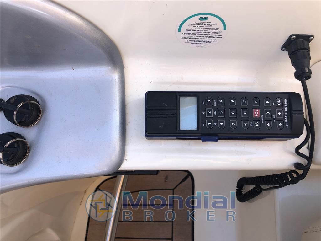 Notas internasNotas de la instrumentaciónGPS/Plotter Raymarine C120 Axiom Touch - pilota automatico Raymarine - VHF Shipmate - ecoscandaglio Raymarine.Notas de armamentoAria condizionata - elica di prua - passerella idraulica - generatore Kohler 7,5 kw - cuscineria prendisole completa - tendalino - angolo cottura con piastra in vetroceramica - forno a microonde - impianto tv - impianto stereo - mobile esterno con piastro in vetroceramica e frigo - scaletta bagno - garage per tender. |