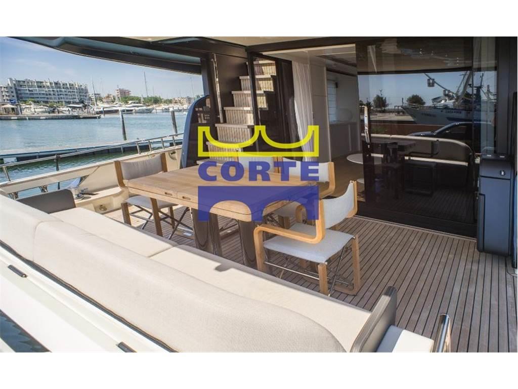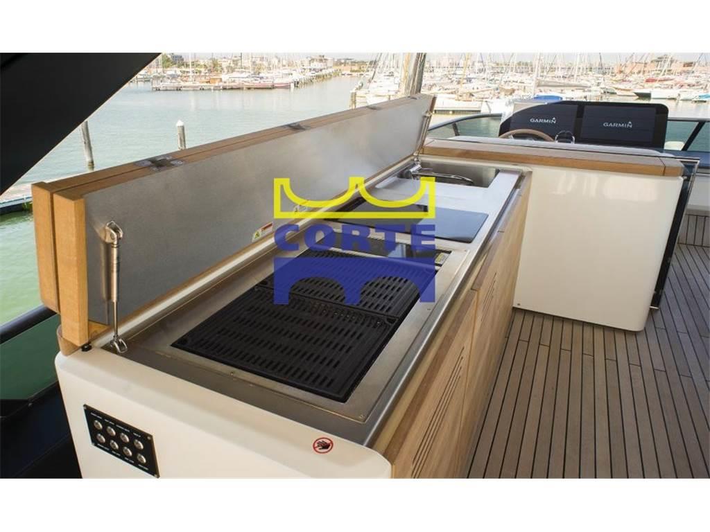 Notas internasAmpio salone con divano a L, tavolino fumo, mobile contenitore, TV a scomparda. Zona pranzo con tavole e sedie. Cucina attrezzata con piano in vetroceramica Miele, lavastoviglie, lavello in inox, forno Samsung e frigo americano. Cabina armatoriale matrimoniale con bagno. Cabina VIP con bagno Cabina ospiti con letto matrimoniale Cabina ospiti con letti in piano N° 2 bagni ospiti Fly bridge con ampio salotto e zona prendisole. Ampio pozzetto con divantetto, tavolo allungabile e sedie. Plancetta di poppa spaziosa. Garage ampio con meccanismo elettrico per il tender. Postazione di comando separata con un piccolo salottino. Camminamenti laterali, fly e plancetta di poppa in teak. Notas de la instrumentaciónAIS, Allarme fumo/gas, Allarme motore, Allarme sentina, Ancora, Angolo barra, Antenna radar, Auto Dynamic Trim Interceptor, Autoclave, Autogonfiabile, Auto-Trim, 14 Batterie, Bussola, Camminamenti laterali in teak, Canvas Wing, Caricabatterie (Mastervolt), Comando motori elettronico, Computer di bordo, Contametri catena, Display, Doccia esterna, Doppia timoneria, Ecoscandaglio (Simrad), Elica di prua - bow thruster, Faro orientabile, Flap elettrici, Garage per tender, GPS (Simrad), Hard top, Impianto antincendio, Impianto Aria Compressa, Indicatori Flaps, Joystick, Lavaggio catena, Lavandino nel Pozzetto, Log, Luci di cortesia, Luci subacquee, Passerella, Piattaforma, Pilota automatico (Simrad), Plotter, Plotter con antenna GPS (Simrad), Pompa di sentina automatica, Pompa di sentina elettrica, Porta ingresso, Porta laterale, Pozzetto Teak, Presa 220V banchina, Presa acqua banchina, Radar, Raddrizzatore, Radio VHF, Ripetitore strumentazione, Rollbar, Salpa Ancore Elettrico, Scaletta da bagno, Sedile Copilota, Sistema di posizionamento dinamico, Sonar, SSB, Stabilizzatori (sistema Humpree), Stazione vento, Tavolo pozzetto, Tromba, T-Top, Tuga in teak, Winch Elettrico, 2 Winch tonneggio di poppa, Winch tonneggio di pruaNotas de armamentoAltoparlanti, Antenna Satellitare TV, Aria condizionata, Asciugatrice, Barometro, BBQ/ Grill (sul fly), Binocolo, Boetta fumogena, Boiler (elettrico), Carte nautiche, Cassaforte, Cassetta di pronto soccorso, Clima reversibile, Collegamento internet, Congelatore, Controllo Domotica, Cucina, Cuscineria completa, Cuscineria di poppa, Cuscineria di prua, Cuscineria fly, Cuscineria Pozzetto, Decoder satellite, Digitale Terrestre, Dimmer per Luci, Dissalatore (Idromar 130 l/h), Dotazioni di sicurezza oltre 50 miglia, DVD, E.P.I.R.B., Forno (Samsung), Frigorifero esterno, Frigorifero interno (americano), Fuochi a mano a luce rossa, Giubbetti di salvataggio, Home Theater, 2 ICE Maker, Impianto acque nere, Impianto TV, Inverter, Lavasciuga, Lavastoviglie, Lavatrice, Macchina caffè, 2 Meccanismo saliscendi per TV (salone e fly), Microonde, Oscuranti, Pavimento interno in legno, Piastra in vetroceramica, Prese interne 12v, Radio AM/FM, Razzi a paracadute a luce rossa, Ricevitore satellitare, Riscaldamento, Salvagente anulare con cima munita di boetta luminosa, Serbatoio Acque Nere, Stereo, Telecamera, Telo copriconsolle, Telo coprisedile, Tenda Elettrica (interna), 6 TV, 5 WC marino elettrico, Winecooler, Zattera di salvataggio |