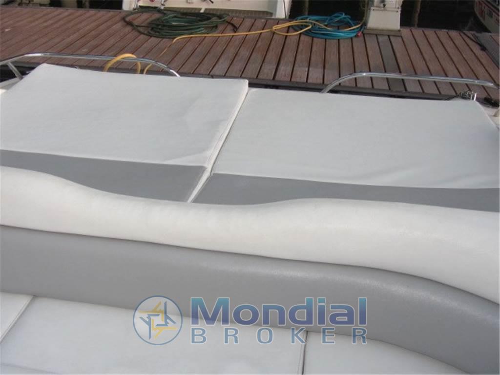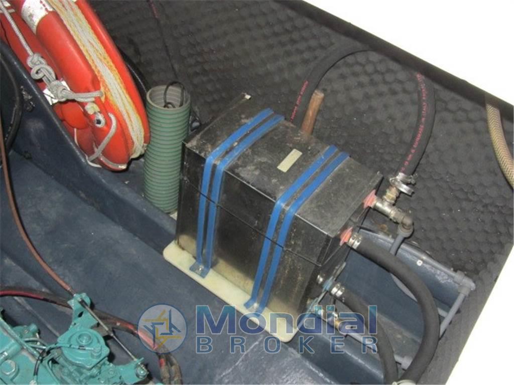Notas internasNotas de la instrumentaciónBussola, Contamiglia, Ecoscandaglio, GPS, Radio VHF.Notas de armamentoAllestimento tecnico e di coperta:Allarme motore, Autogonfiabile, Doccia esterna, Flap idraulici, Impianto antincendio, Indicatori Flaps, Luci di cortesia, Piattaforma, Pompa di sentina automatica, Pompa di sentina manuale, Presa 220V banchina, Presa acqua banchina, Raddrizzatore, Salpa Ancore Elettrico, Scaletta da bagno, Tavolo pozzetto, Tromba. Dotazioni domestiche di bordo: Prese interne 12v, Prese interne 220v, WC marino elettrico. Dotazioni di sicurezza: Giubbetti di salvataggio. Intrattenimento: Altoparlanti, Radio AM/FM, Stereo. Cucina ed elettrodomestici: Cucina, Fornello, Frigorifero interno (42 lt). Tappezzerie: Cappottina, Cuscineria completa, Cuscineria di poppa, Cuscineria di prua, Cuscineria Pozzetto, Tendalino. |
