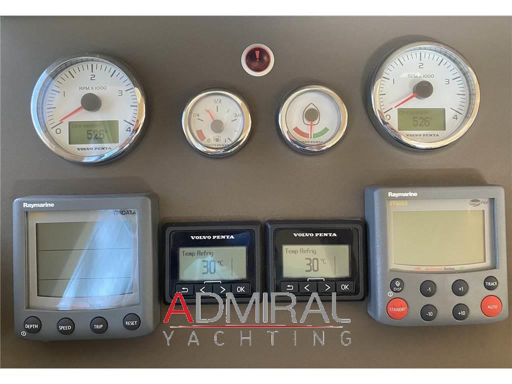 Notas de la instrumentaciónAngolo barra, Antenna radar, Bussola, Comando motori elettronico, Computer di bordo, Ecoscandaglio, GPS, Joystick, Log, Pilota automatico, Plotter con antenna GPS, Radar, Radio VHF, Ripetitore strumentazione