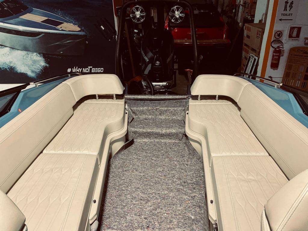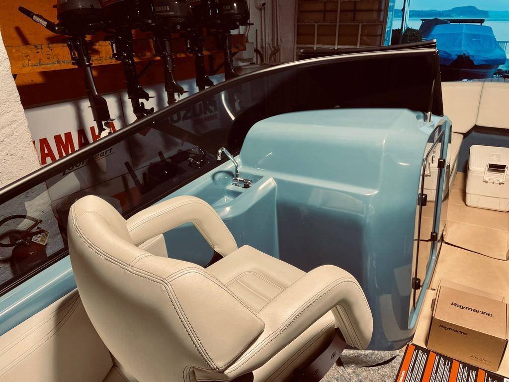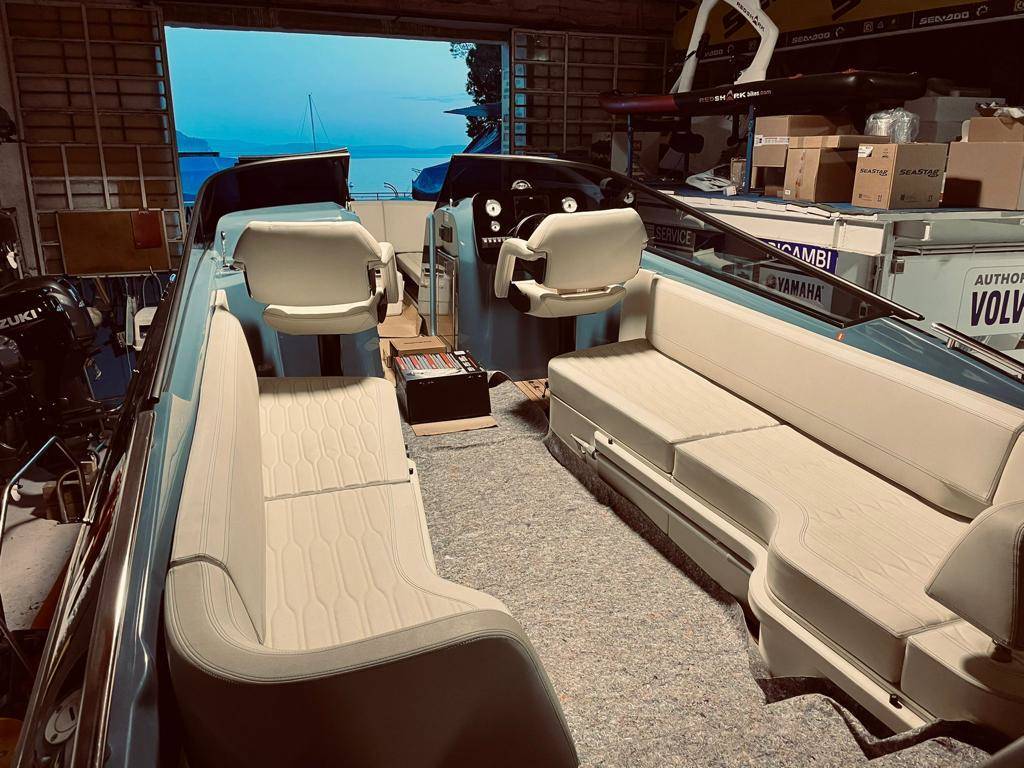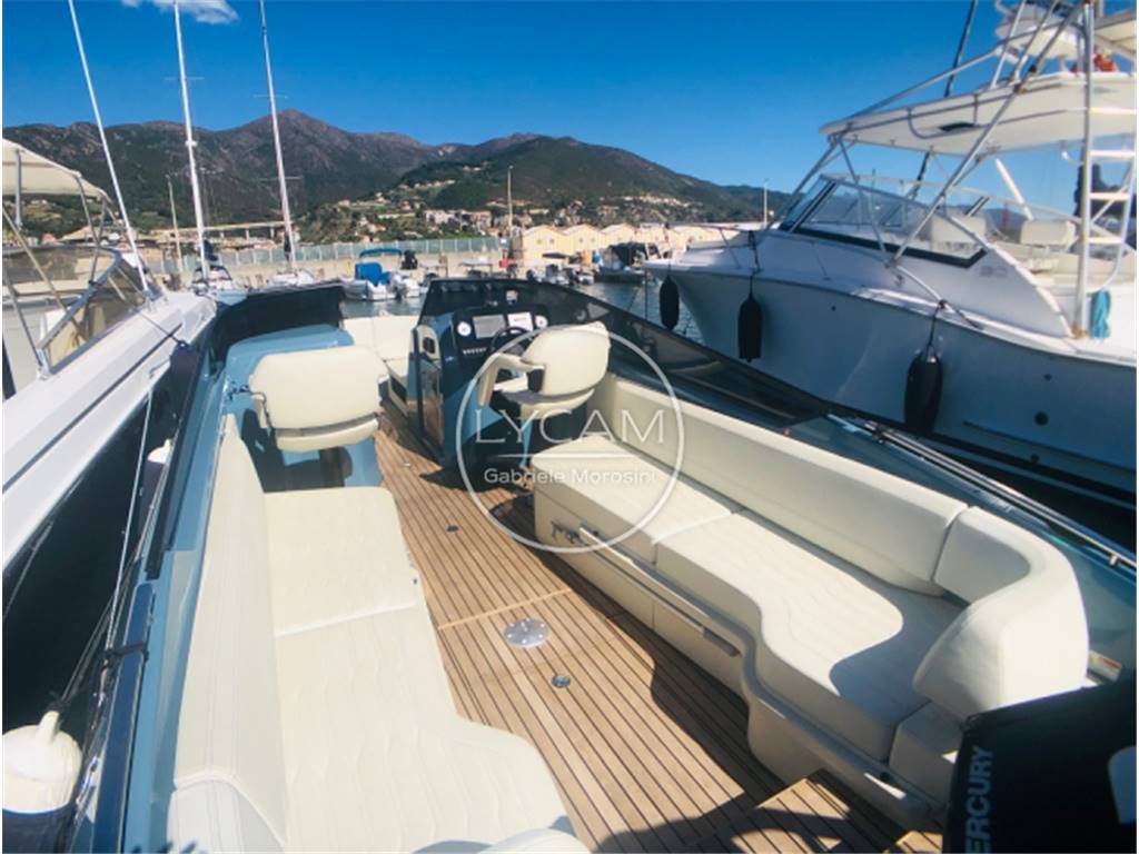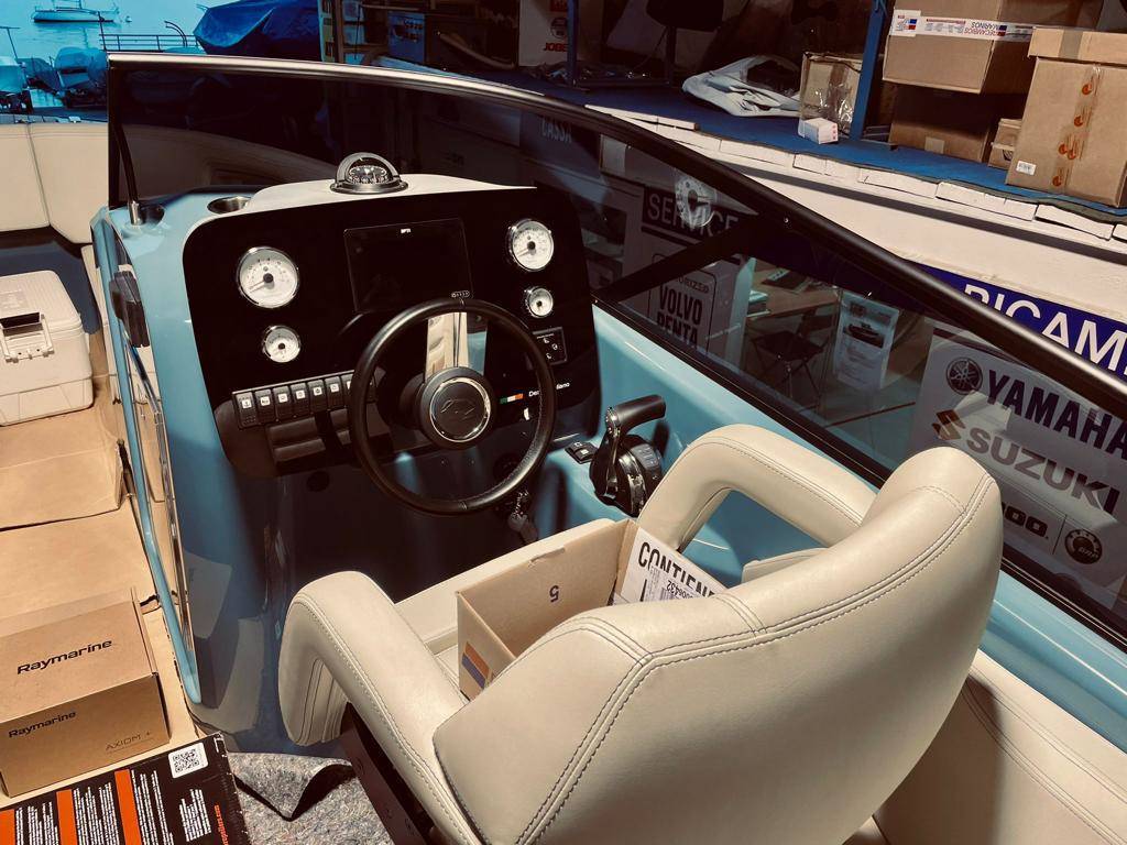 Notas internasL’ampio pozzetto è caratterizzato da dinette nella zona poppiera convertibile in comodo prendisole. Proseguendo verso prua vi è la consolle di comando sulla murata di dritta mentre sul lato opposto si trova la seduta del copilota. Sempre lungo la murata di sinistra è ricavato sotto il parabrezza il locale toilette. La zona prodiera è caratterizzata da ulteriore dinette a U convertibile con vista panoramica.